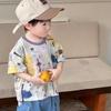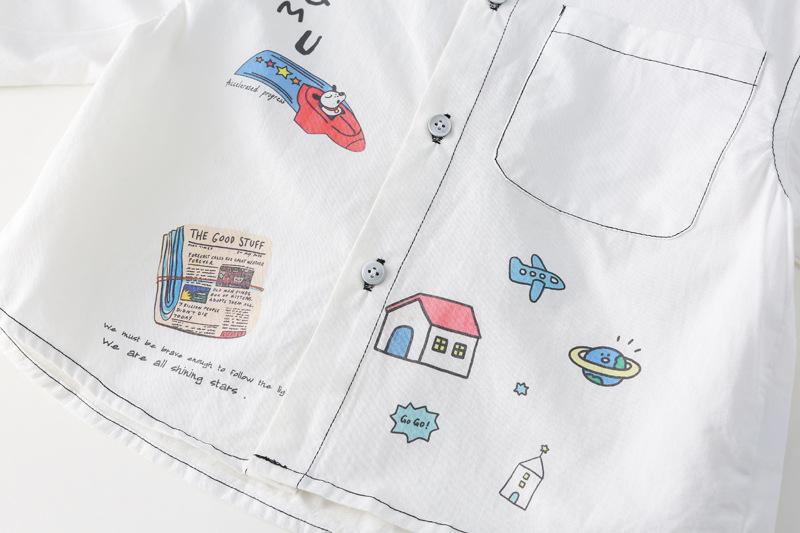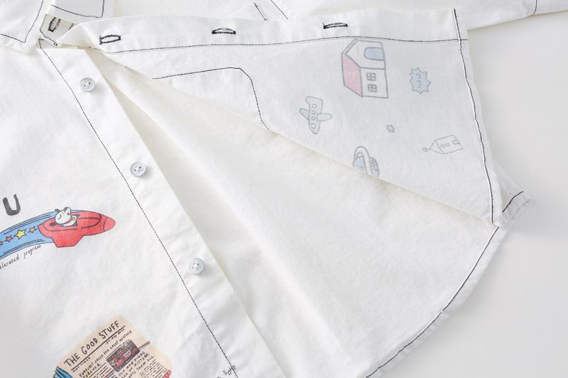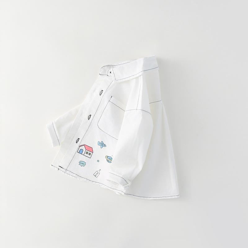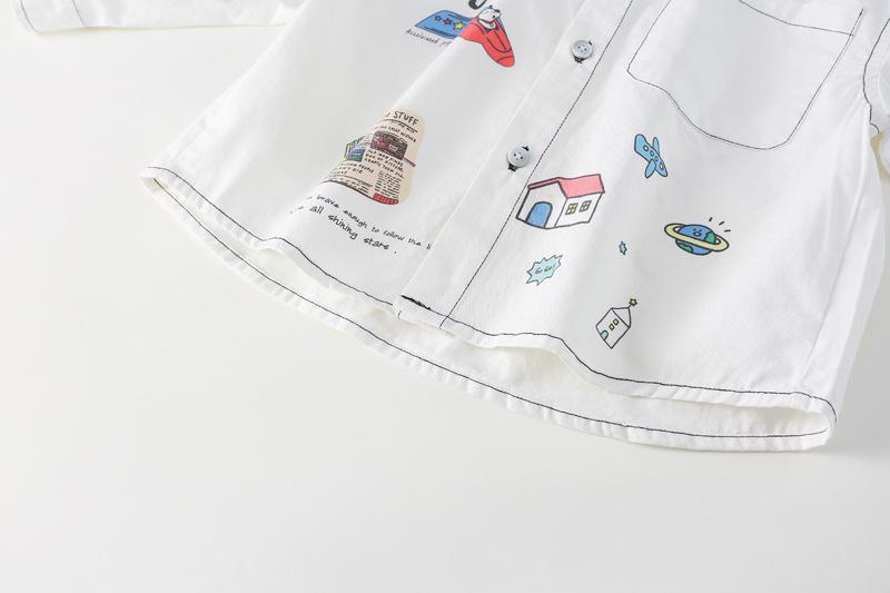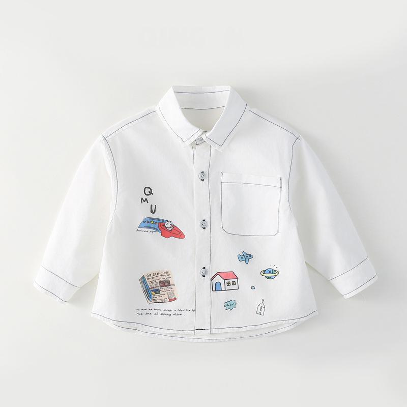 Camisa infantil 2025 Primavera y otoño Ropa infantil para niños y niñas Camisa con estampado de grafiti estilo coreano Top de bebé Algodón puro Clase A