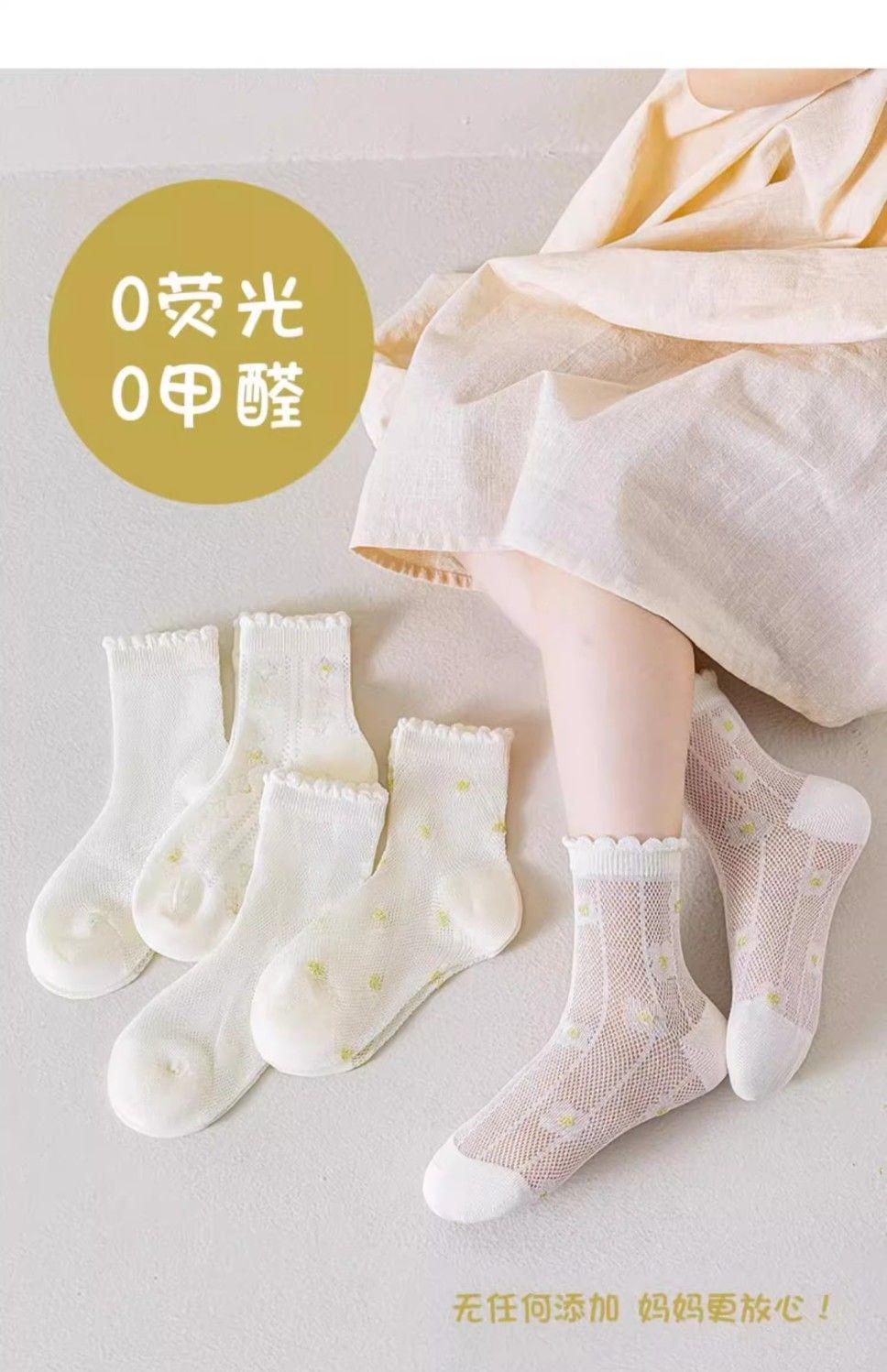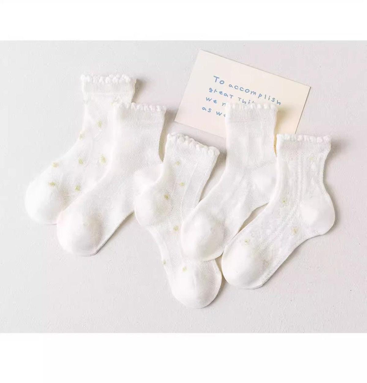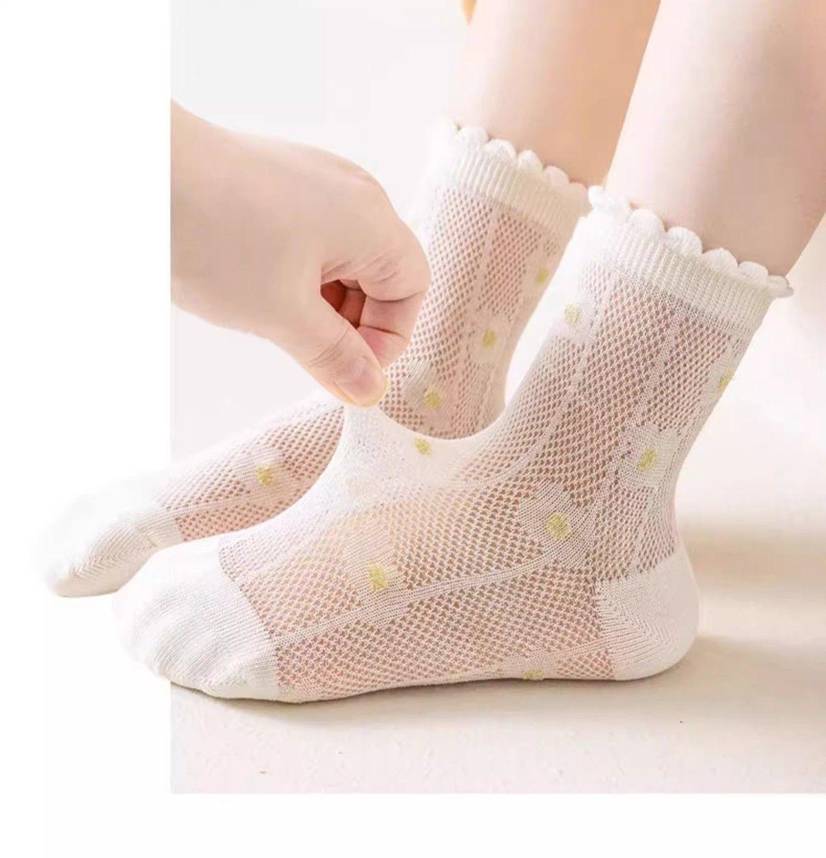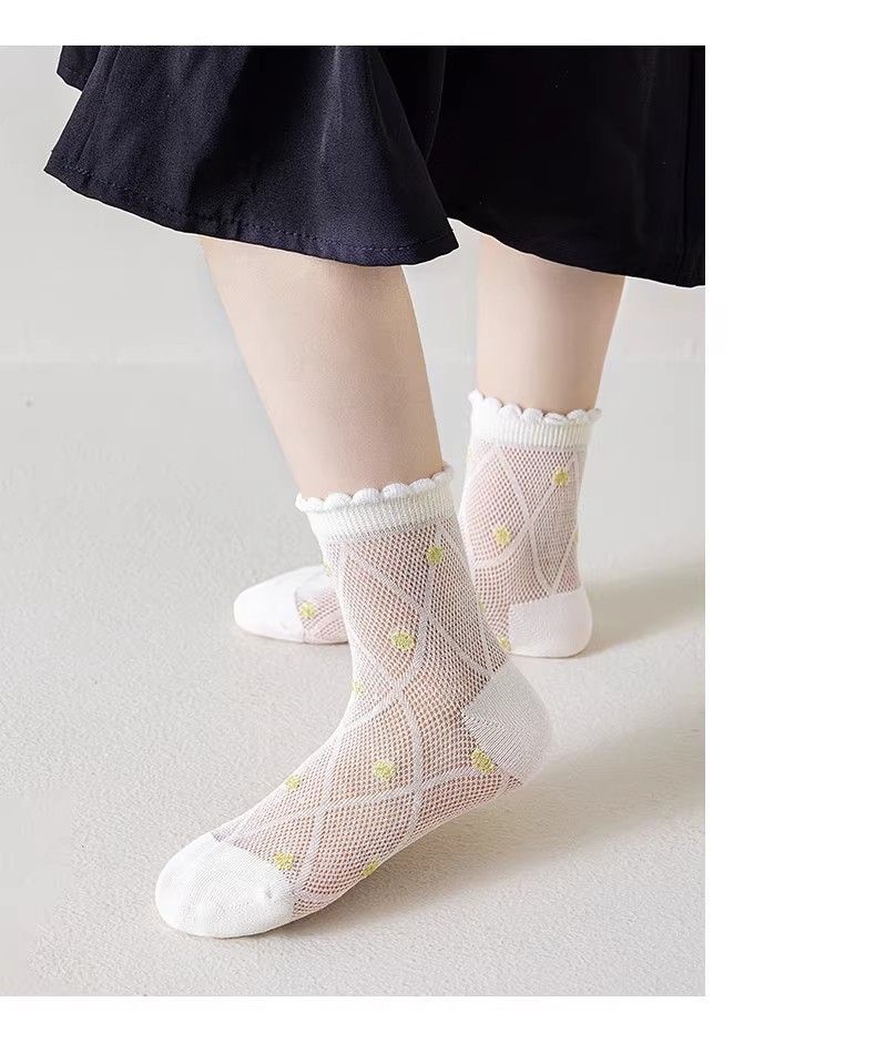 Calcetines para Niños de Color Sólido Lolita Verano Encaje Princesa Niñas Transpirables Malla Fina Calcetines para Niñas Tubo Medio
