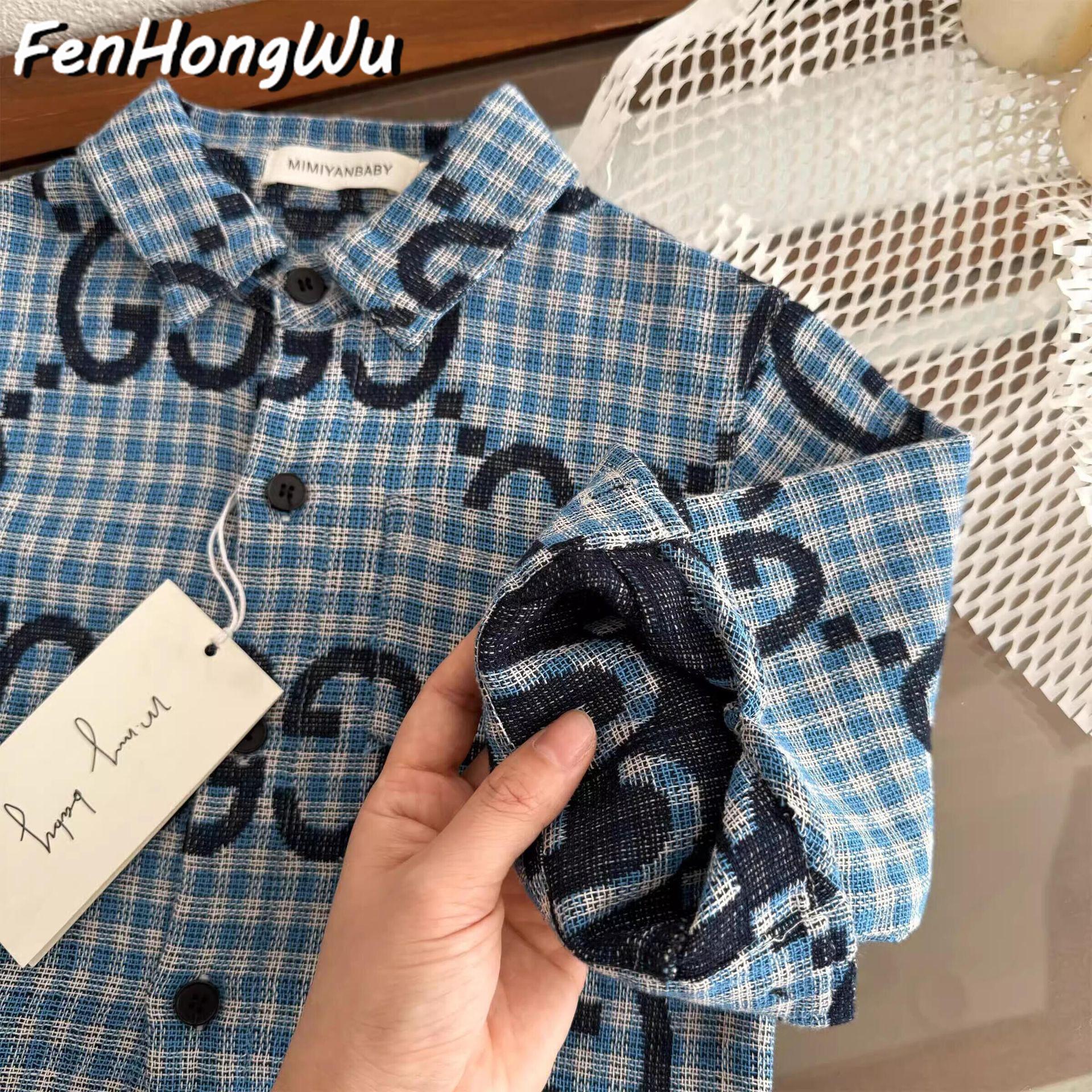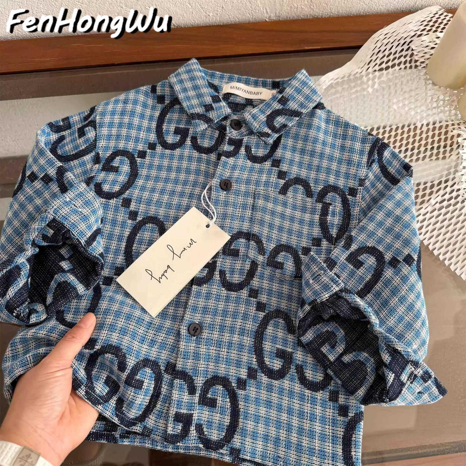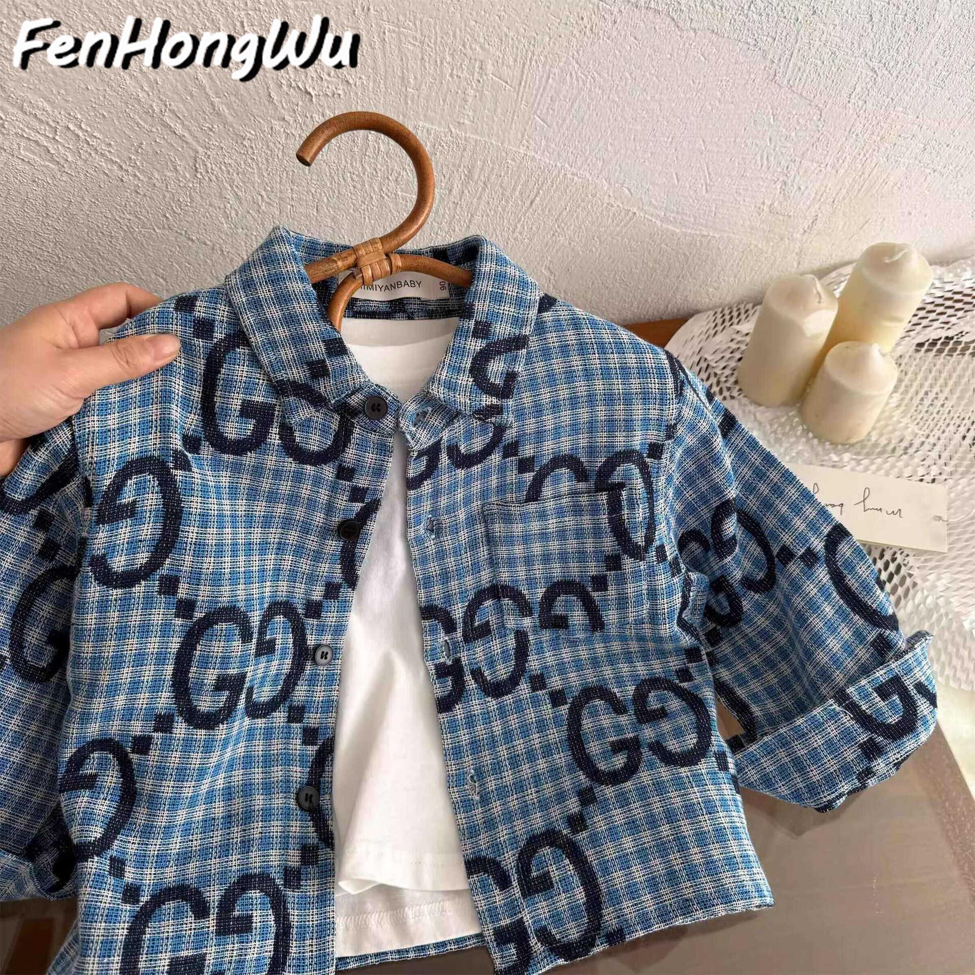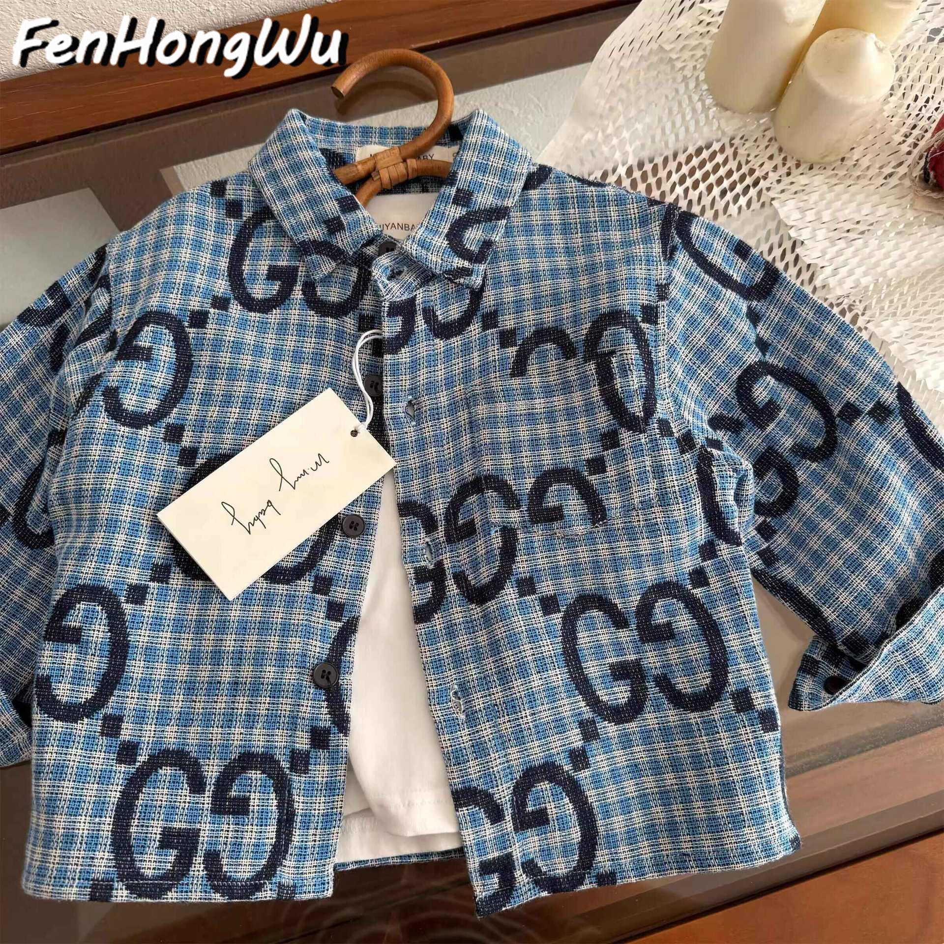[Casa Rosa] Camisa de manga larga para niños, camisa de primavera para hombre, de marca de moda con estampado de flores antiguas, abrigo a cuadros con estampado completo, top para niños