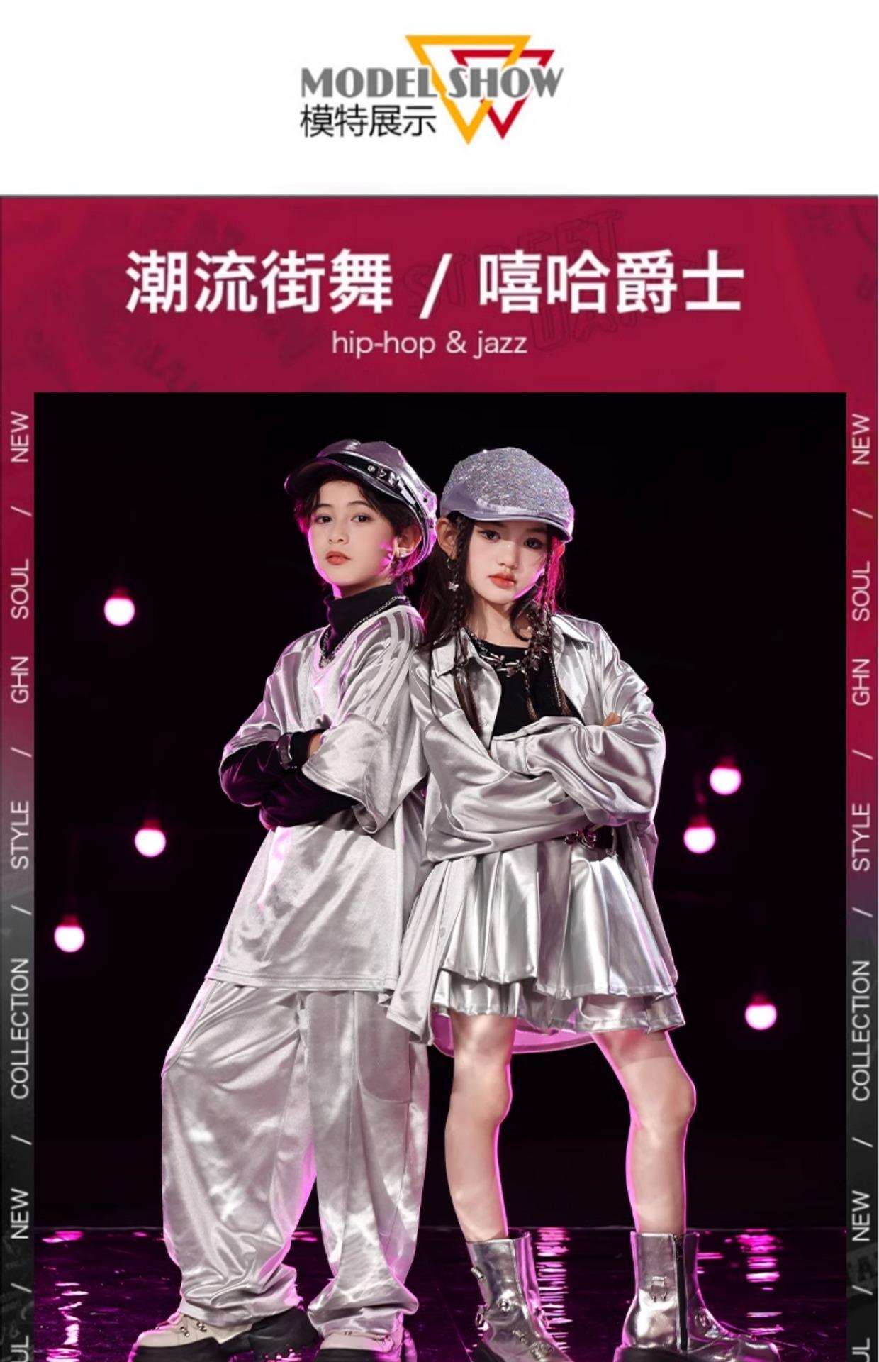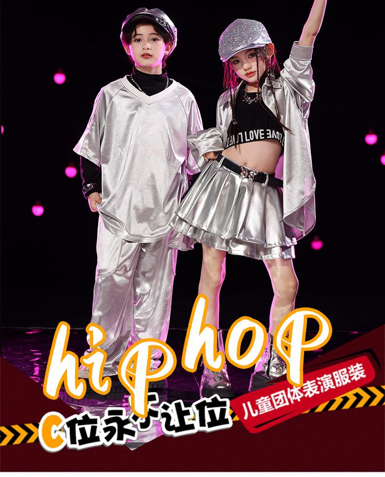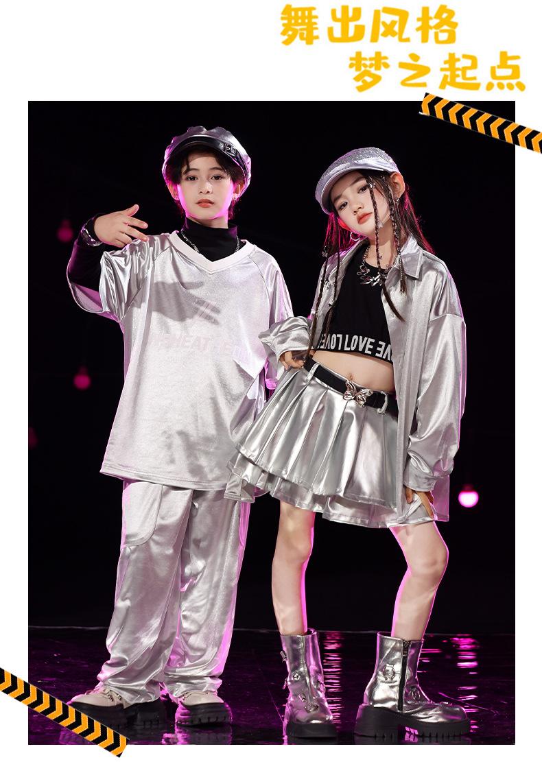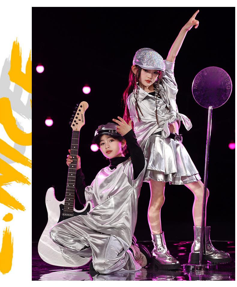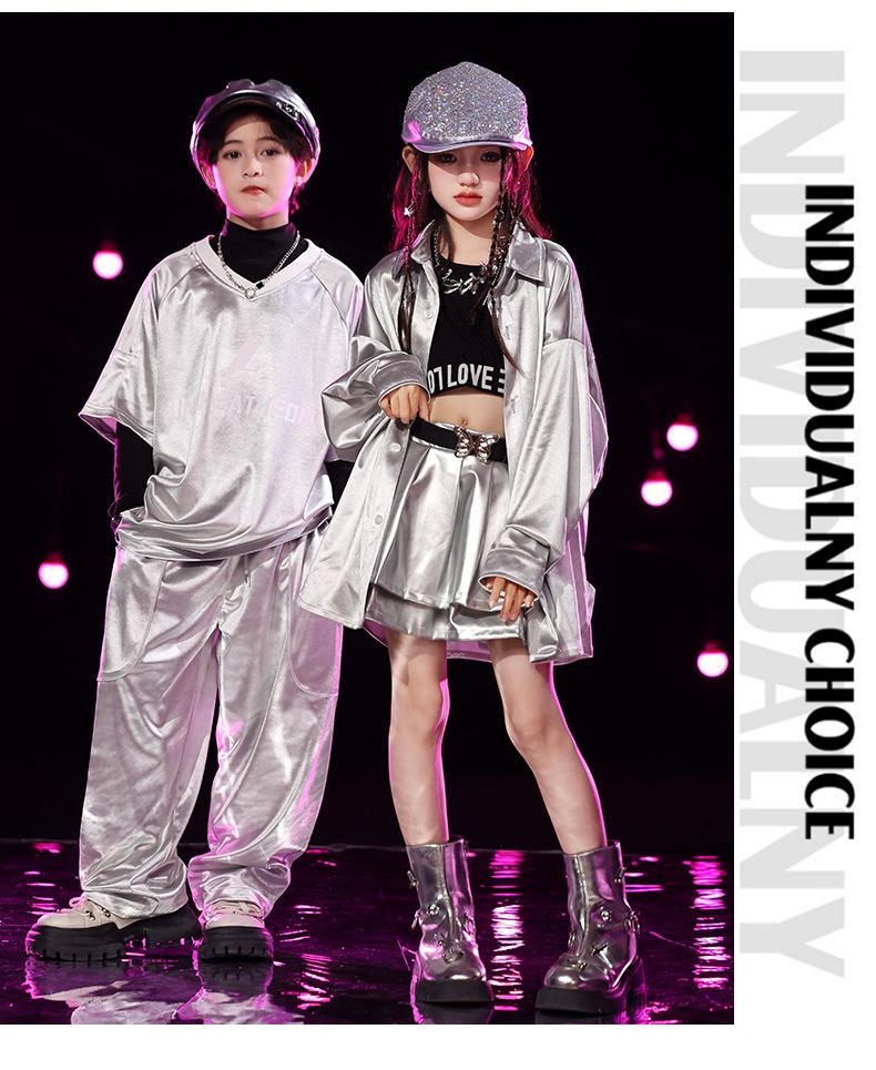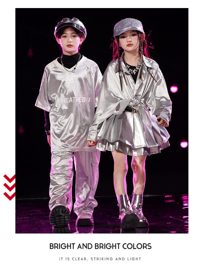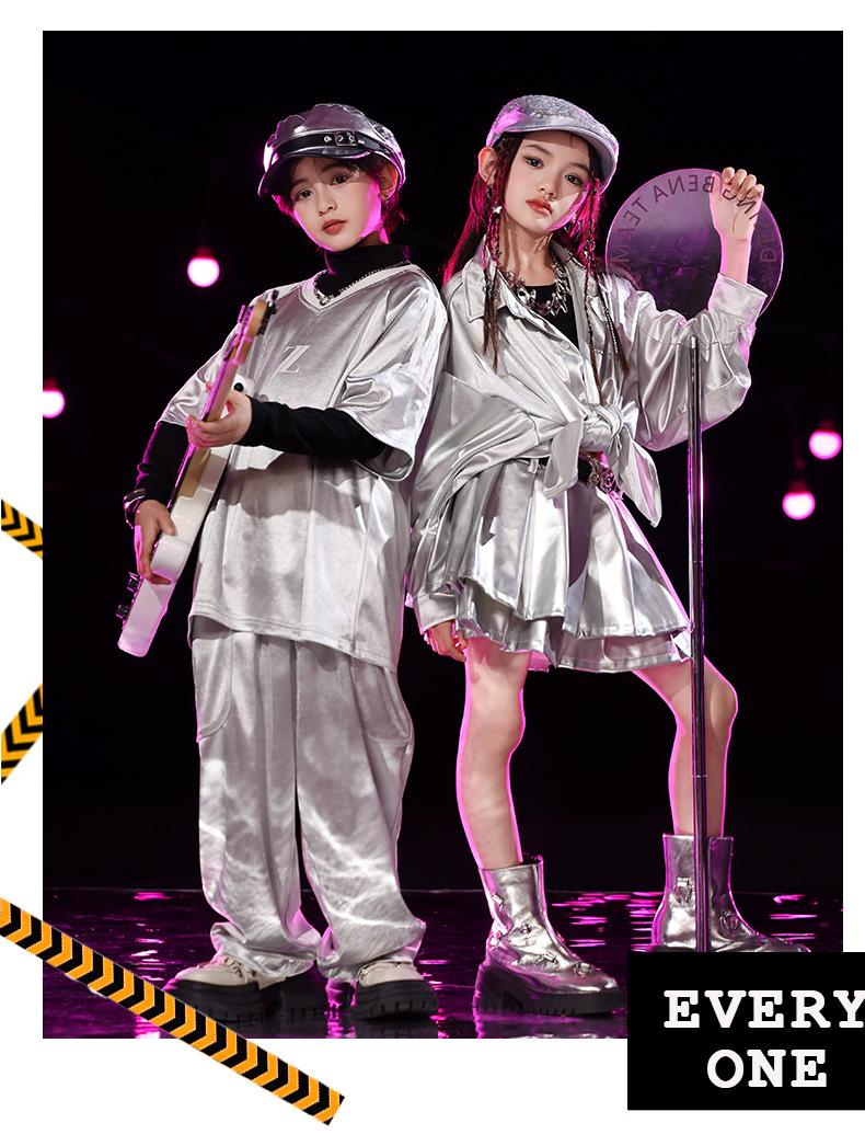 Traje de Actuación Infantil de Año Nuevo con Lentejuelas plateadas Traje de Marca Moderna Escenario Danza Callejera Ropa Infantil Moderna Ropa de Danza Jazz Infantil