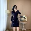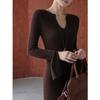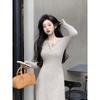 2023 otoño e invierno nuevo cuello redondo cintura sobre la rodilla francés retro largo vestido de punto básico interior 5862