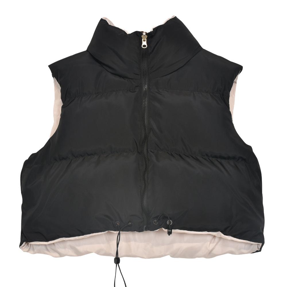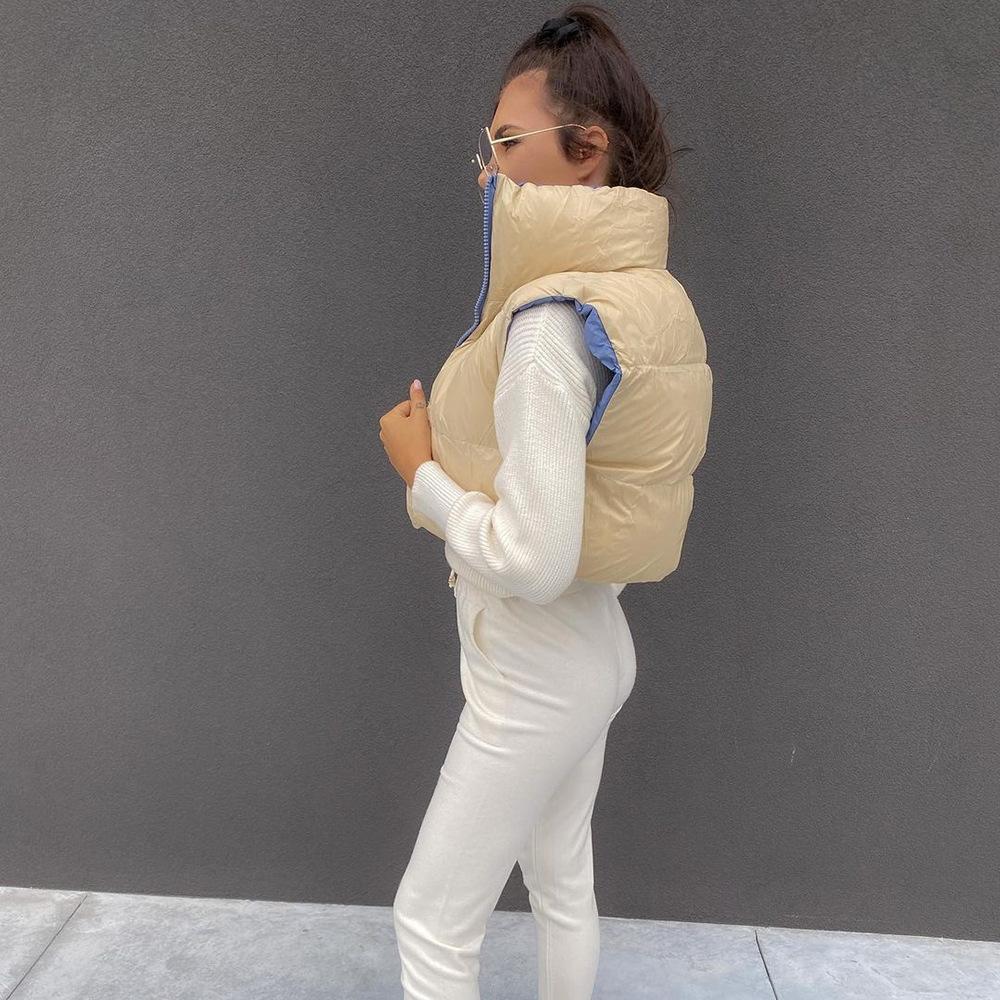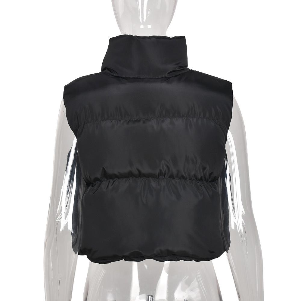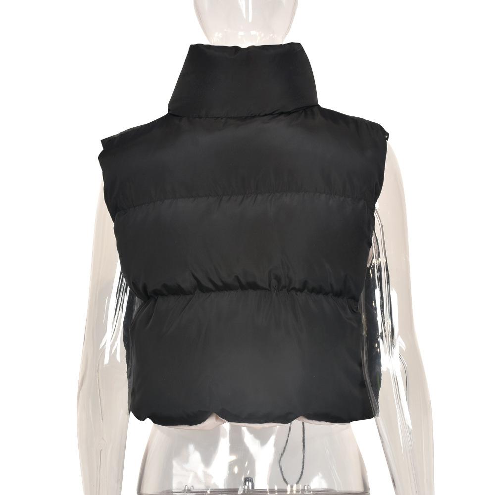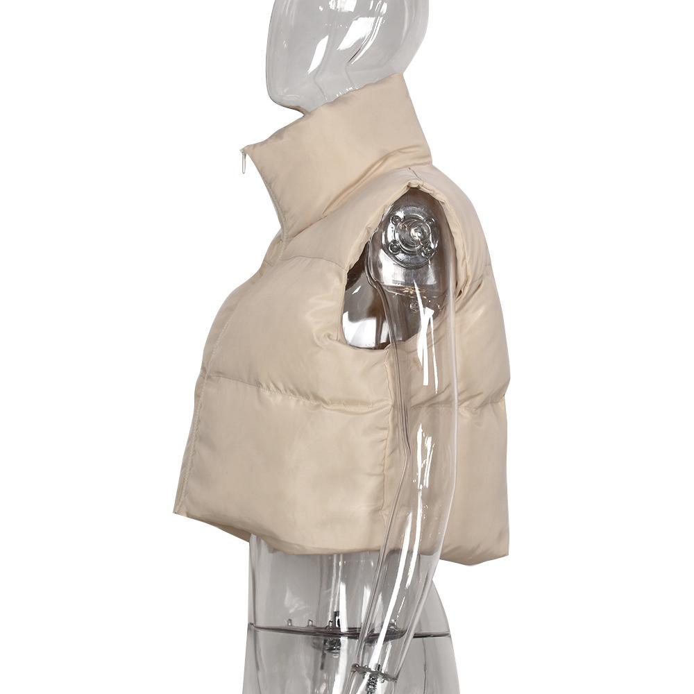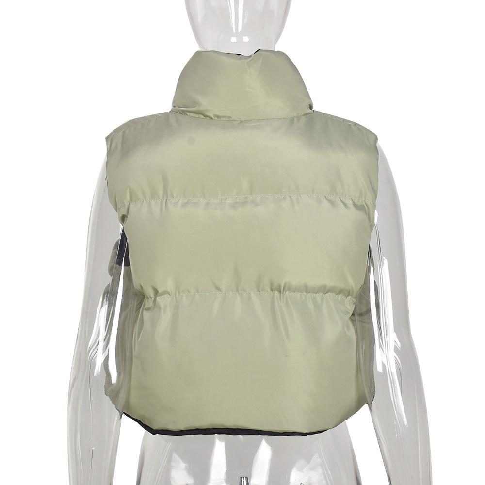 8099 Nazada Export Estilo Europeo y Americano Transfronterizo Chaleco de Mujer Algodón de Doble Cara Ropa Exterior Cuello Alto Cremallera Sin Mangas Corto Ropa Exterior para Mujer