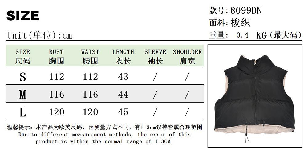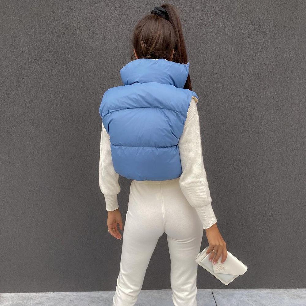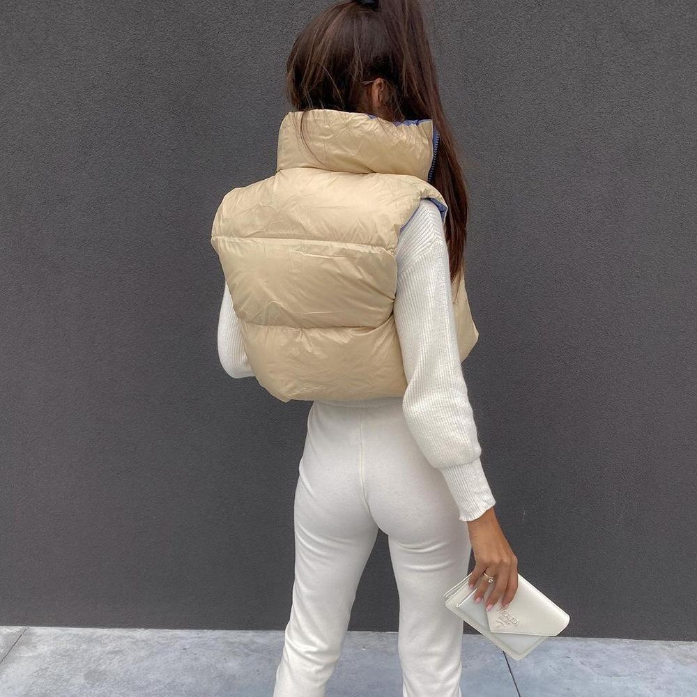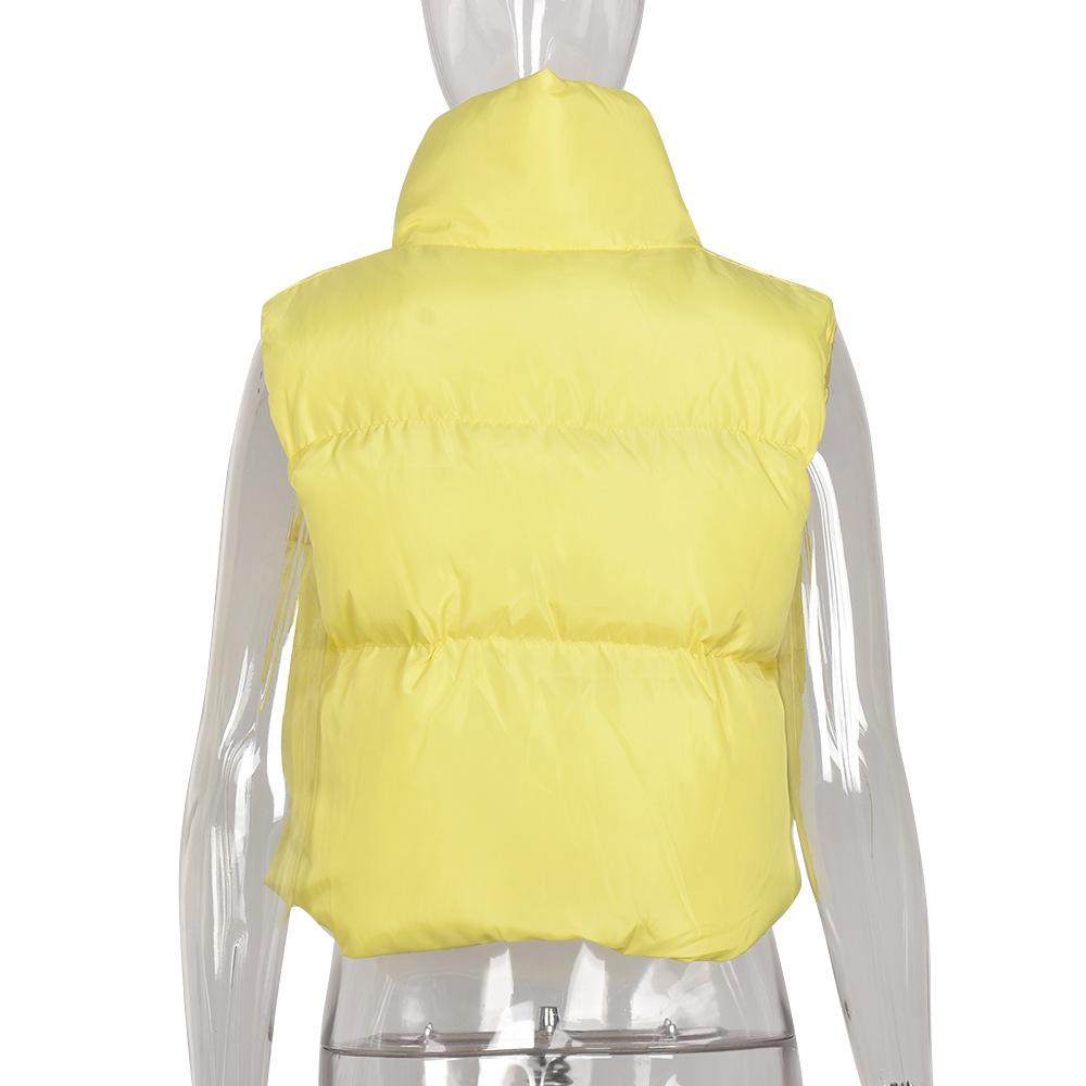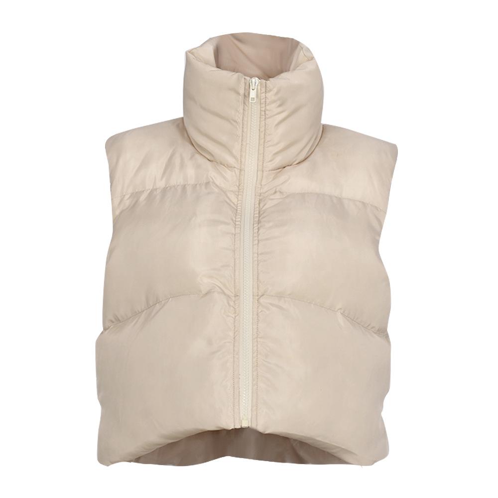 8099 Nazada Export Estilo Europeo y Americano Transfronterizo Chaleco de Mujer Algodón de Doble Cara Ropa Exterior Cuello Alto Cremallera Sin Mangas Corto Ropa Exterior para Mujer