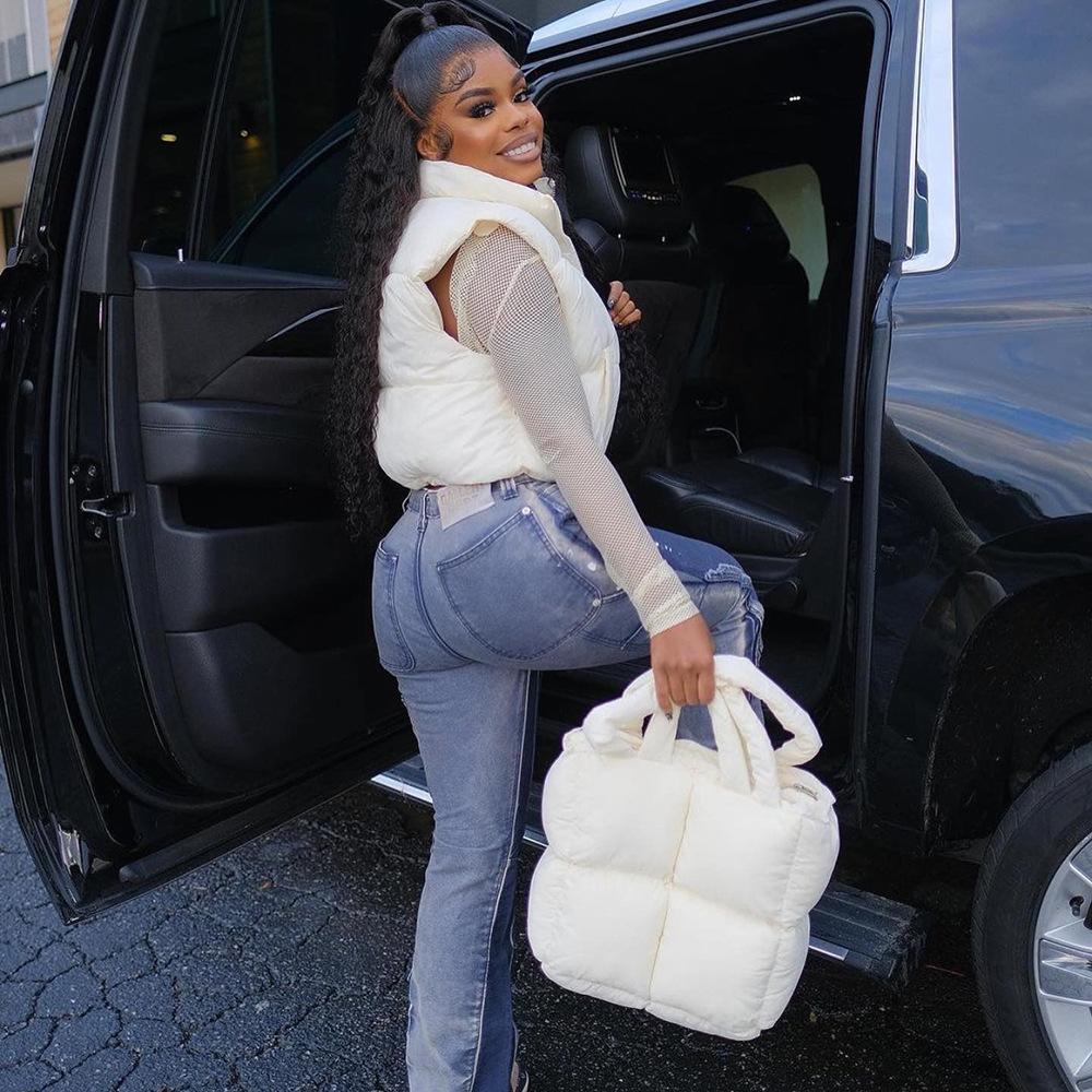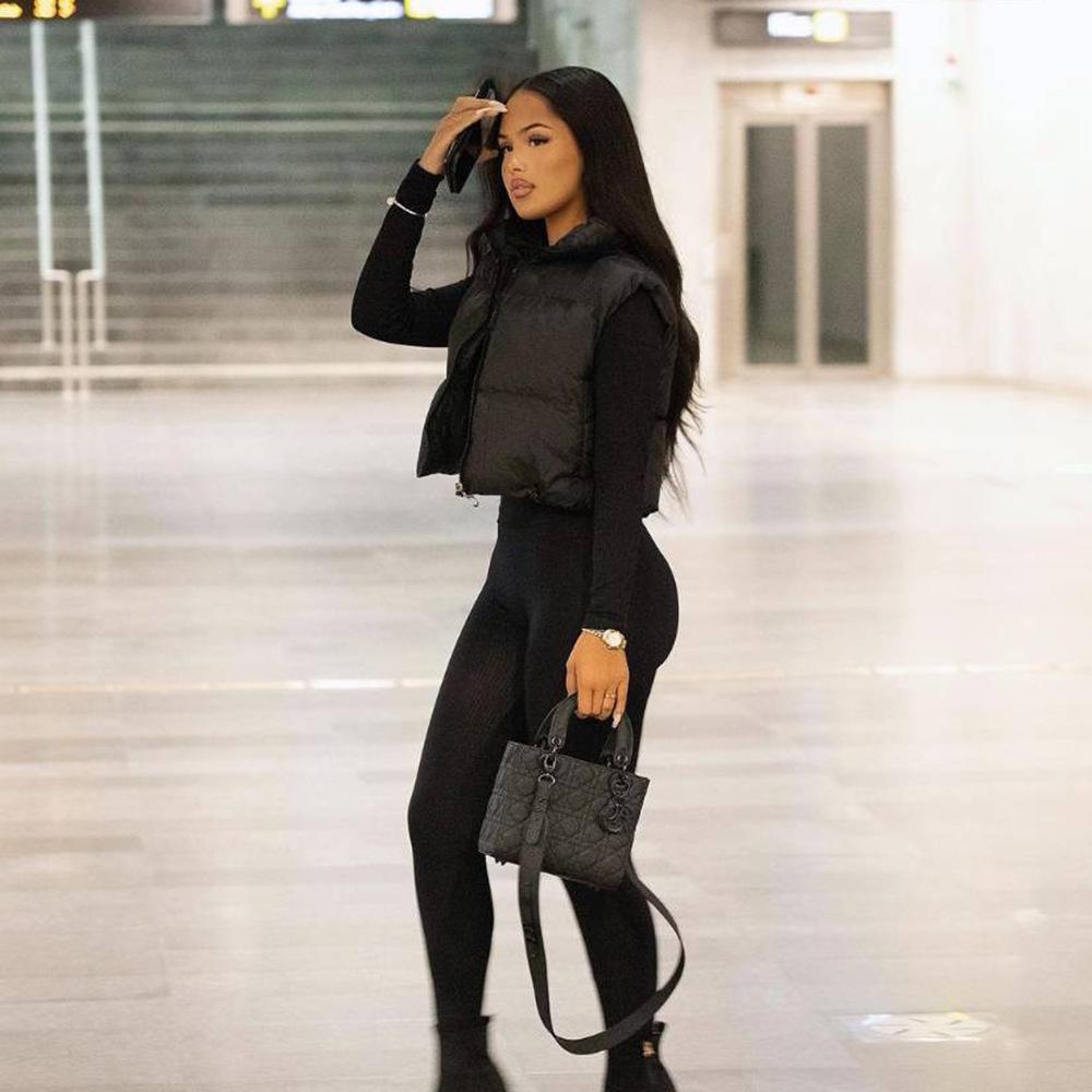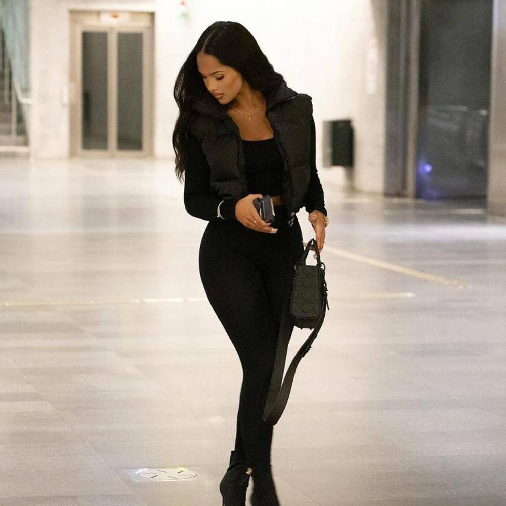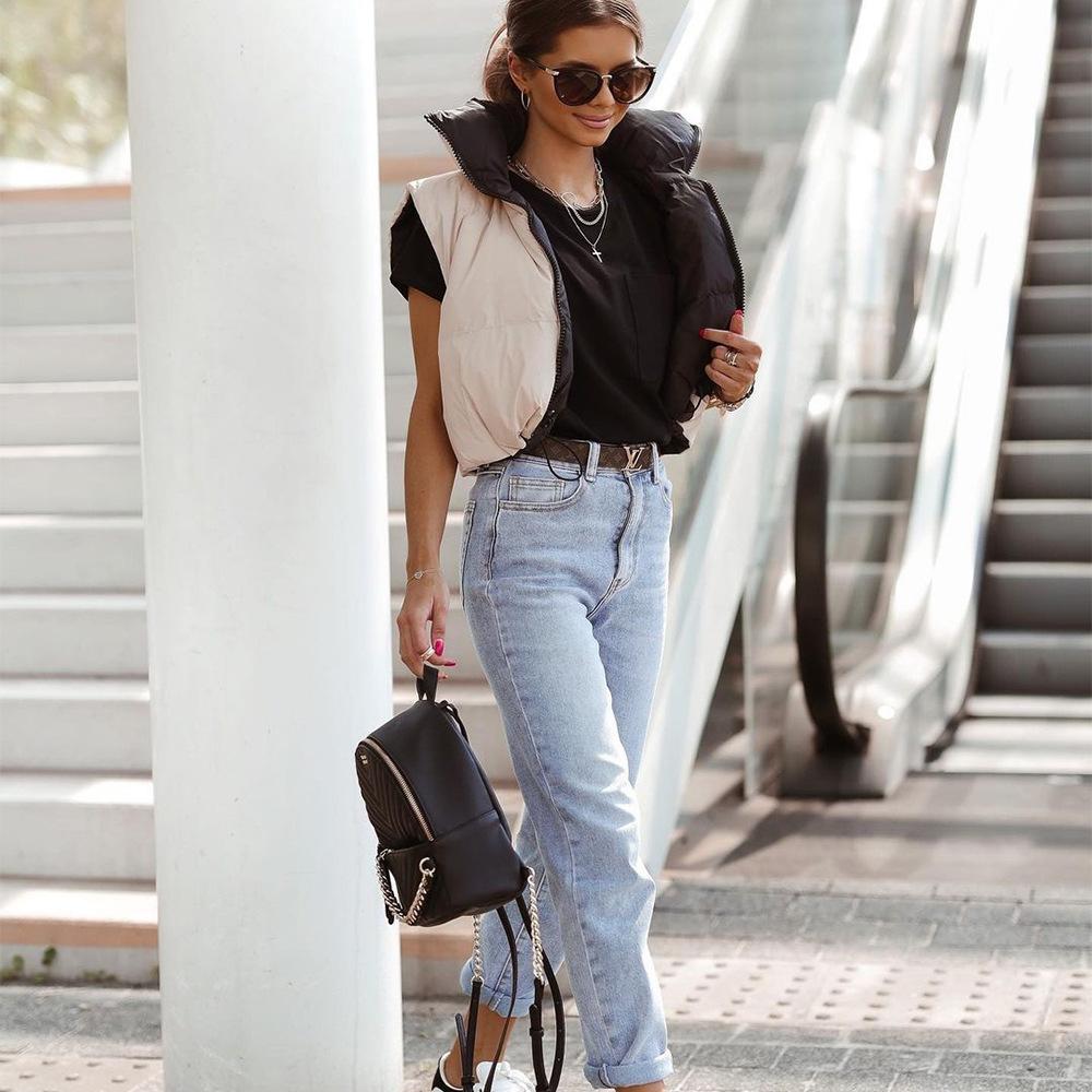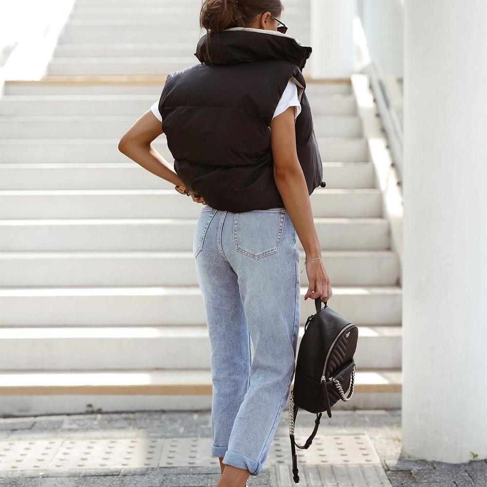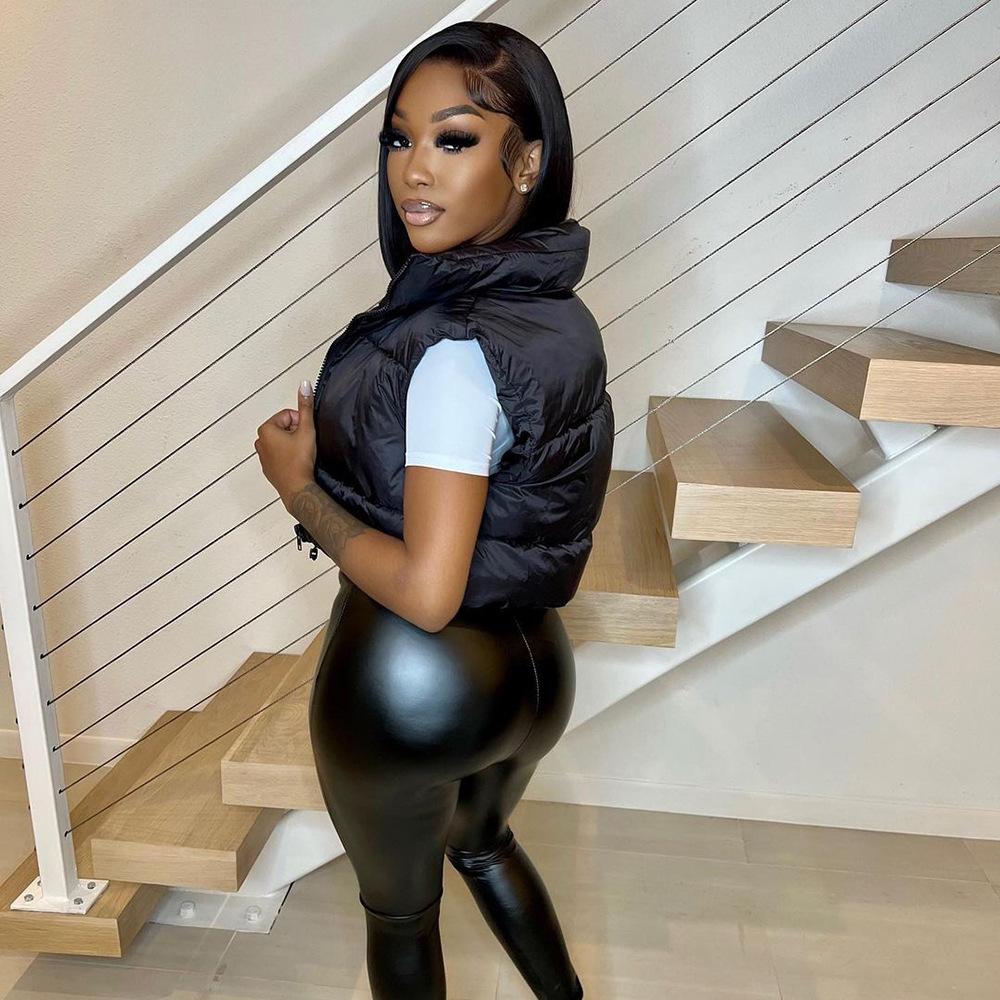 8099 Nazada Export Estilo Europeo y Americano Transfronterizo Chaleco de Mujer Algodón de Doble Cara Ropa Exterior Cuello Alto Cremallera Sin Mangas Corto Ropa Exterior para Mujer
