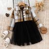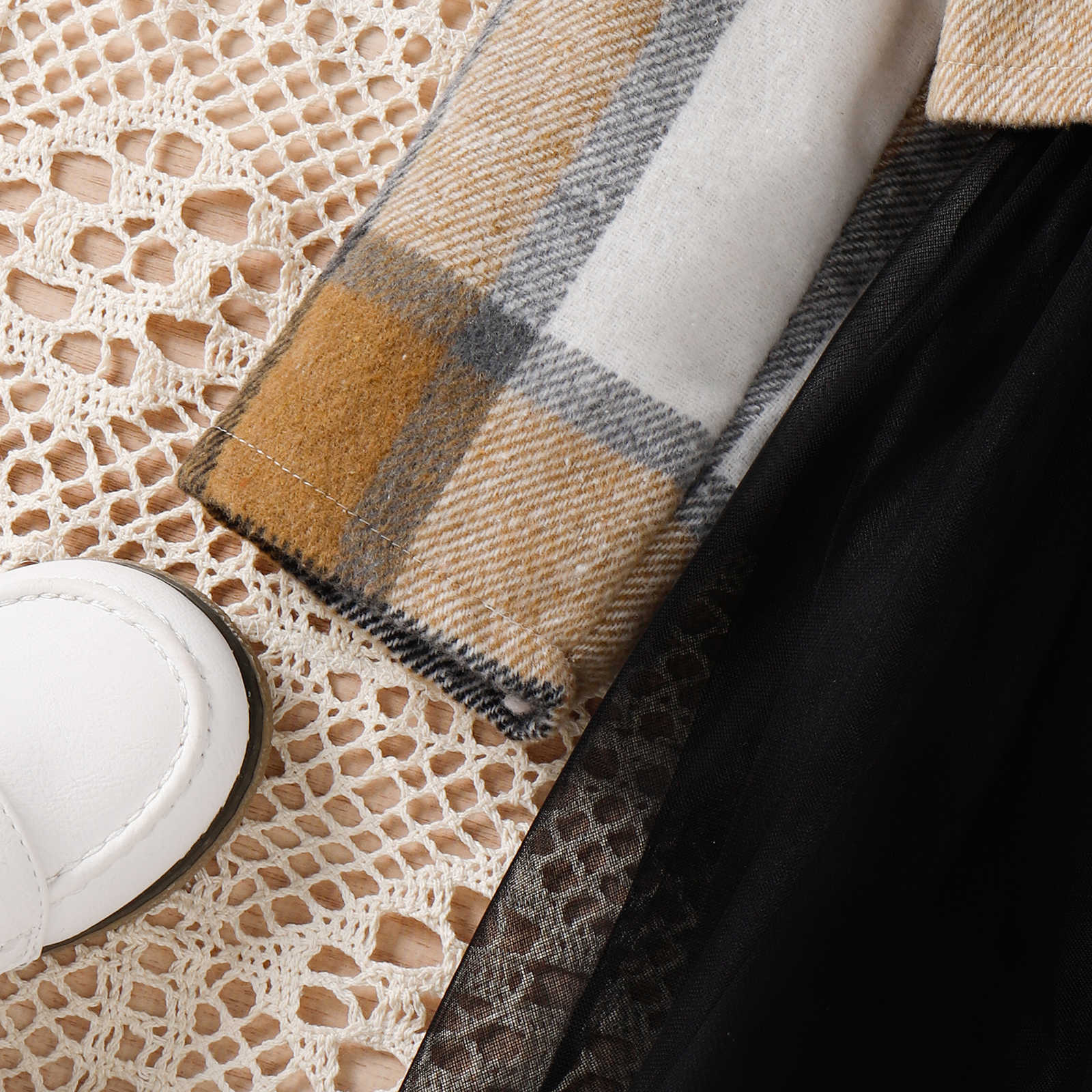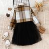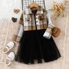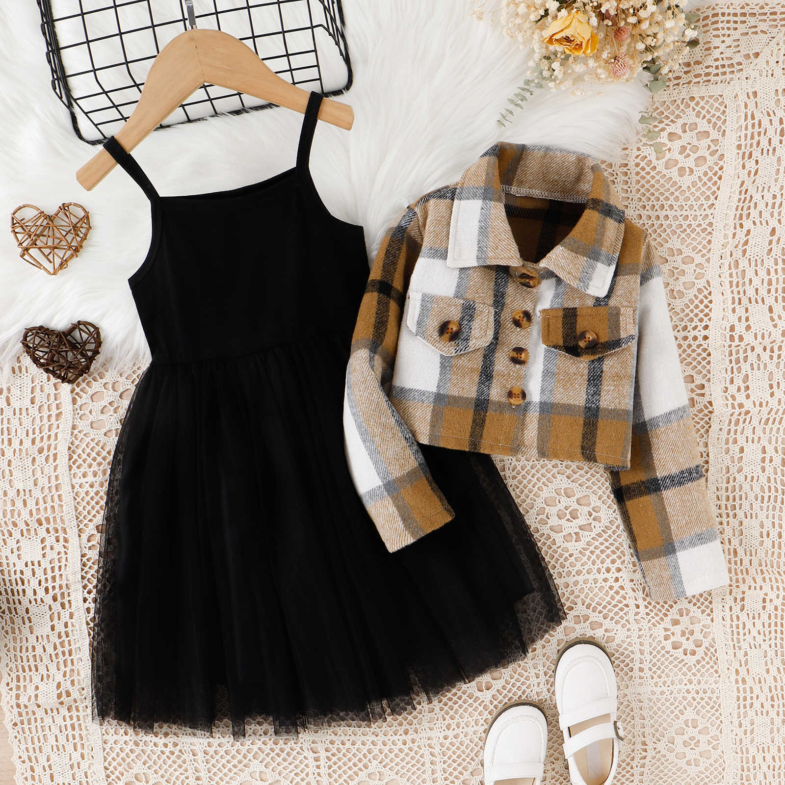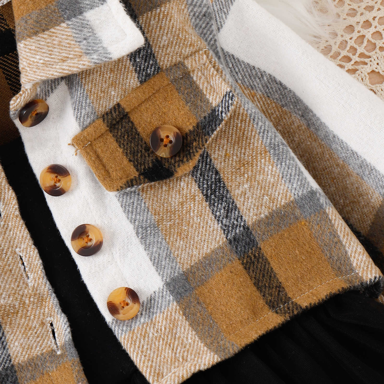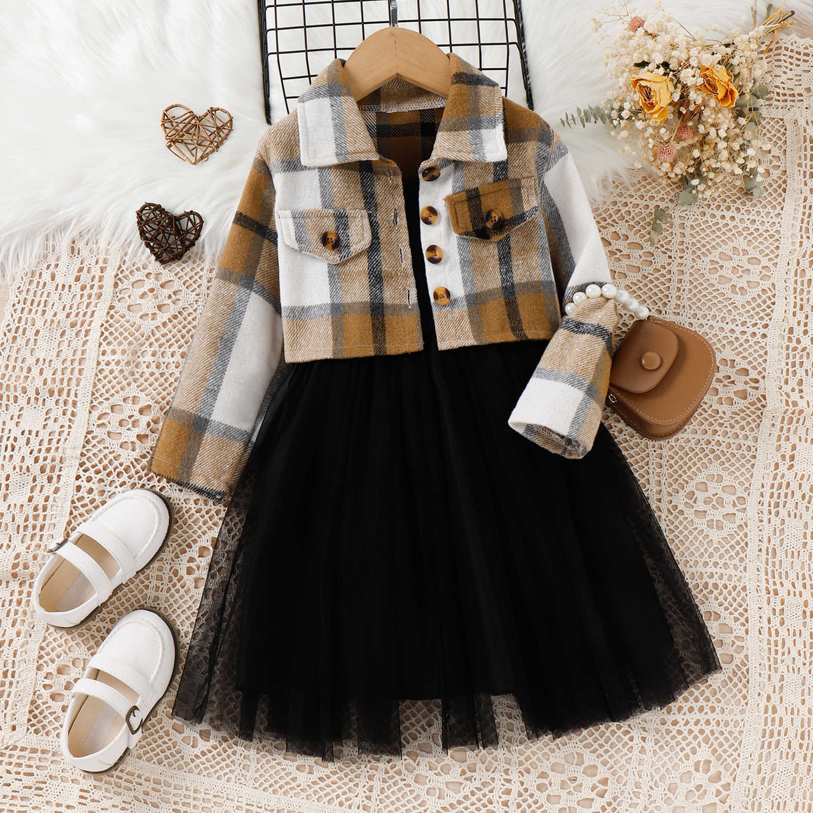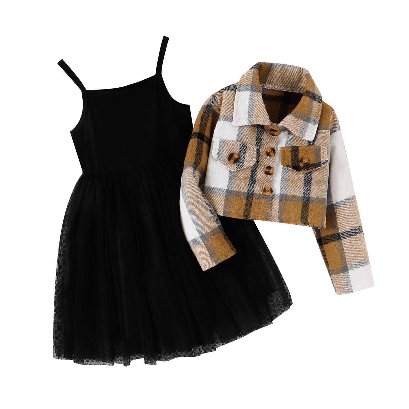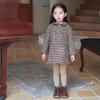 Traje nuevo de otoño e invierno para niños de comercio exterior transfronterizo, abrigo de lana a cuadros con vestido camisola al por mayor