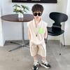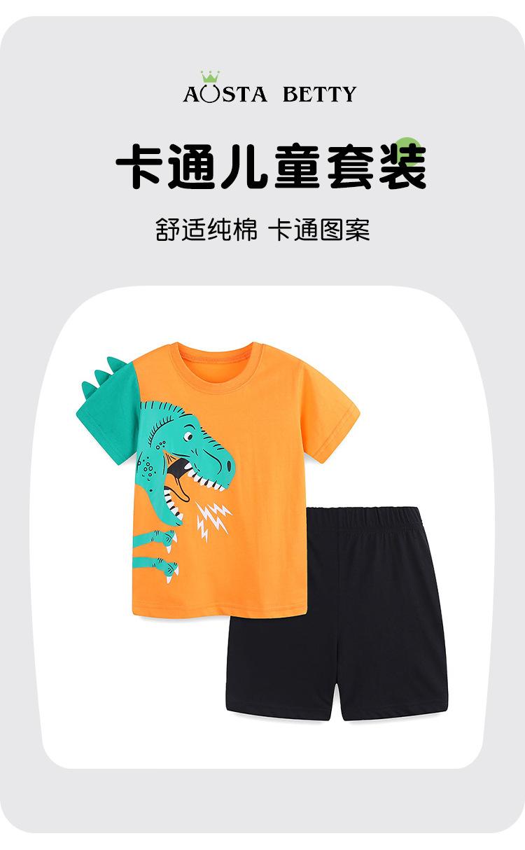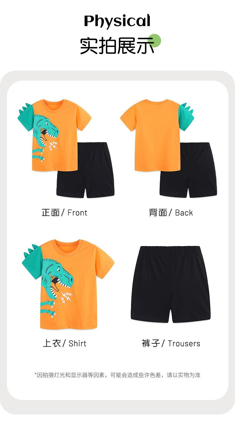 Traje de verano nuevo para niños, estilo europeo y americano, pantalones cortos para niños, traje con estampado de dinosaurios de dibujos animados, conjunto de 2