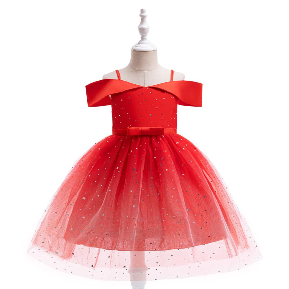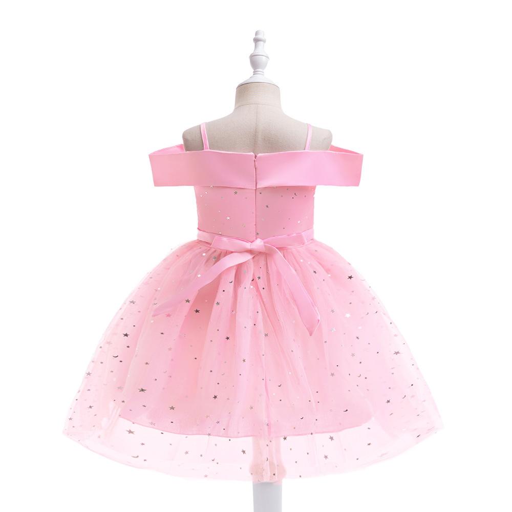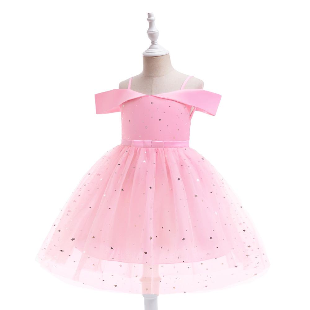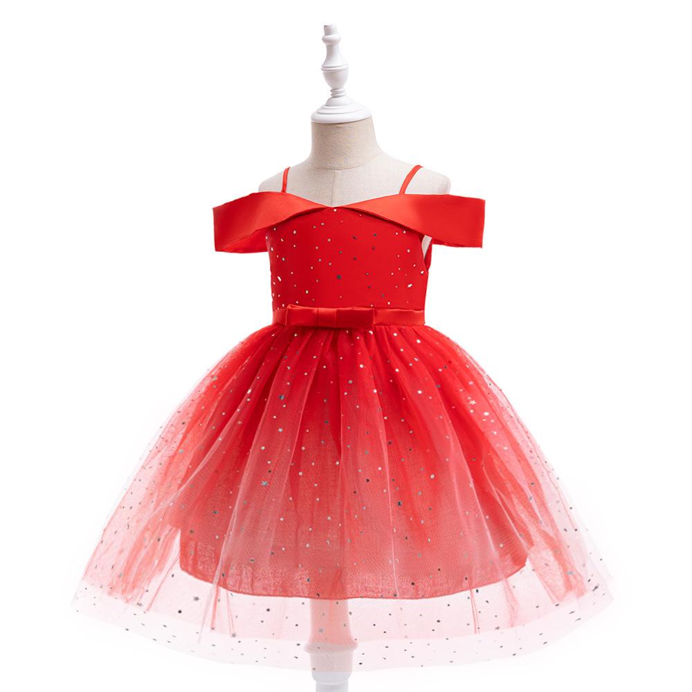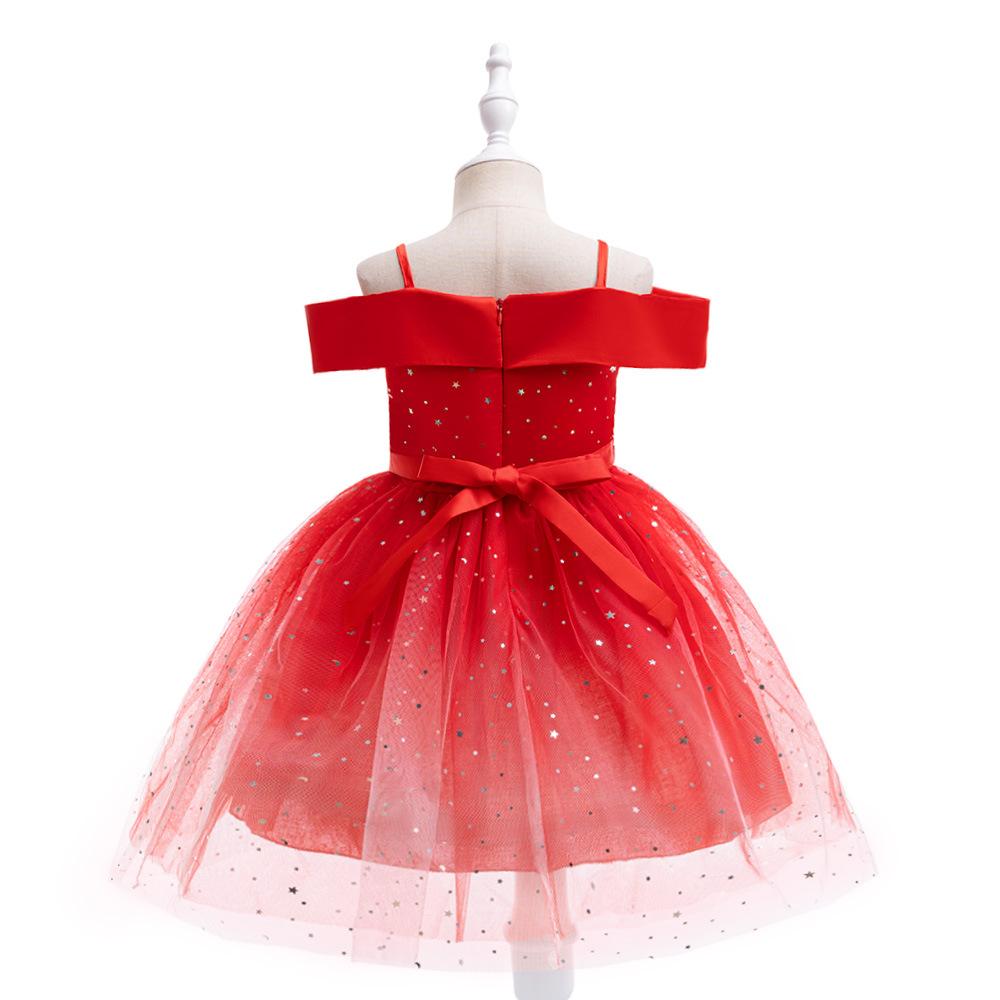 Nuevo Vestido Infantil Transfronterizo con Hombros Descubiertos, Lentejuelas, Esponjoso, de Princesa, Falda de Malla para Niñas, Ropa para Actuación de Anfitrión
