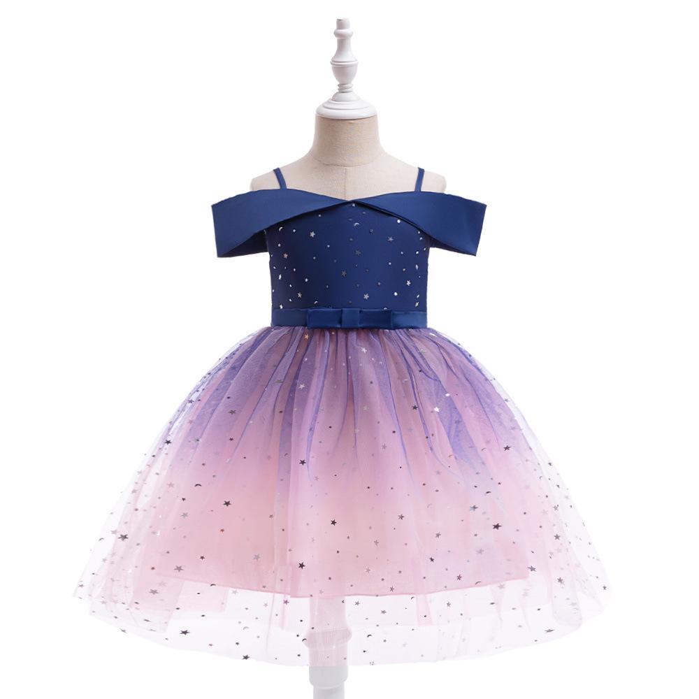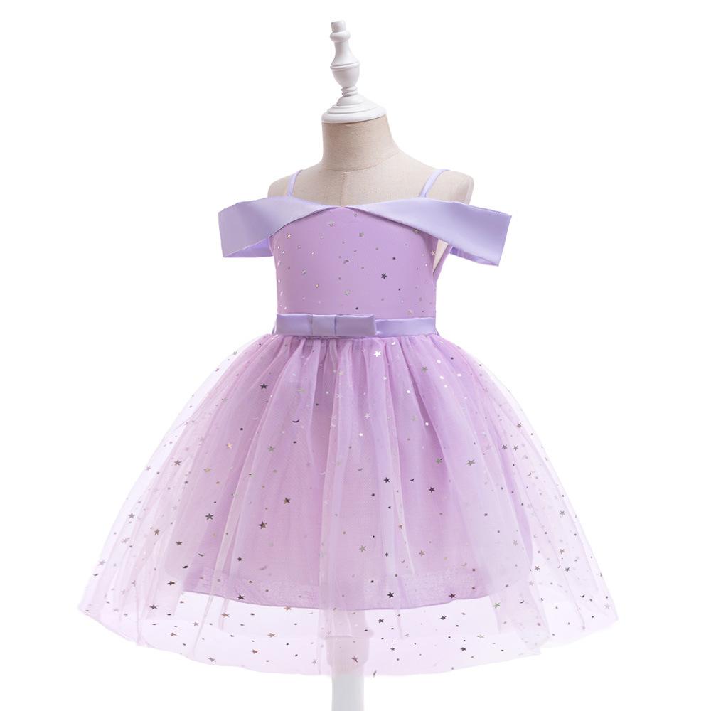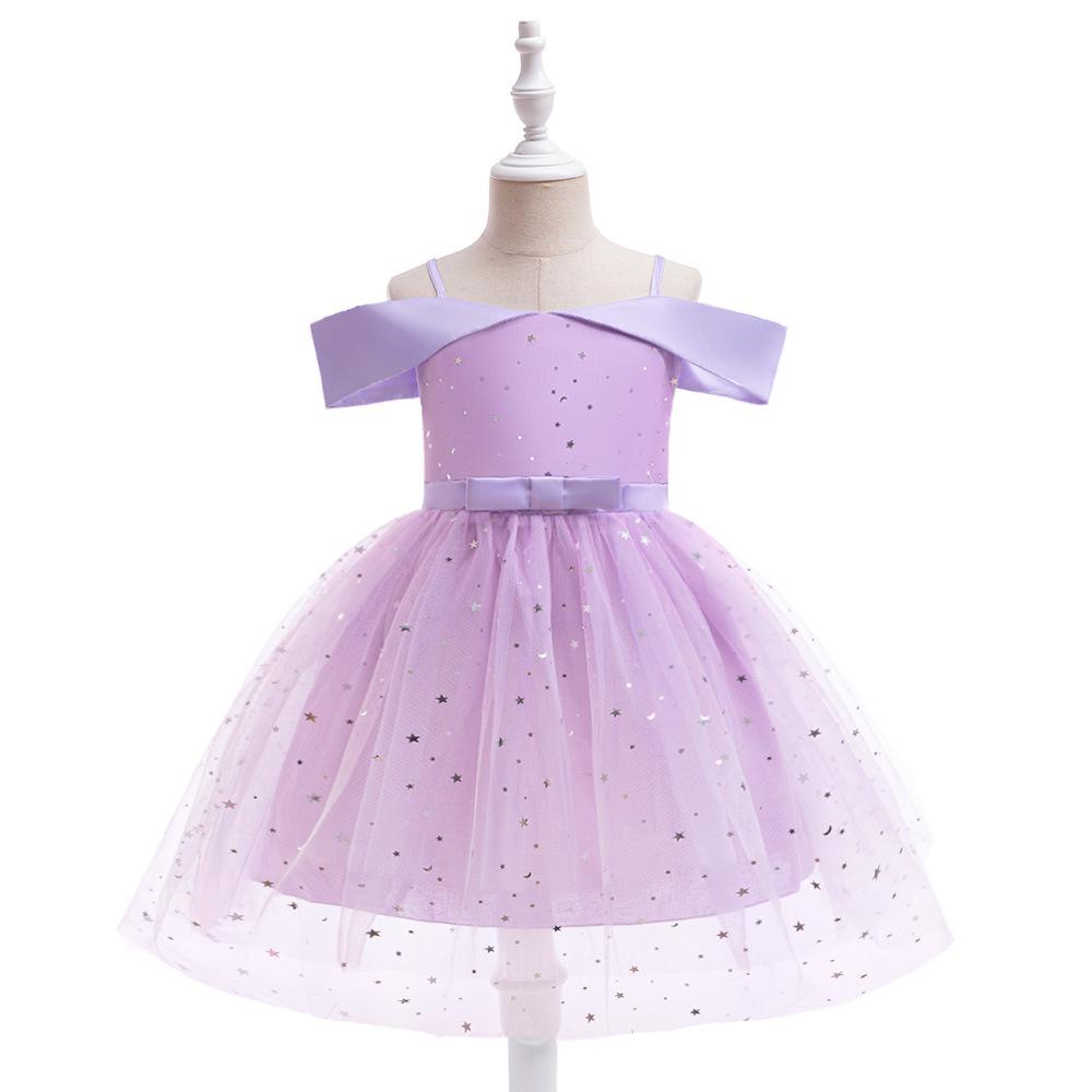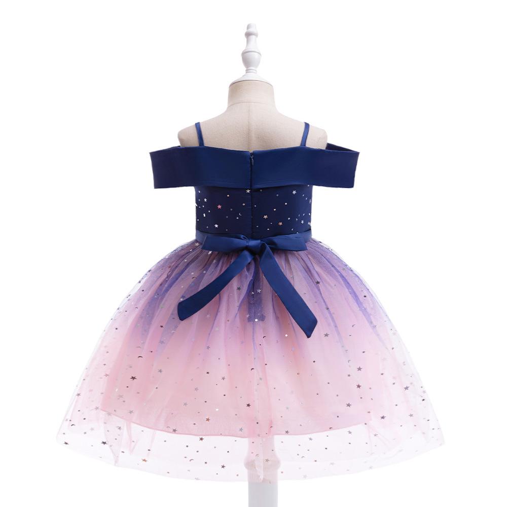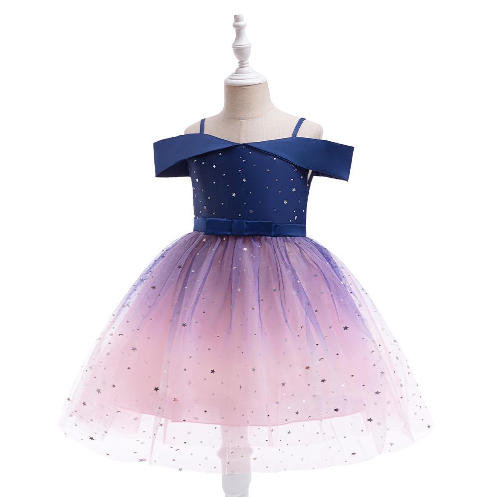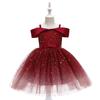 Nuevo Vestido Infantil Transfronterizo con Hombros Descubiertos, Lentejuelas, Esponjoso, de Princesa, Falda de Malla para Niñas, Ropa para Actuación de Anfitrión
