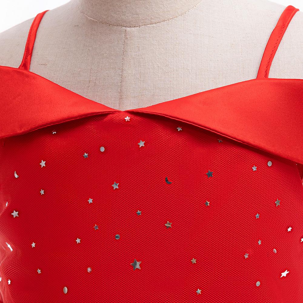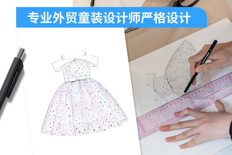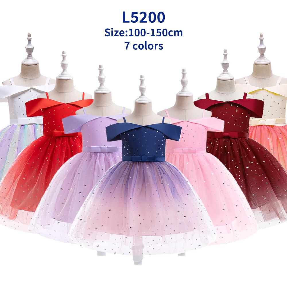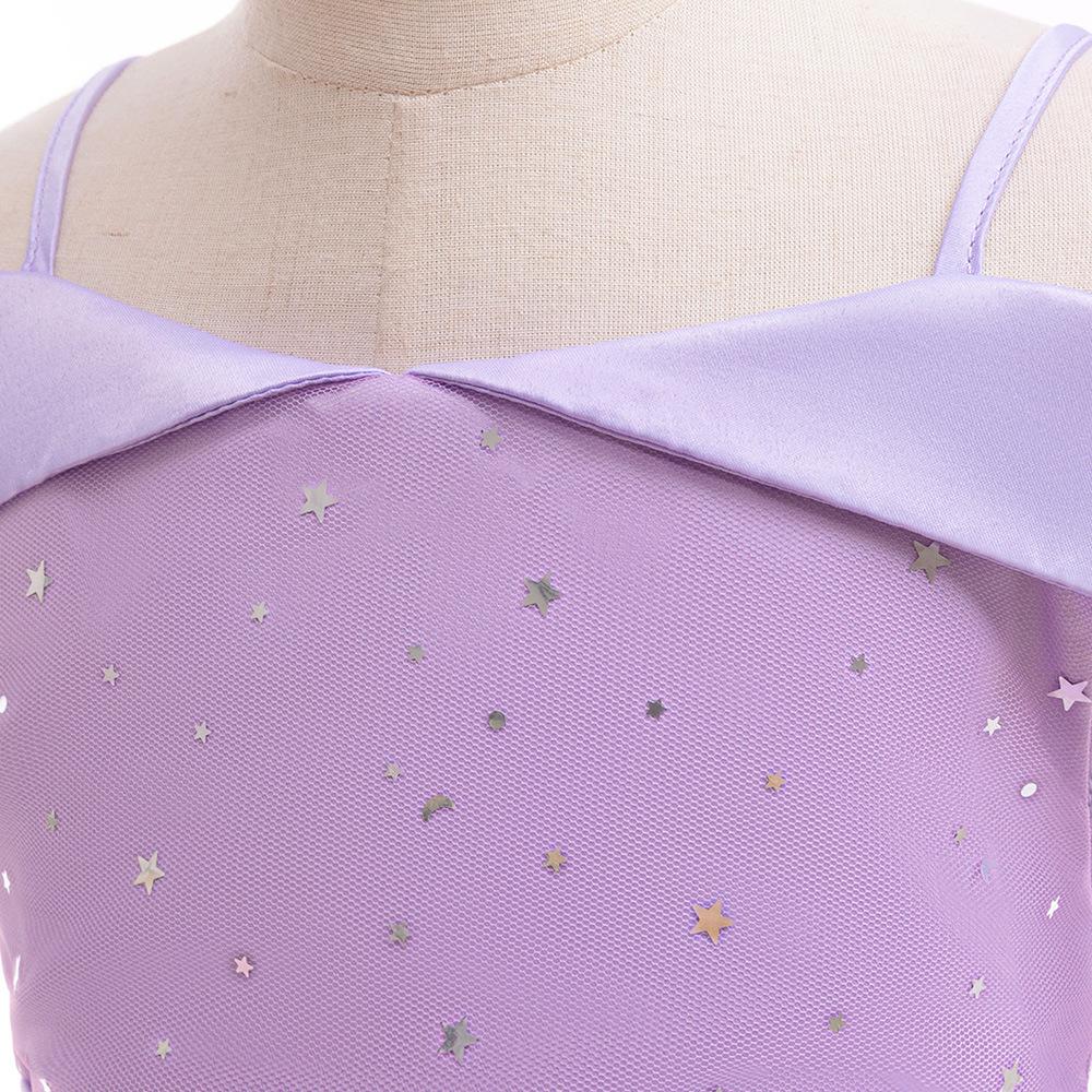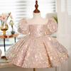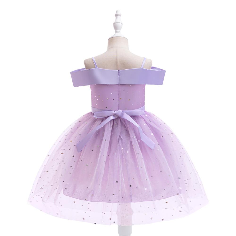 Nuevo Vestido Infantil Transfronterizo con Hombros Descubiertos, Lentejuelas, Esponjoso, de Princesa, Falda de Malla para Niñas, Ropa para Actuación de Anfitrión