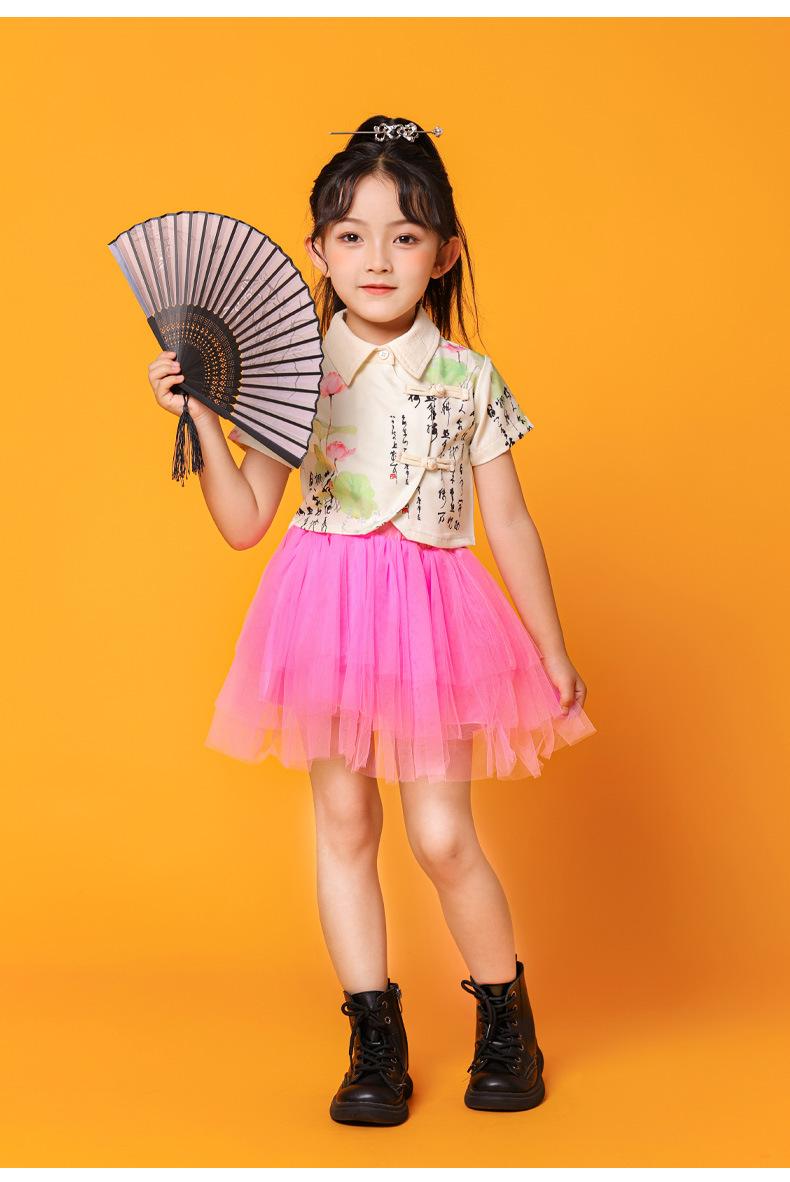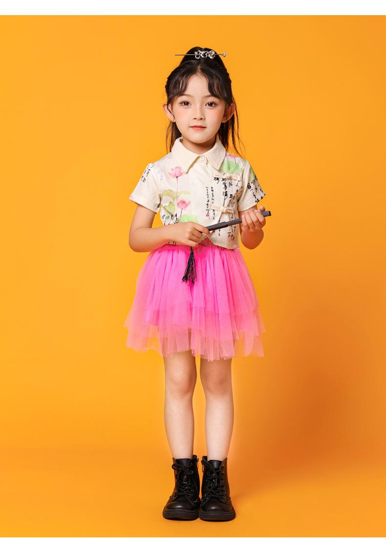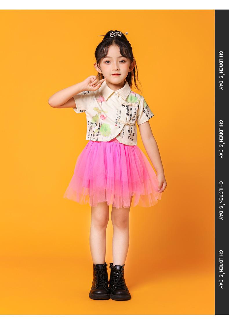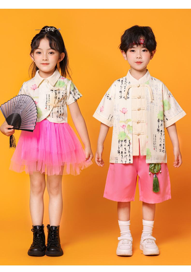 Ropa de actuación para niños, ropa de actuación para coro de danza de estilo chino de jardín de infantes, camisa de loto para niña, traje Hanfu