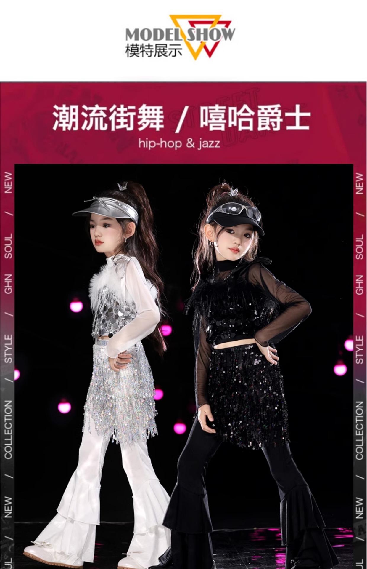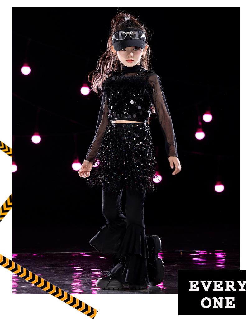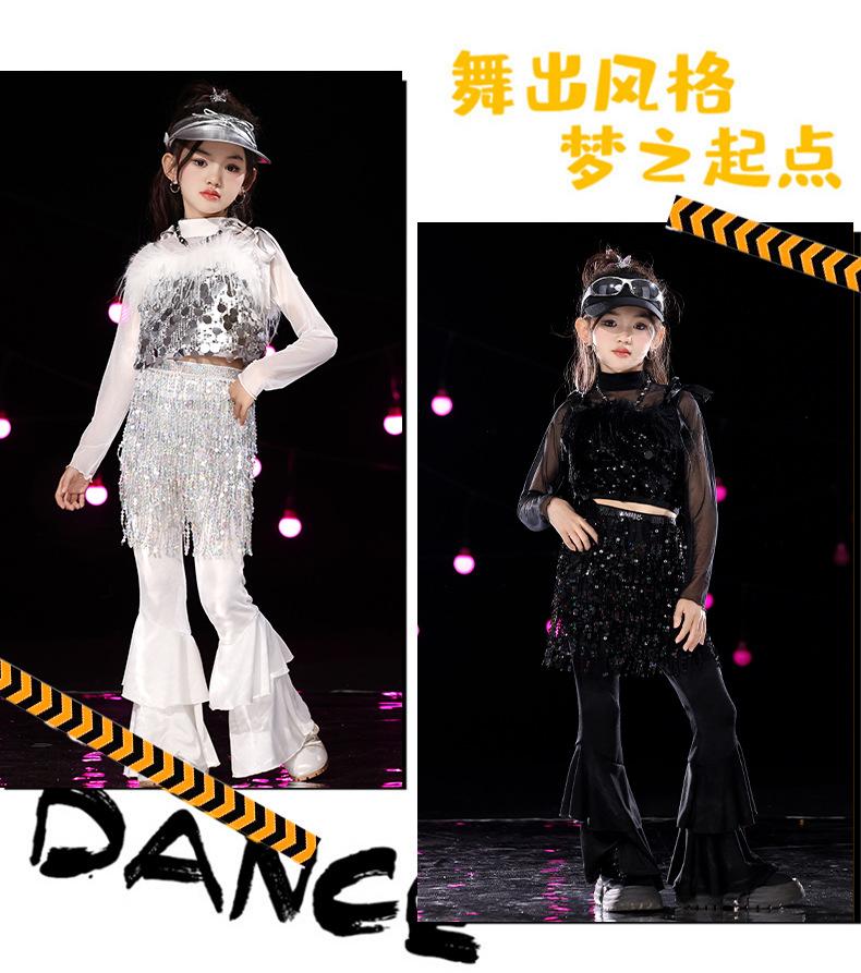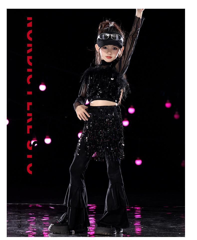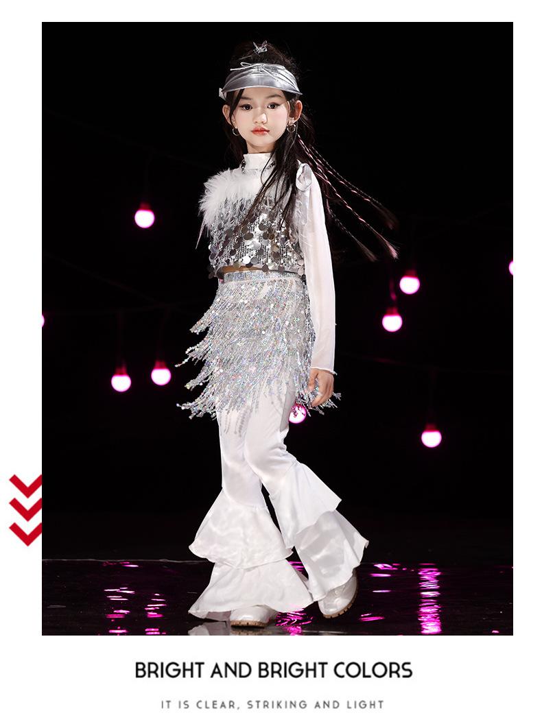 Disfraz de Danza Jazz para Niñas Moderno Cool a la Moda Estilo Coreano Disfraz de Danza para Mujer Jazz Infantil Lentejuelas Disfraz de Actuación Día de Año Nuevo