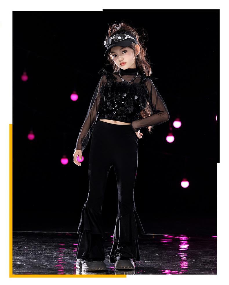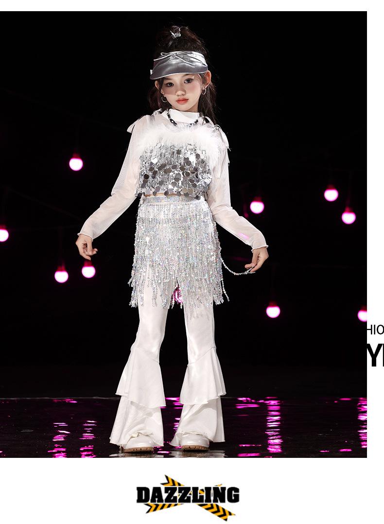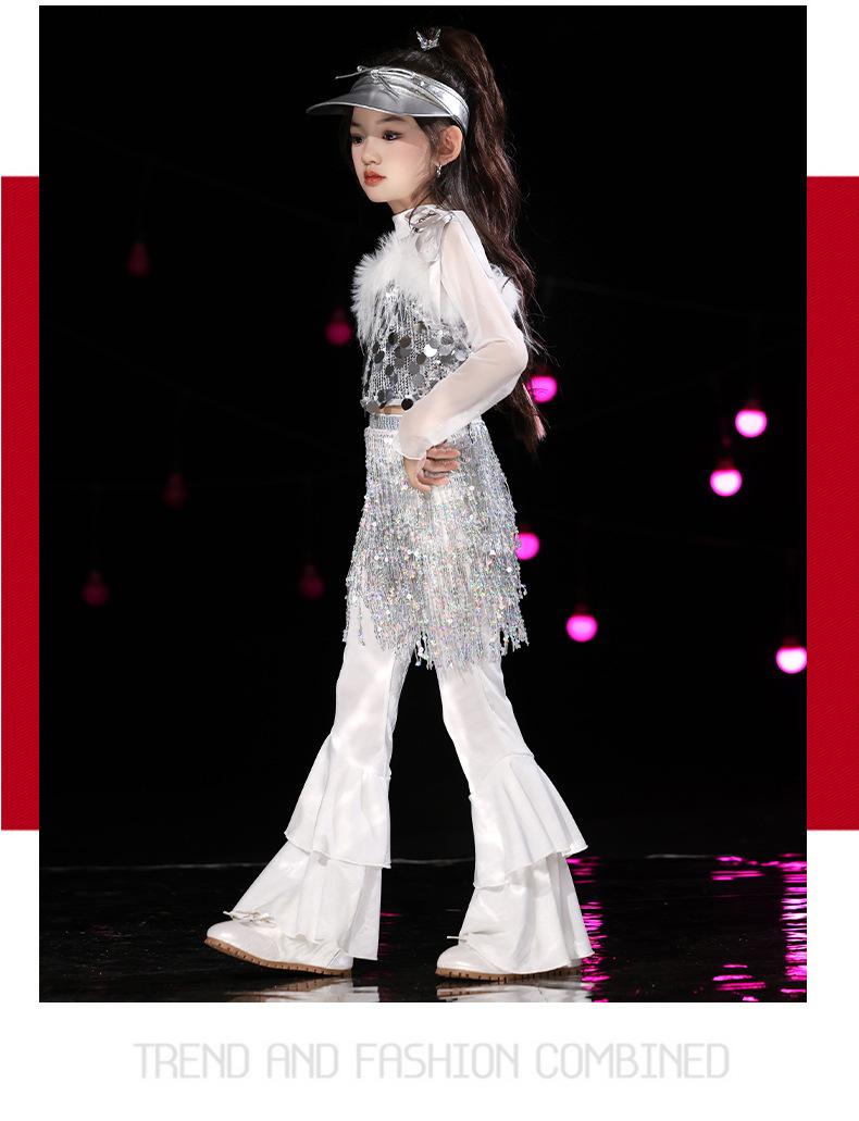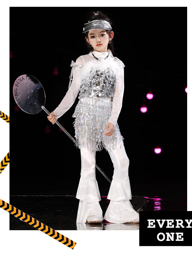 Disfraz de Danza Jazz para Niñas Moderno Cool a la Moda Estilo Coreano Disfraz de Danza para Mujer Jazz Infantil Lentejuelas Disfraz de Actuación Día de Año Nuevo