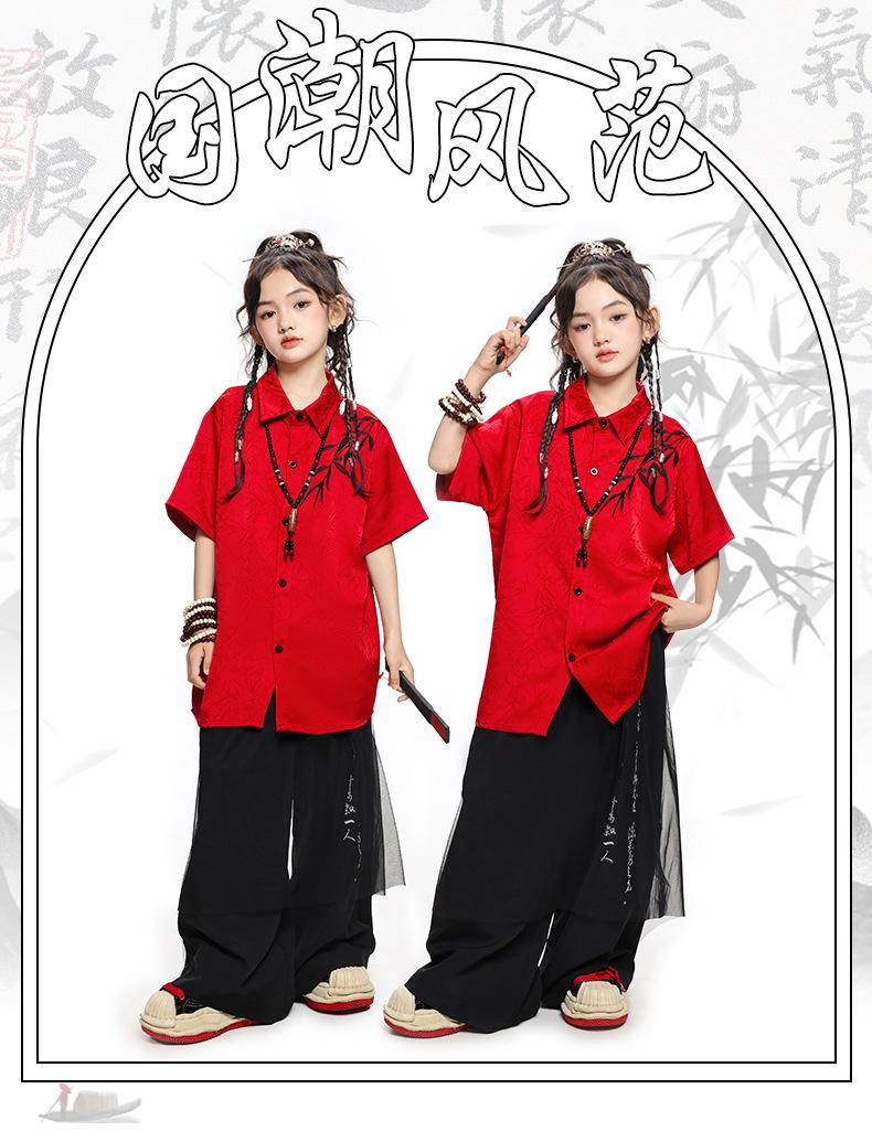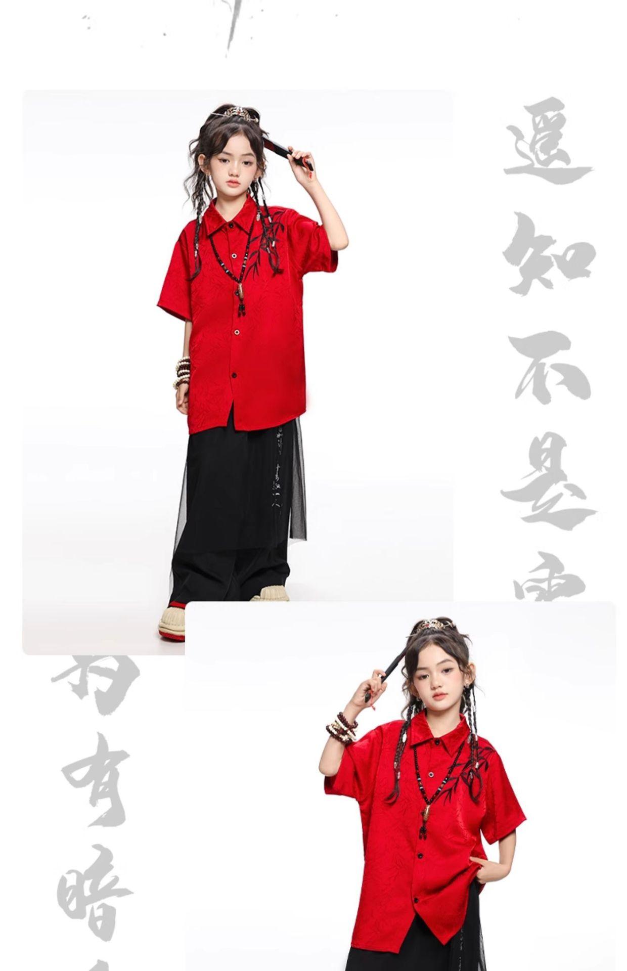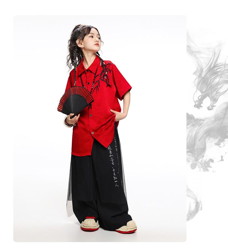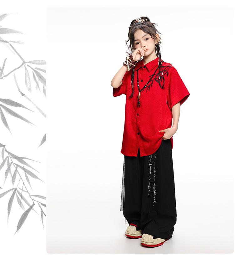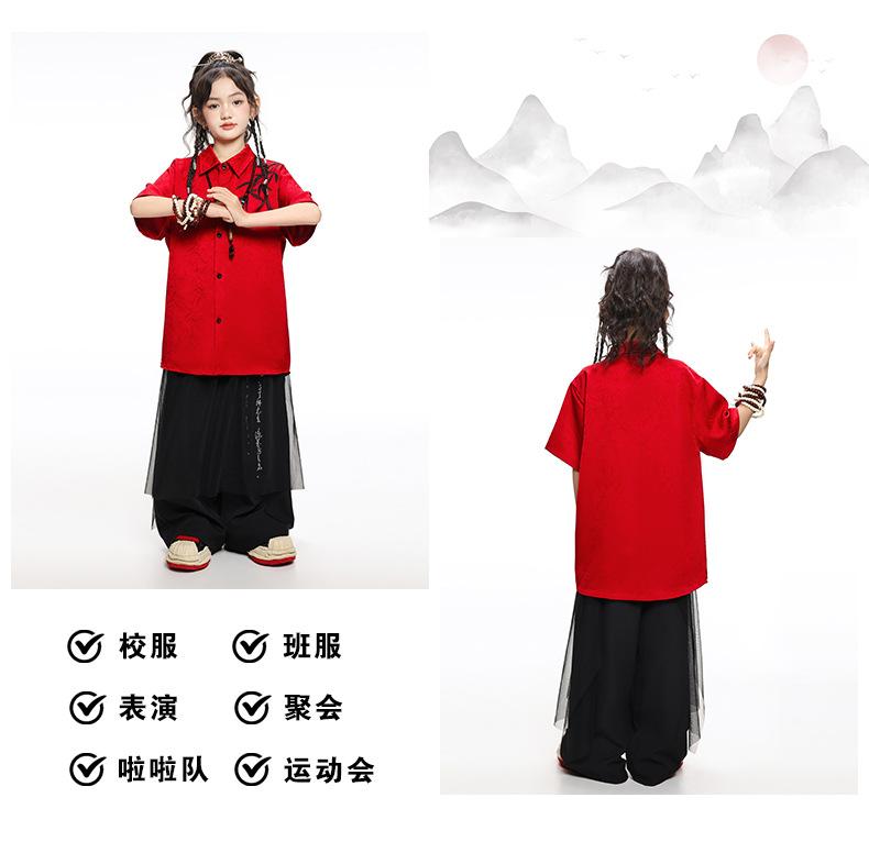 Ropa Infantil de Moda Hip-Hop Marca de Moda Hip-Hop Traje de Camisa Roja Estilo Chino Hiphop Trendy Cool Costsize
