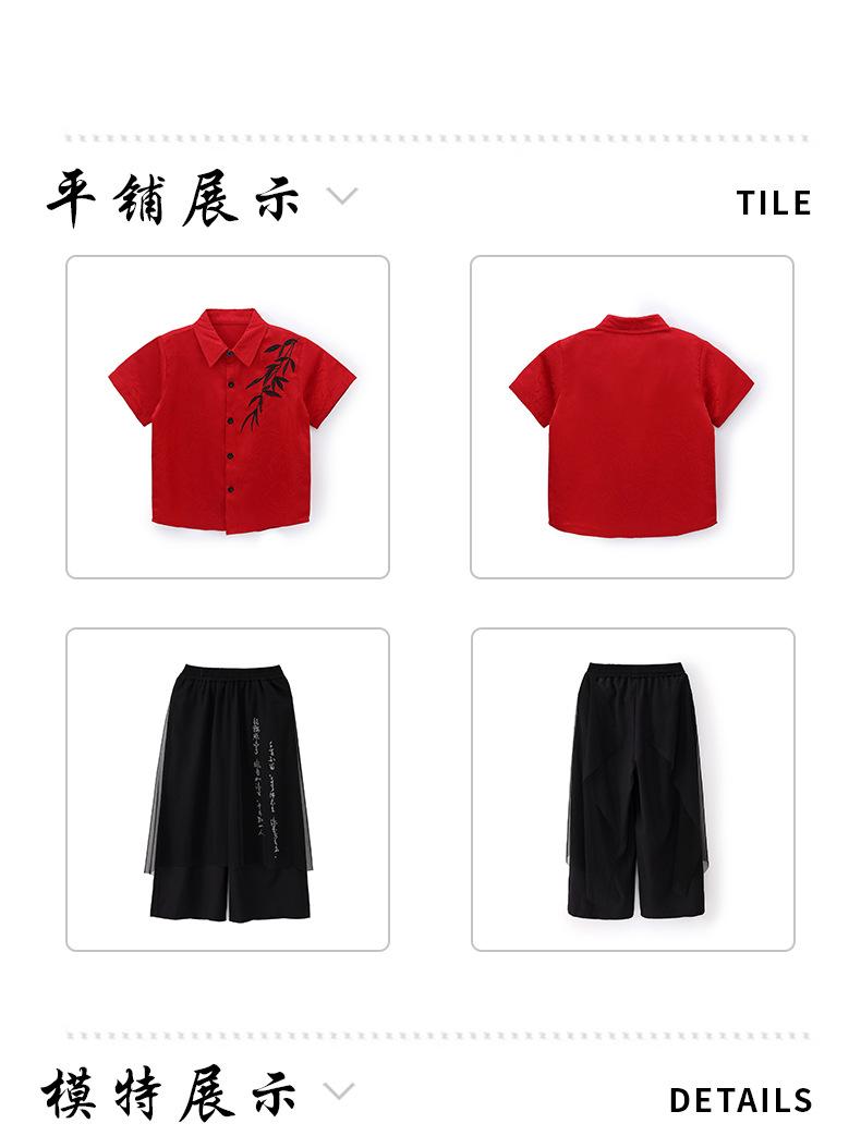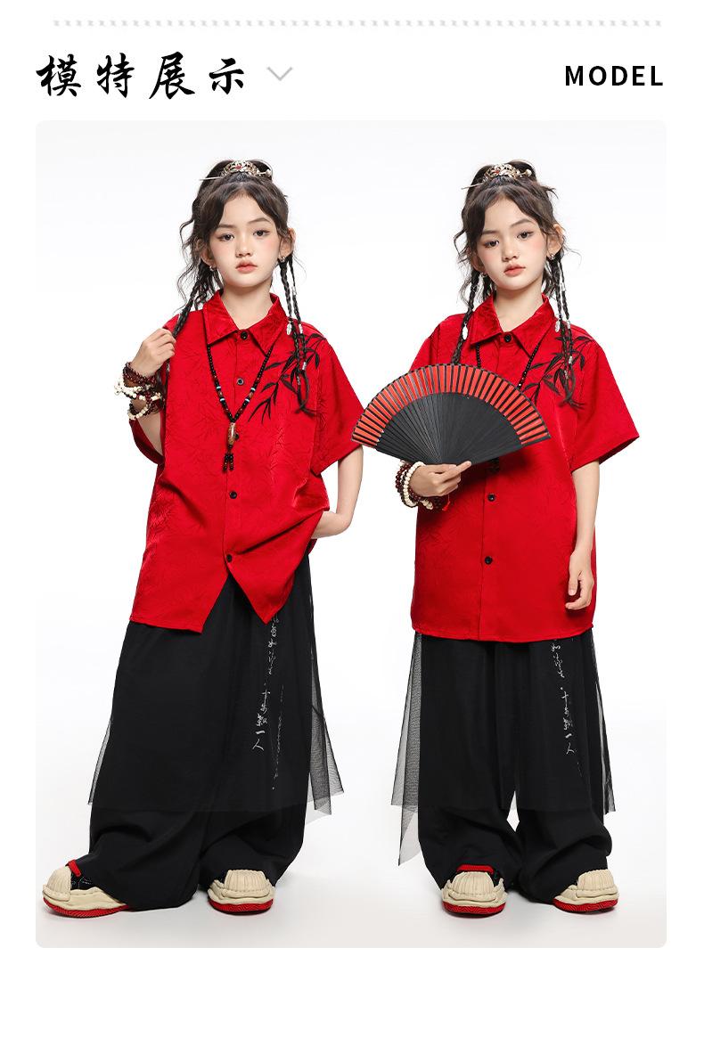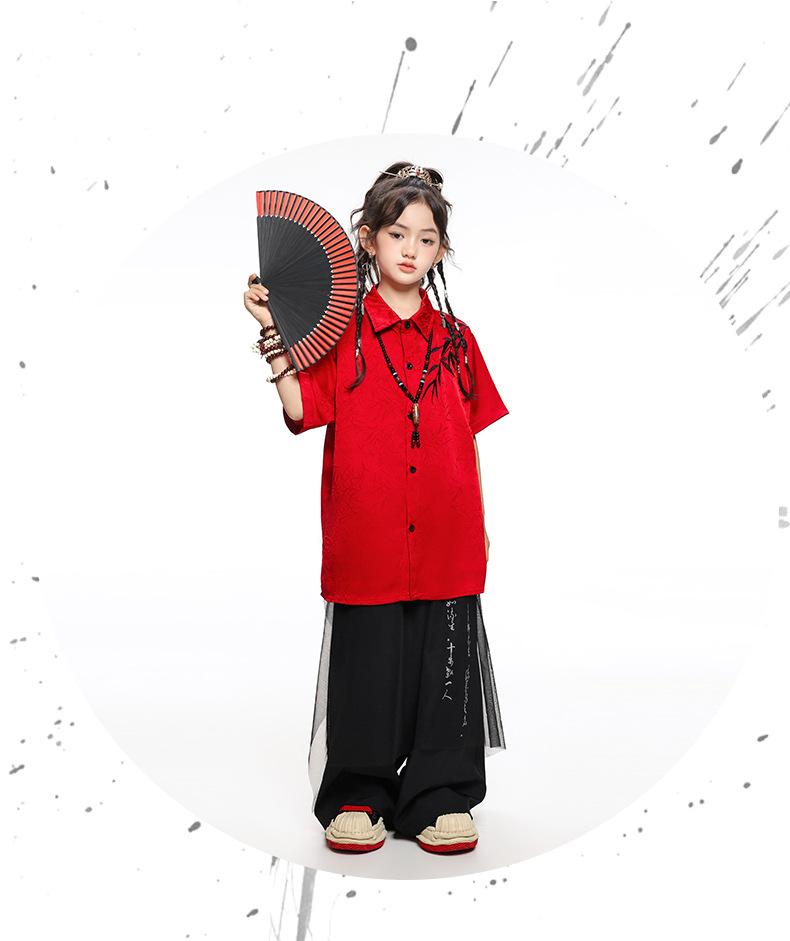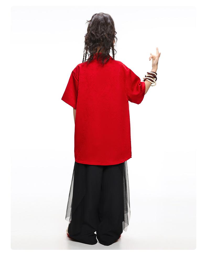 Ropa Infantil de Moda Hip-Hop Marca de Moda Hip-Hop Traje de Camisa Roja Estilo Chino Hiphop Trendy Cool Costsize