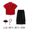133 Red Embroidered Shirt 267 Black National Style Trousers Red Hand String Bead Necklace Fan