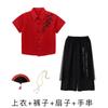 133 red embroidered shirt 267 black national style trousers red bracelet fan