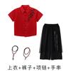 133 Red Embroidered Shirt 267 Black National Style Trousers Fan Bead Necklace