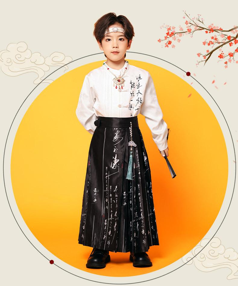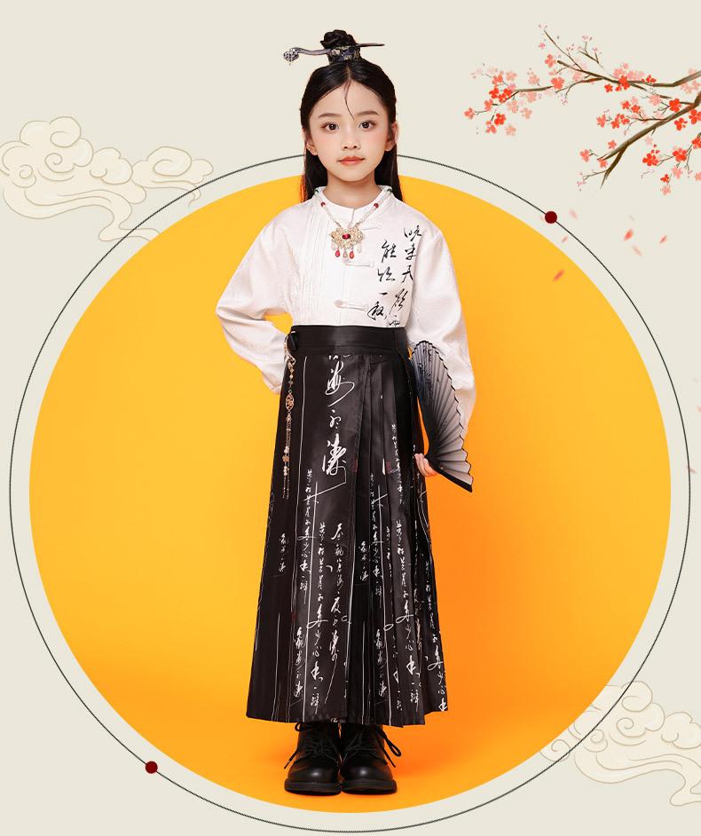 325 Bai Guofeng Long Sleeve, 290 black horse-faced skirt, 325 White Guofeng Long-sleeved 290 Black Horse-faced...