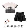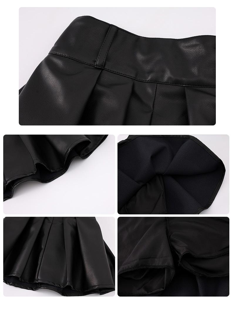Women's 162 Grey T -266 Black Leather Skirt Black Lace-up Gloves