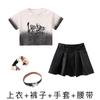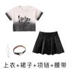 Women's 162 Grey T -266 Black Leather Skirt Black Butterfly Belt Necklace