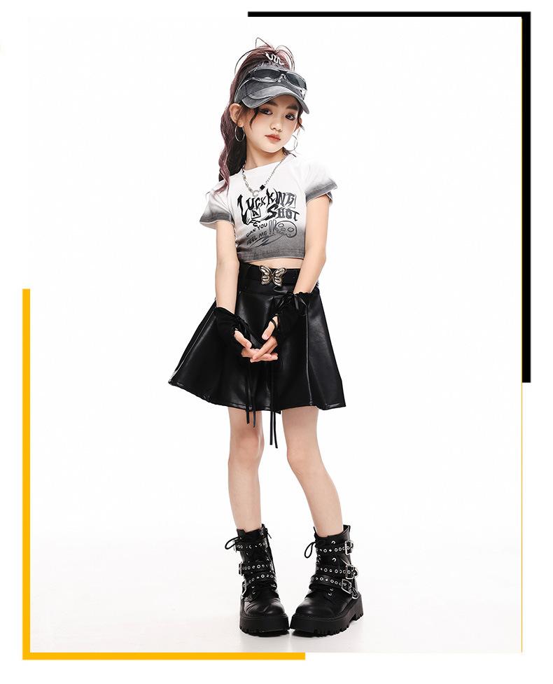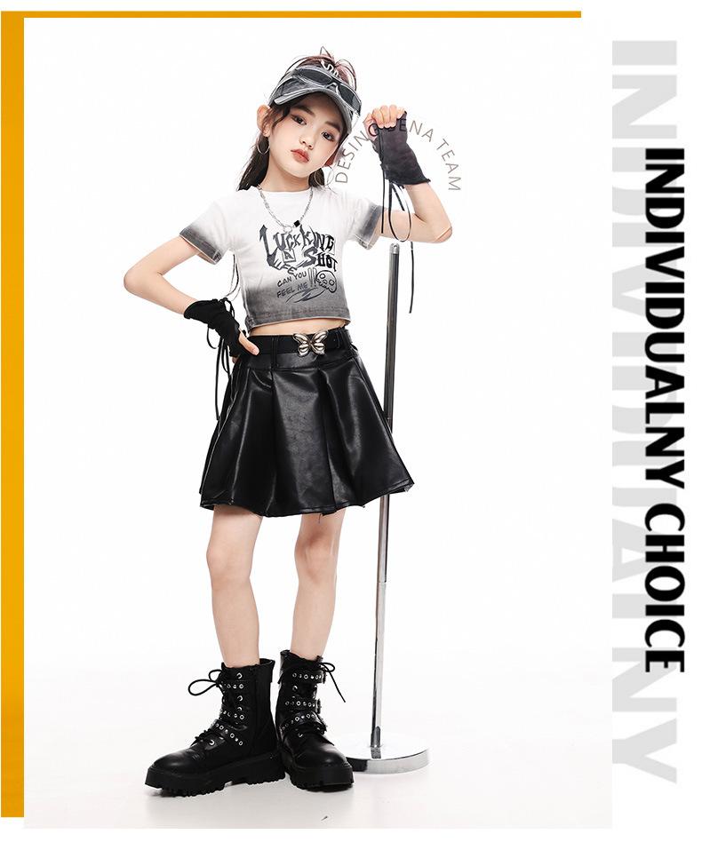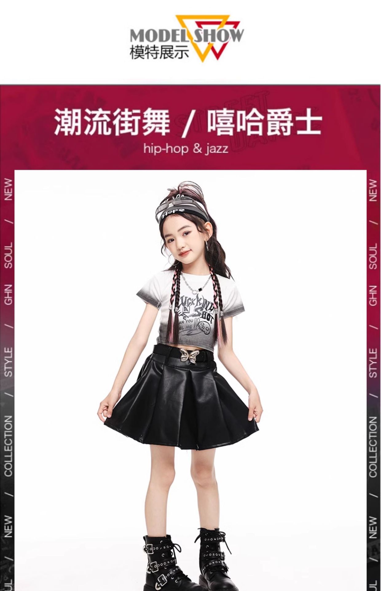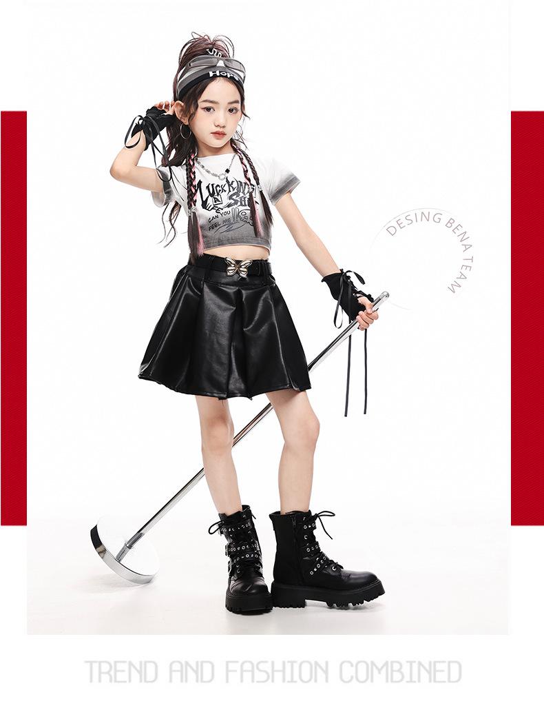 Disfraz de Danza Jazz Moda para Niña Ombliguera Infantil Espectáculo de Danza Jazz Moda Falda de Cuero para Mujer Disfraz de Mesa