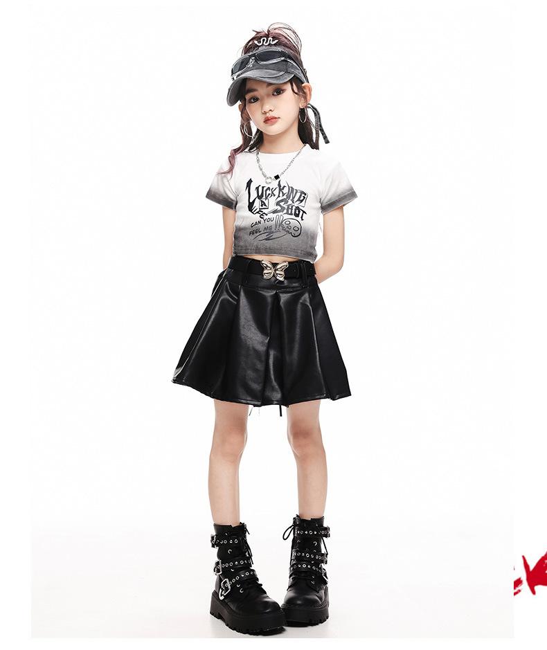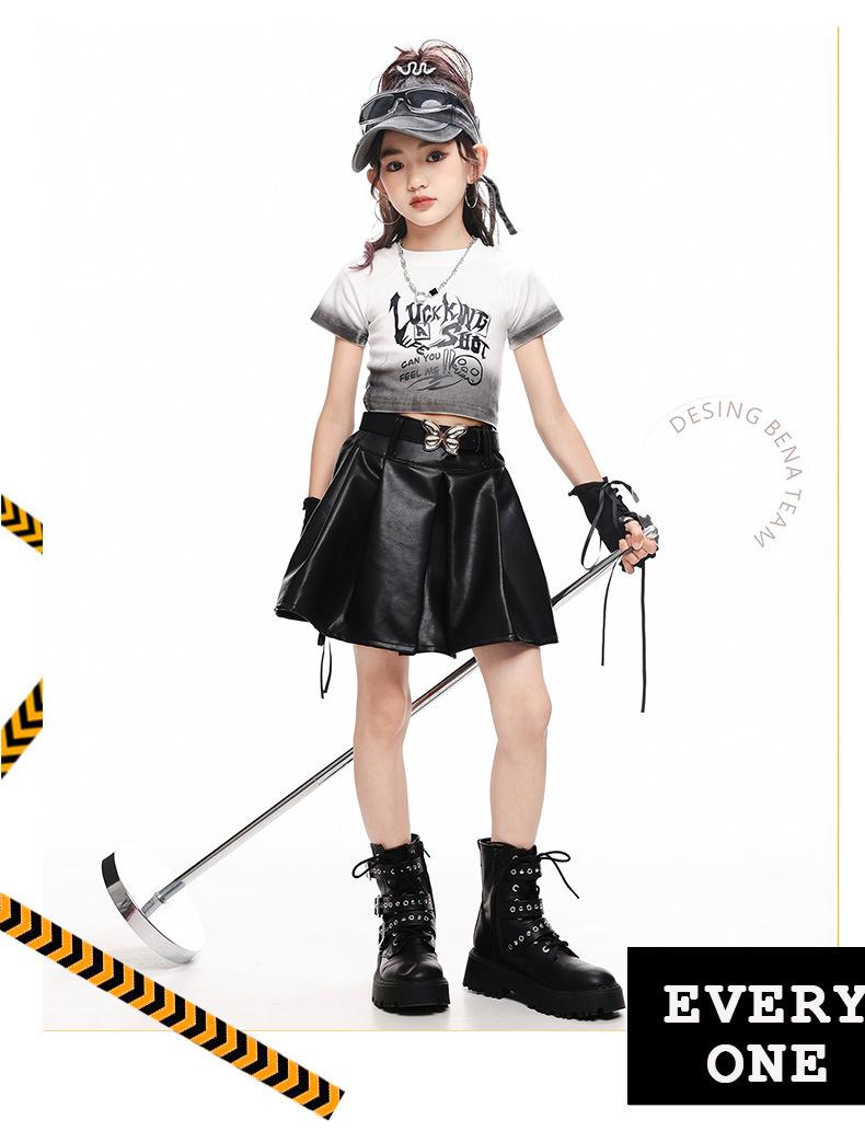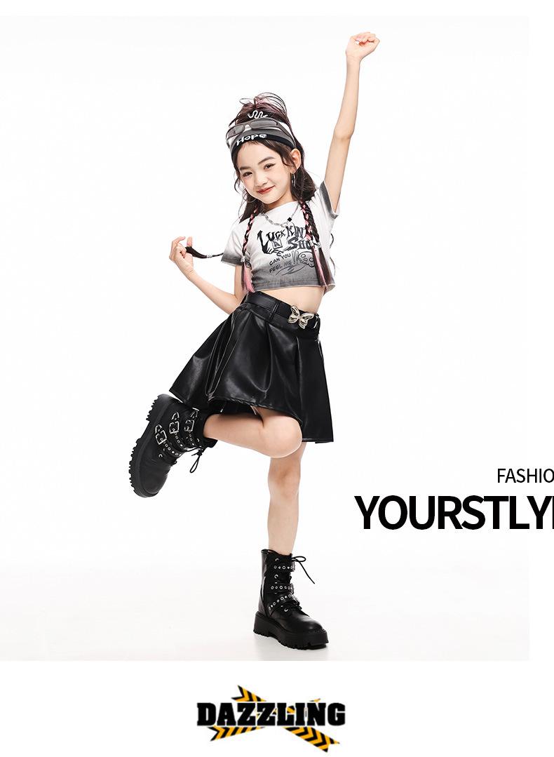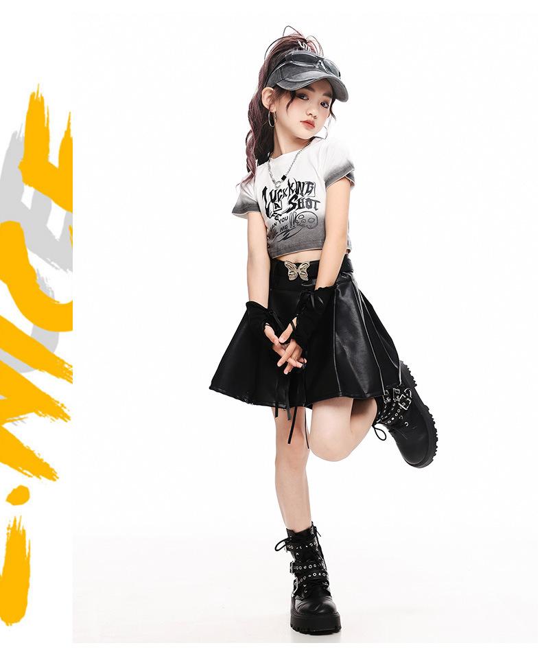 Disfraz de Danza Jazz Moda para Niña Ombliguera Infantil Espectáculo de Danza Jazz Moda Falda de Cuero para Mujer Disfraz de Mesa