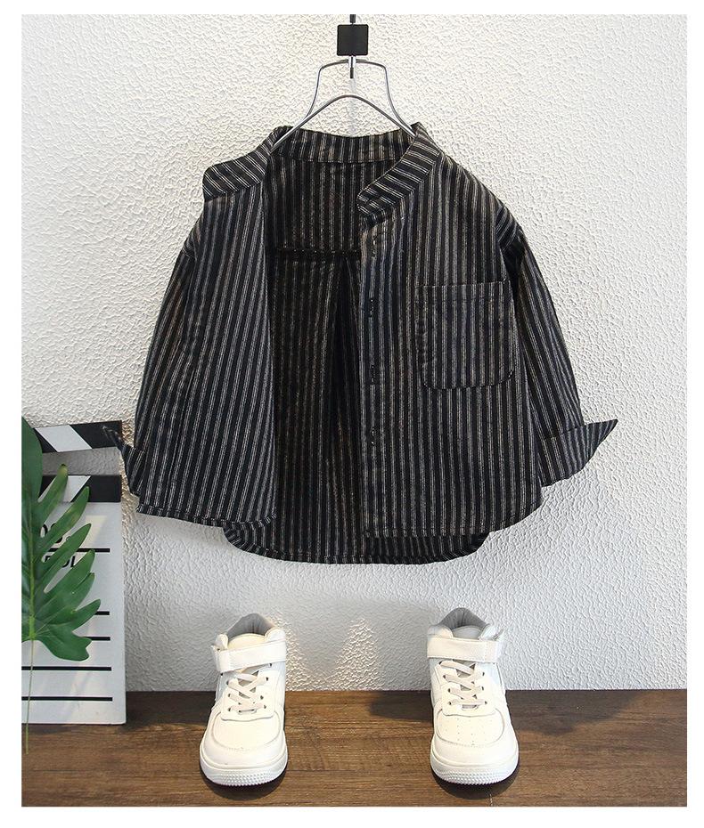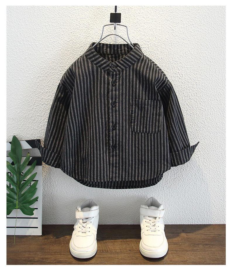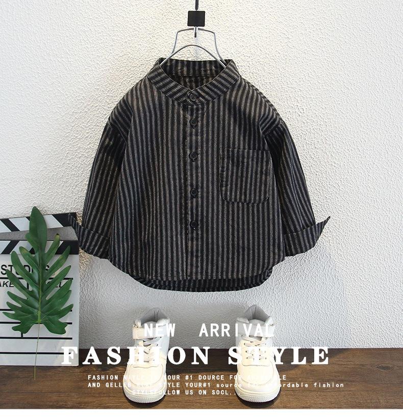 Camisa de cuello de rayas verticales para niños, primavera y otoño de 2025, nueva llegada, nuevo Yipi para niños pequeños, vestido de primavera atractivo, top infantil de estilo occidental.