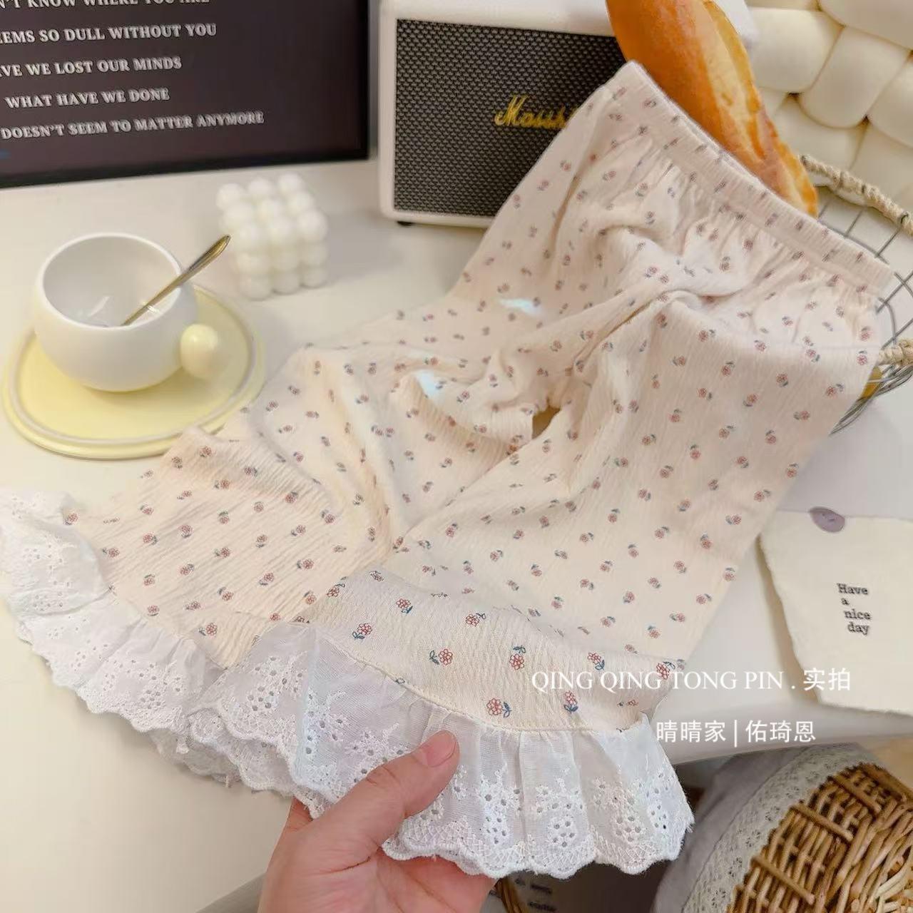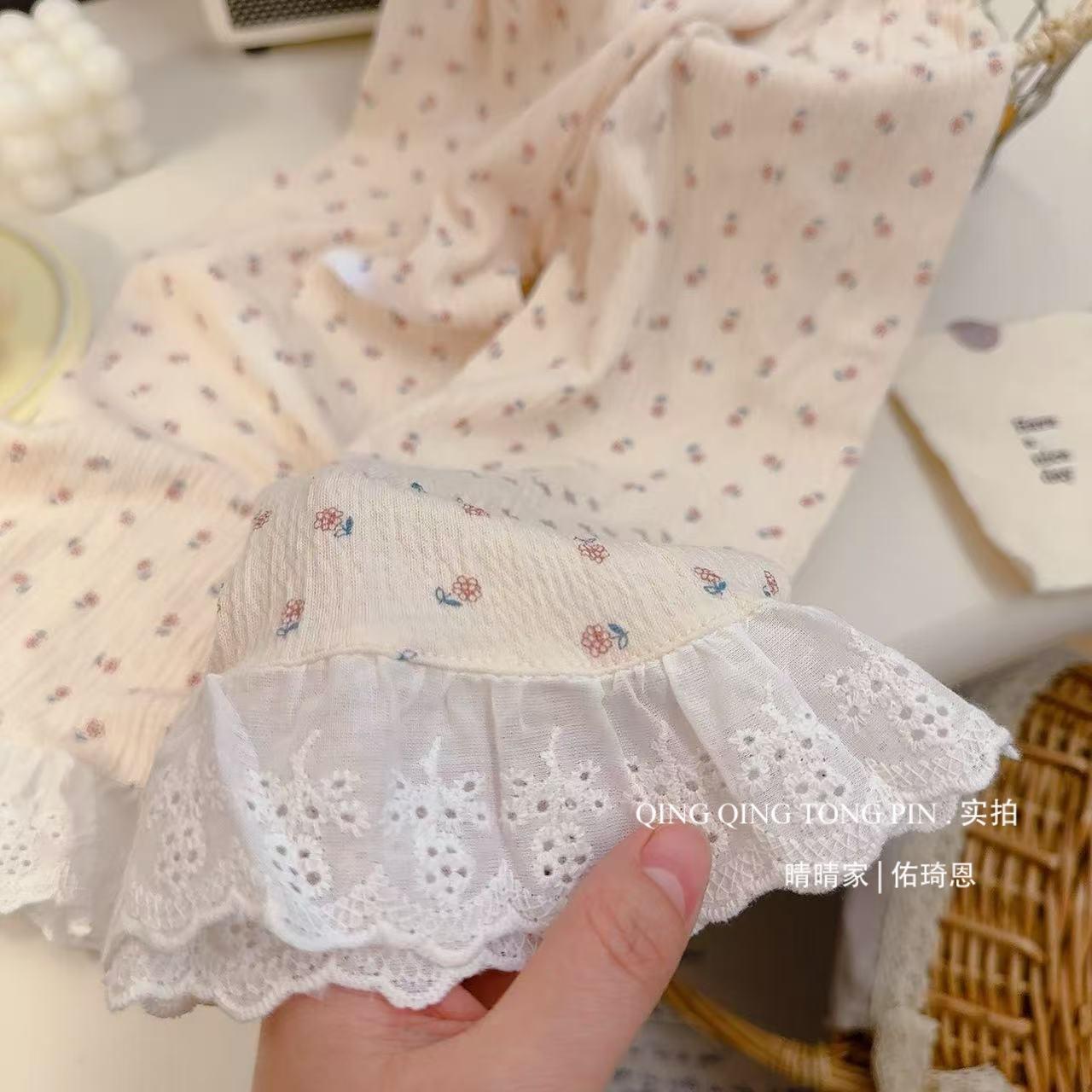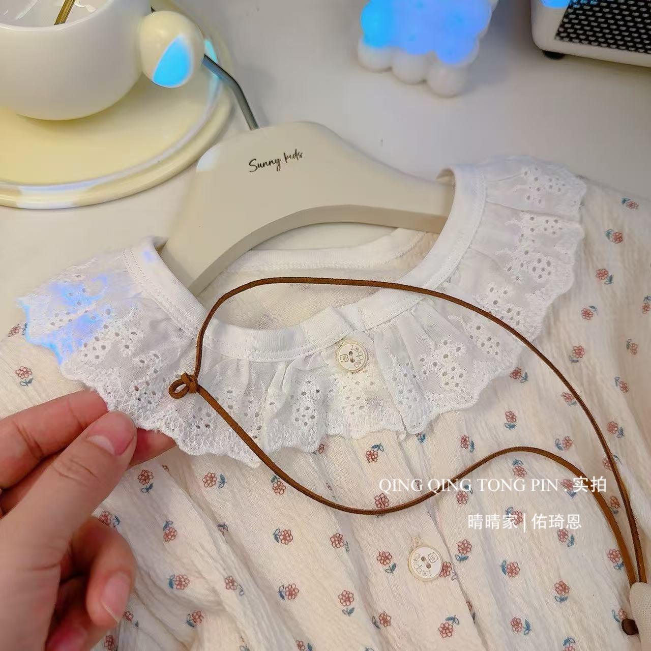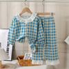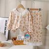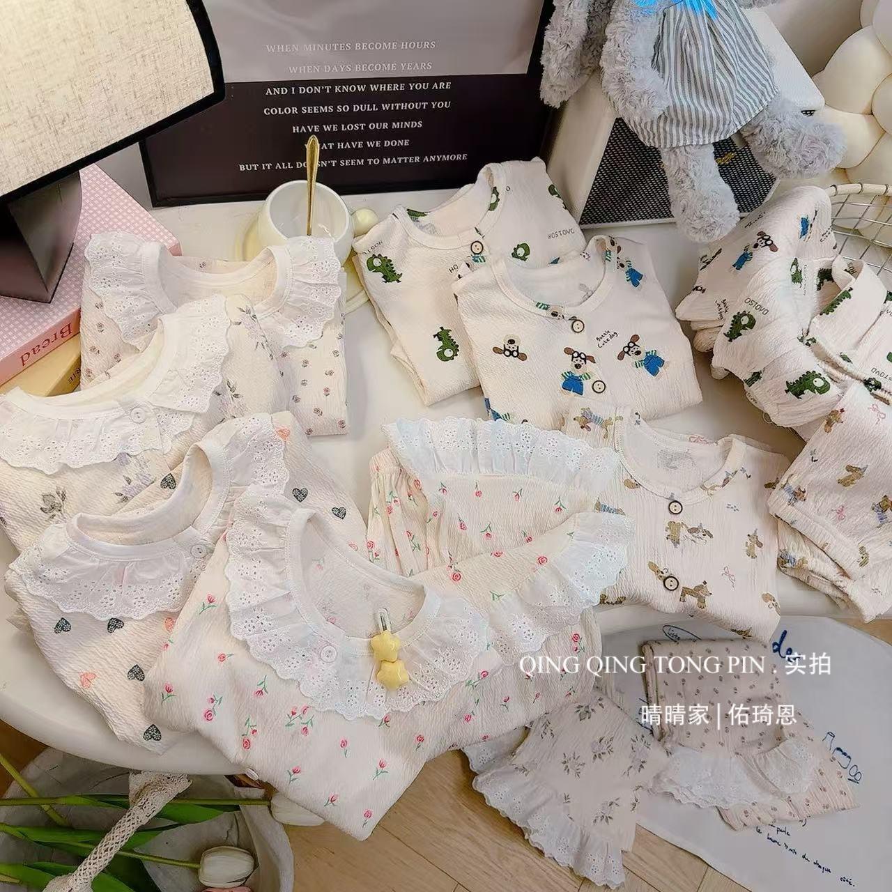 Traje de Hilo de Algodón Elástico para Niños Encaje Bebé Cárdigan de Primavera Ropa para el Hogar Estilo Coreano Lindo Ropa para Aire Acondicionado Pijamas