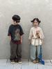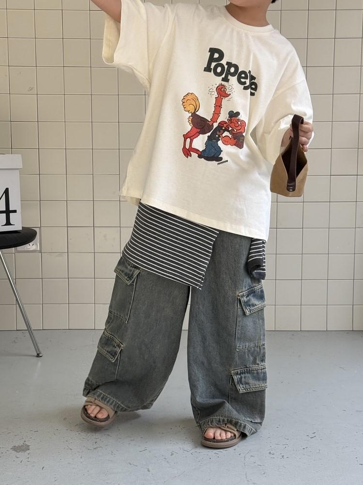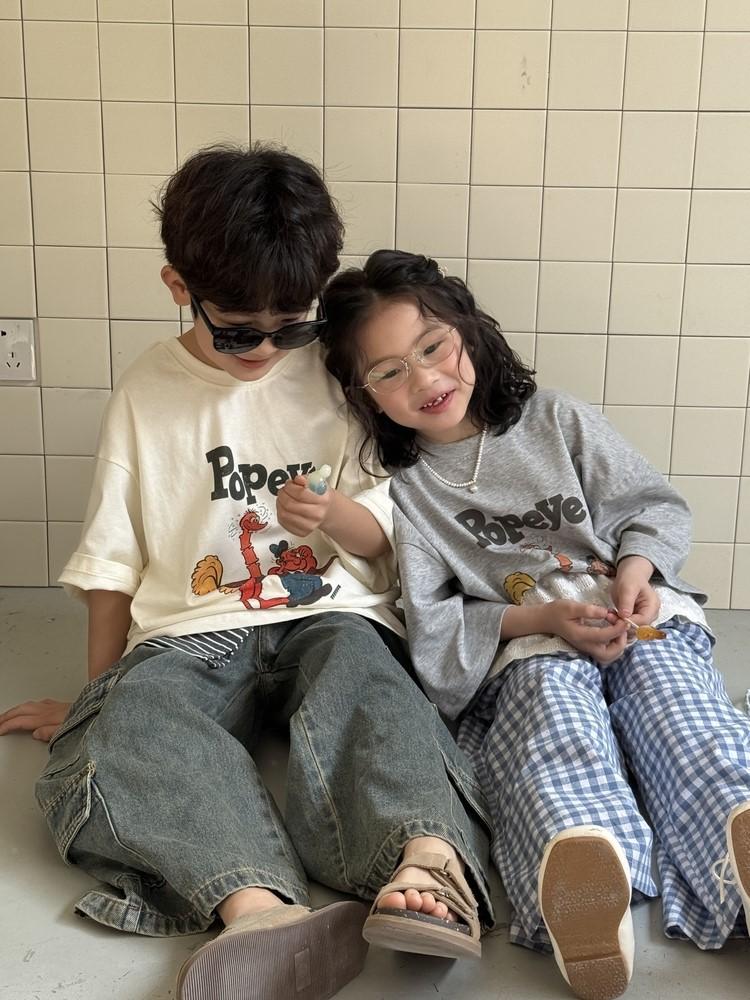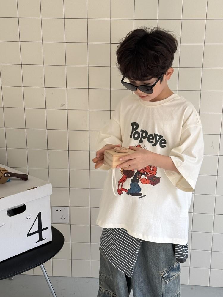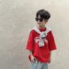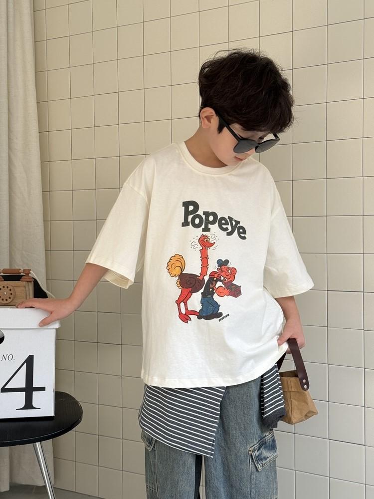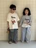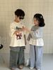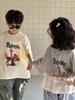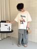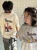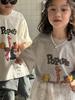 Camiseta para niños, primavera 2025, para niños y niñas, con letras de dibujos animados coreanos, de manga corta, cuello redondo, informal, holgada