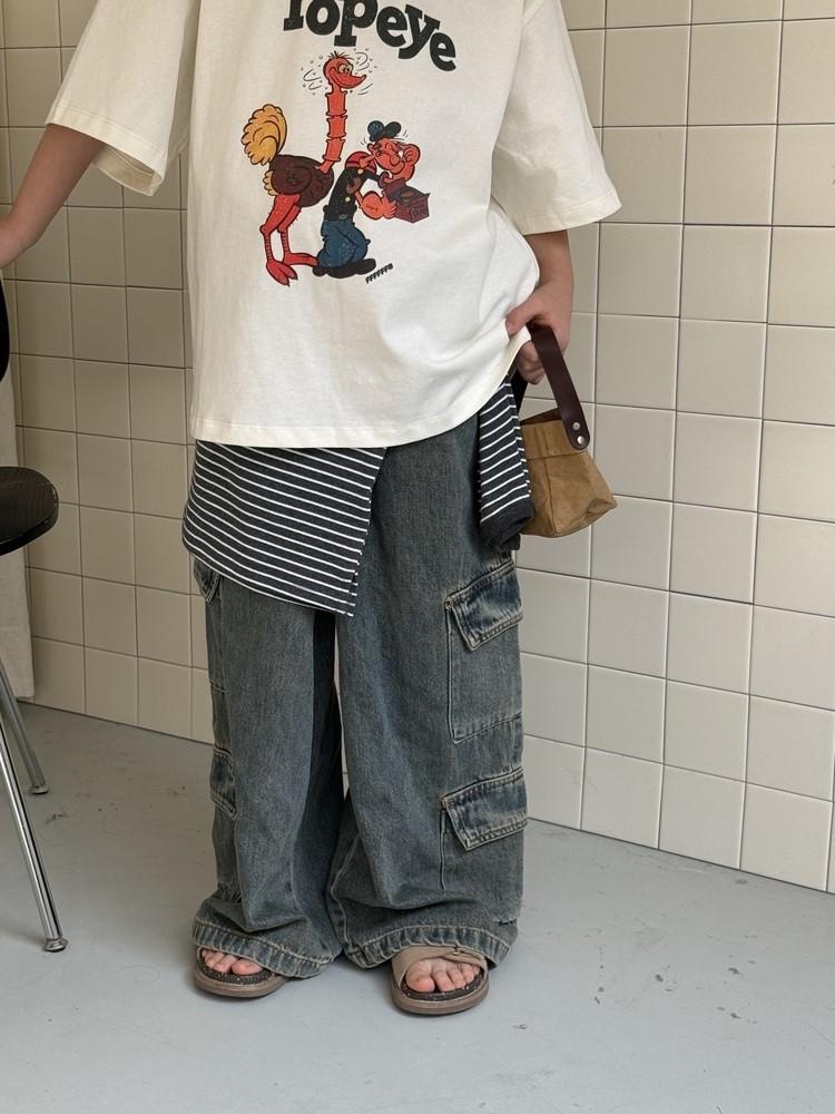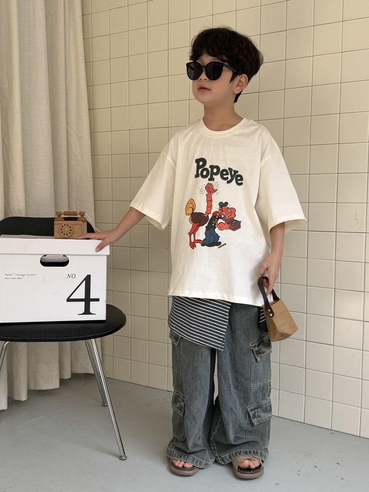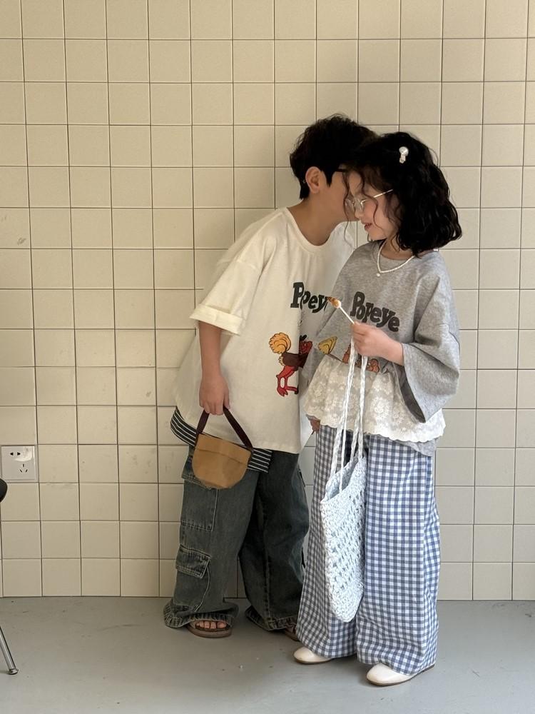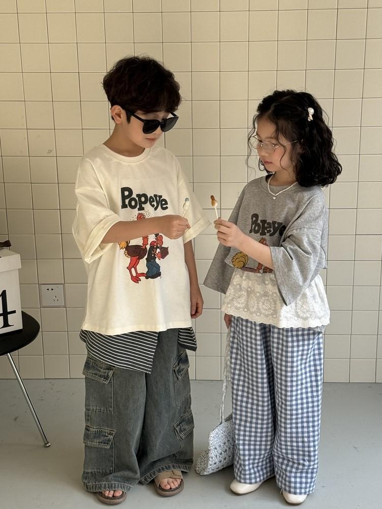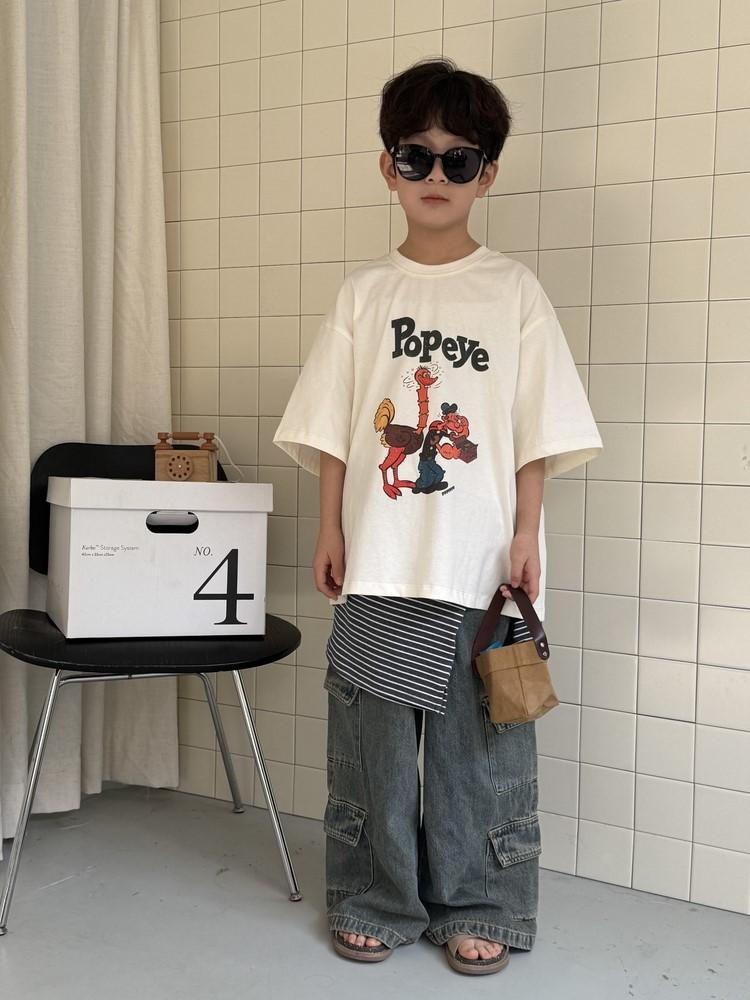 Camiseta para niños, primavera 2025, para niños y niñas, con letras de dibujos animados coreanos, de manga corta, cuello redondo, informal, holgada