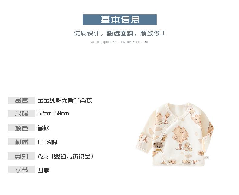 Ropa interior de media espalda para bebé recién nacido, pijama de algodón sin huesos con velcro para primavera y otoño, ropa de monje de luna llena, top de bebé