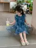 2025 verano nuevo vestido de princesa rosa de gasa con lazo de manga corta para bebé y niño vestido de hada