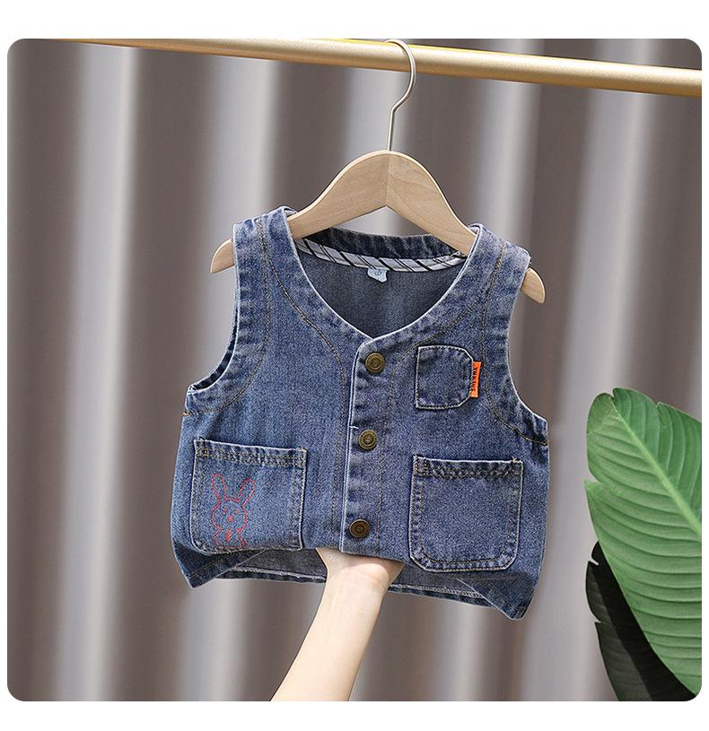 Chaleco vaquero para niños, primavera y otoño de 2025, nuevo chaleco de algodón para bebés, chaleco de algodón para niños, estilo extranjero atractivo.
