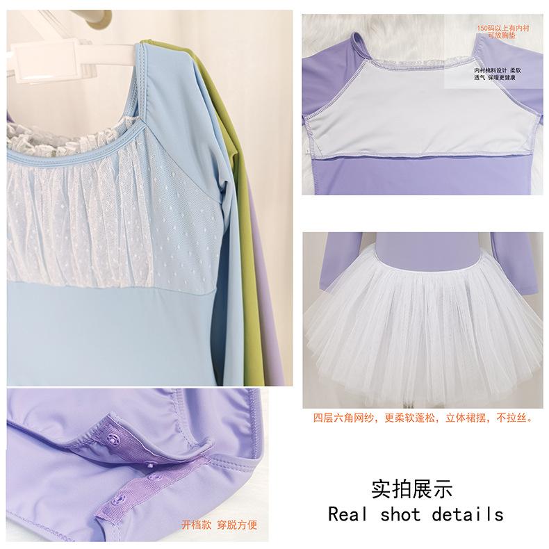 Ropa de baile para niños otoño e invierno encaje ropa de práctica para niñas falda de malla dividida nailon ropa de cuerpo de ballet