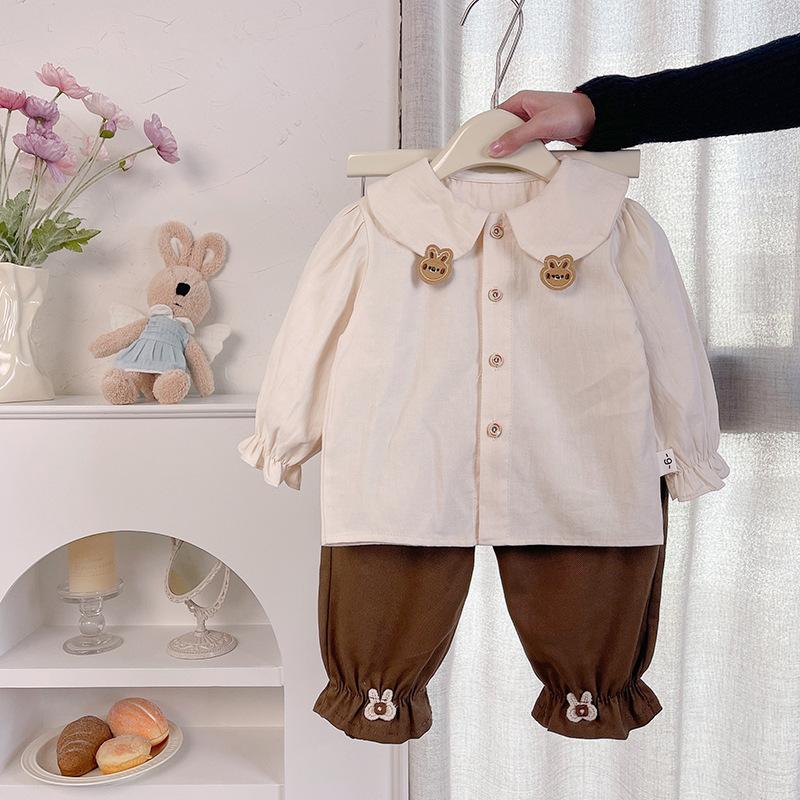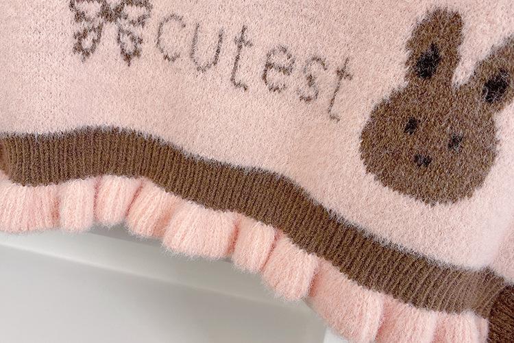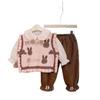 Long-sleeved three-head rabbit sweater three-piece pink, Long-sleeved three-head rabbit sweater three-piece beige