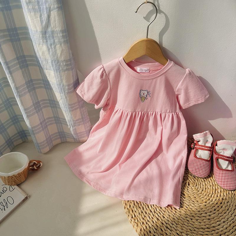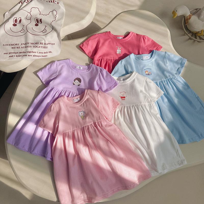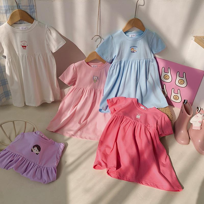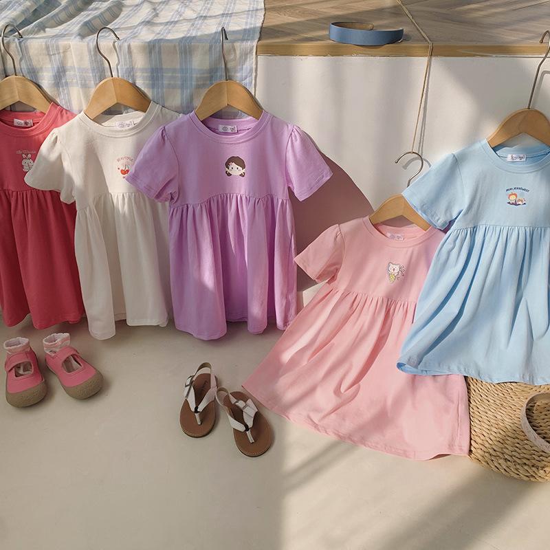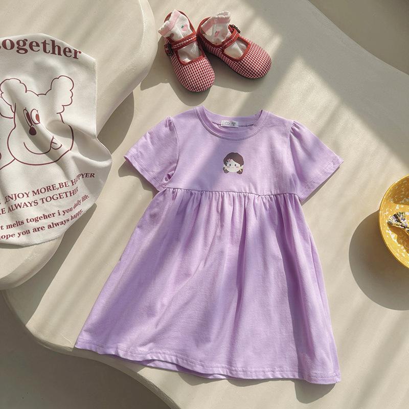 Vestido de estilo coreano para niñas 2025, nuevo, lindo, estampado, falda infantil, vestido de manga corta, vestido de princesa de estilo extranjero.