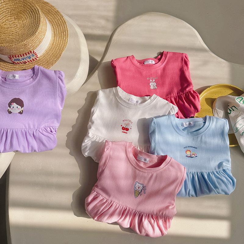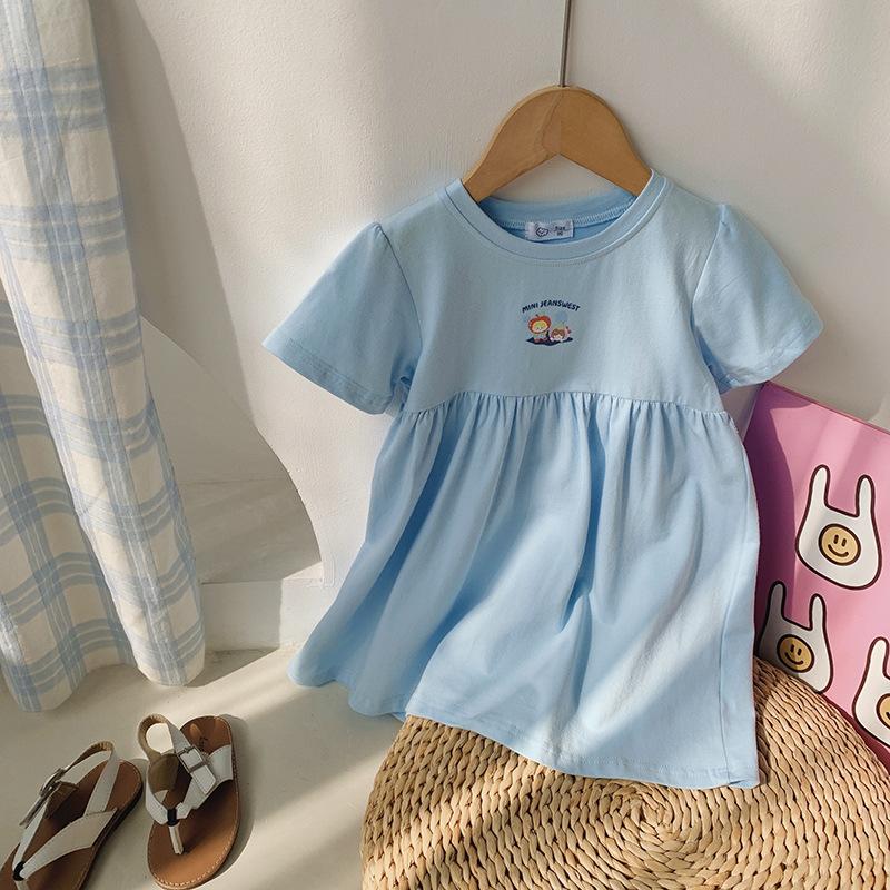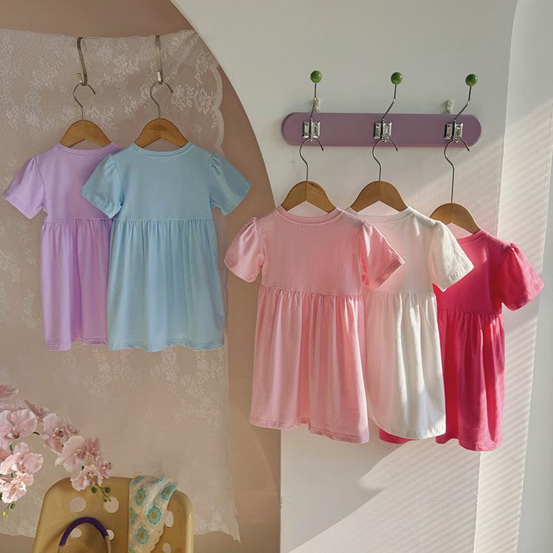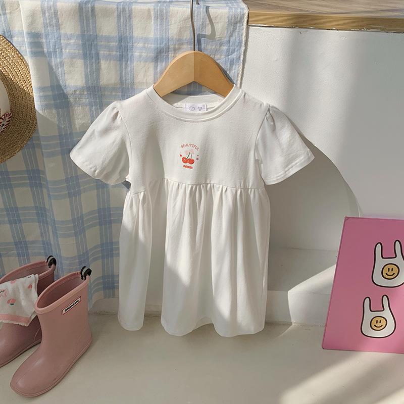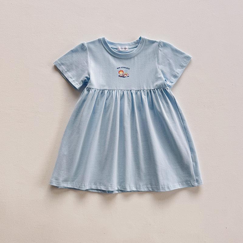 Vestido de estilo coreano para niñas 2025, nuevo, lindo, estampado, falda infantil, vestido de manga corta, vestido de princesa de estilo extranjero.