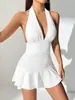 Vestido corto ajustado de corte bajo para mujer, estilo europeo y americano, con escote en V profundo, sexy y sexy, tendencia transfronteriza