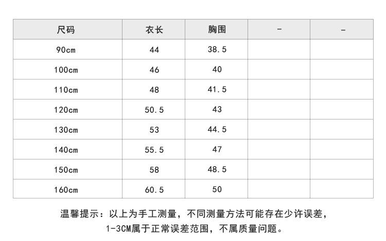 90cm, 100cm, 110cm, 120cm, 130cm, 140cm, 150cm, 160cm