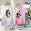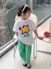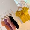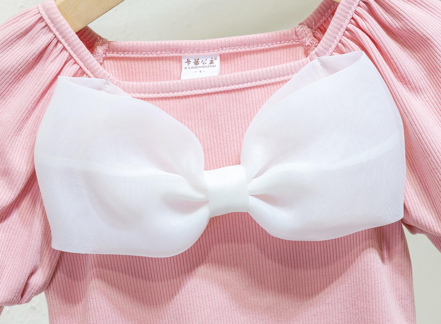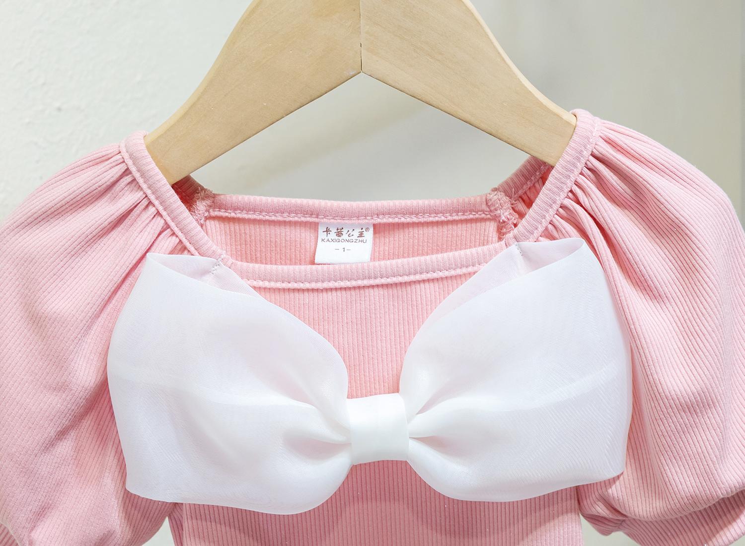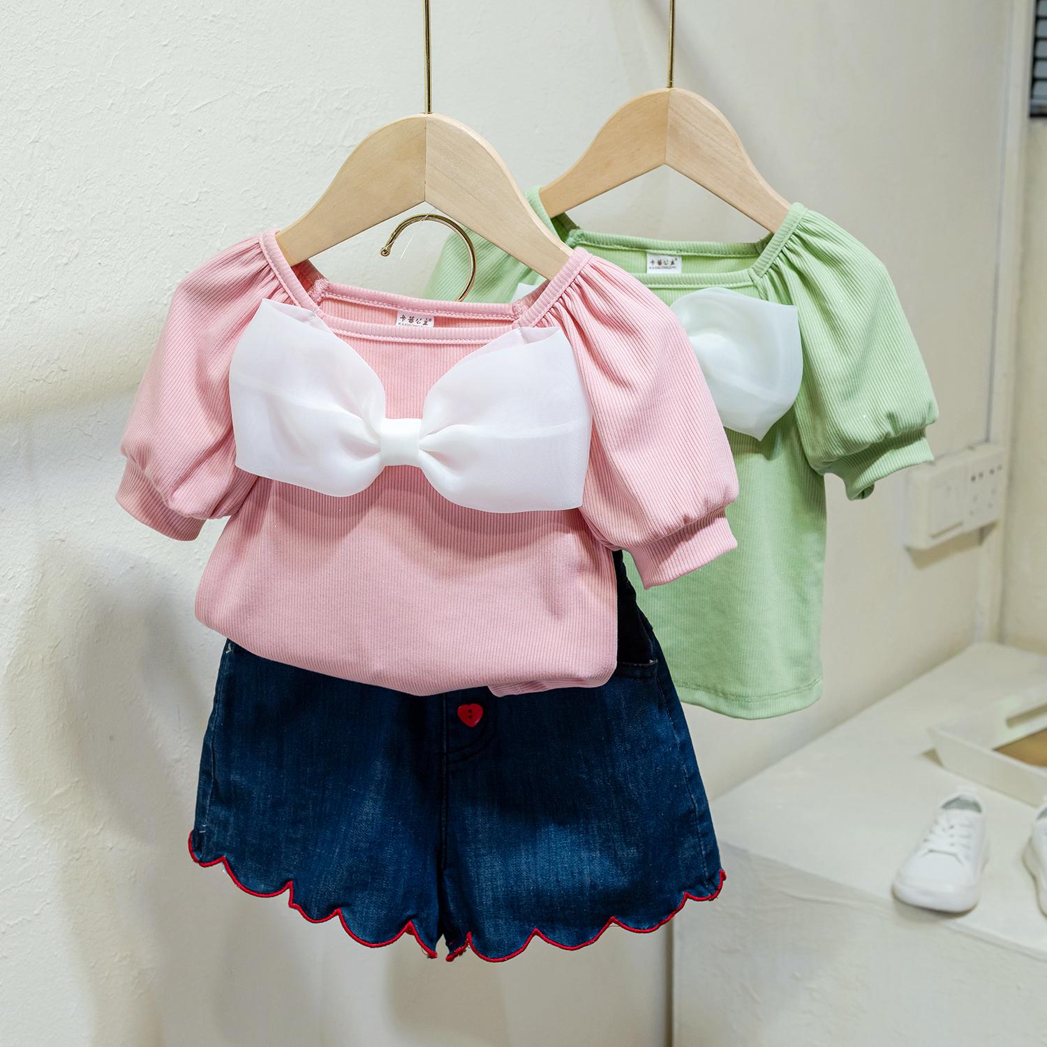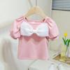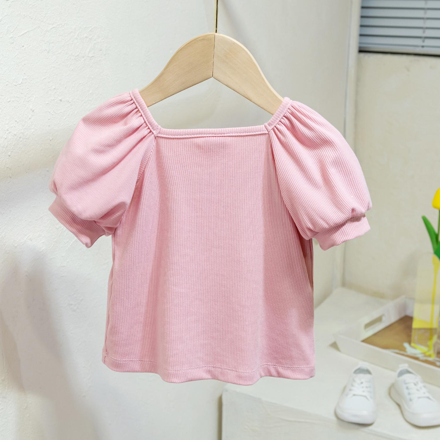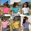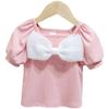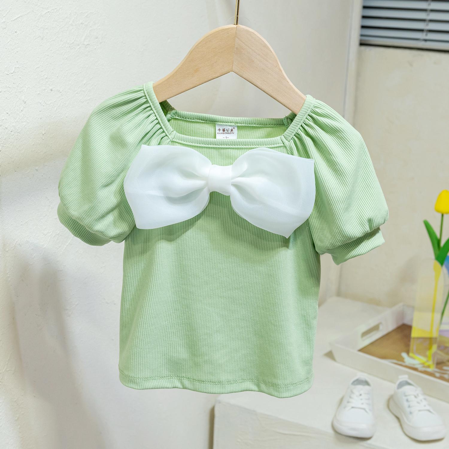 Ropa para Niños de Estilo Coreano 2025 Verano Nuevo Estilo Tops de Lazo para Niñas Camiseta de Manga Corta de Color Puro para Niños Camiseta Básica