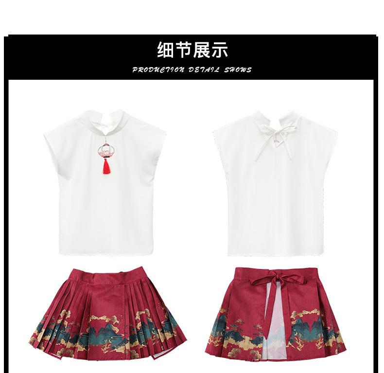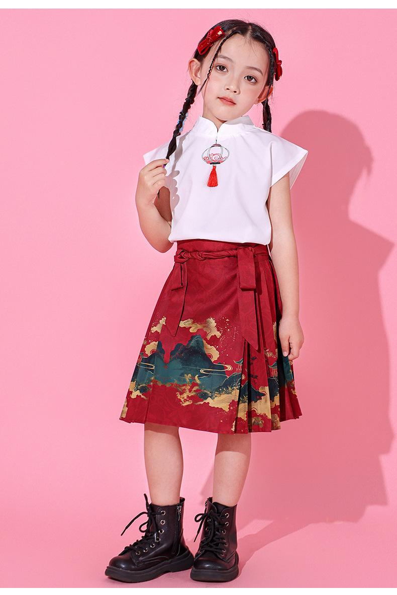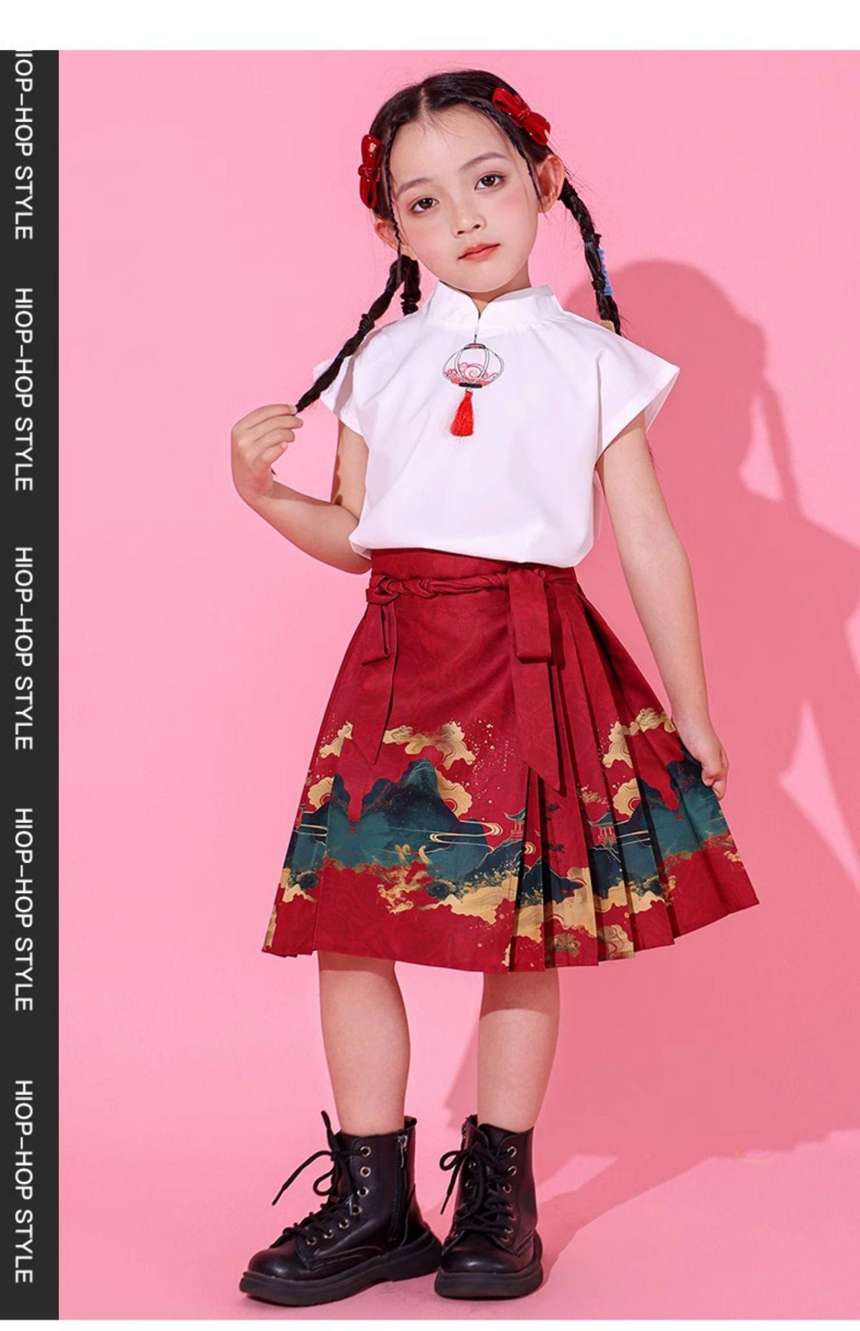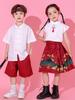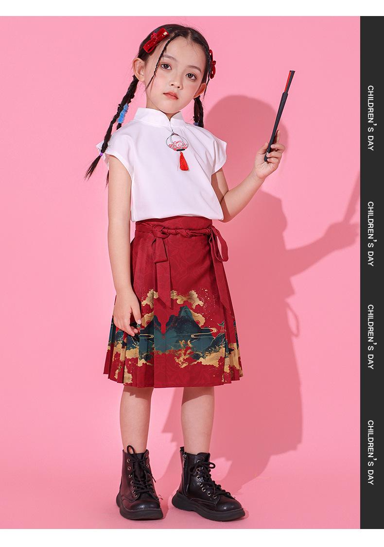 Ropa de actuación para niños, juegos de escuela primaria, equipo de porristas, ropa de actuación de estilo chino, falda con cara de caballo Hanfu para niñas