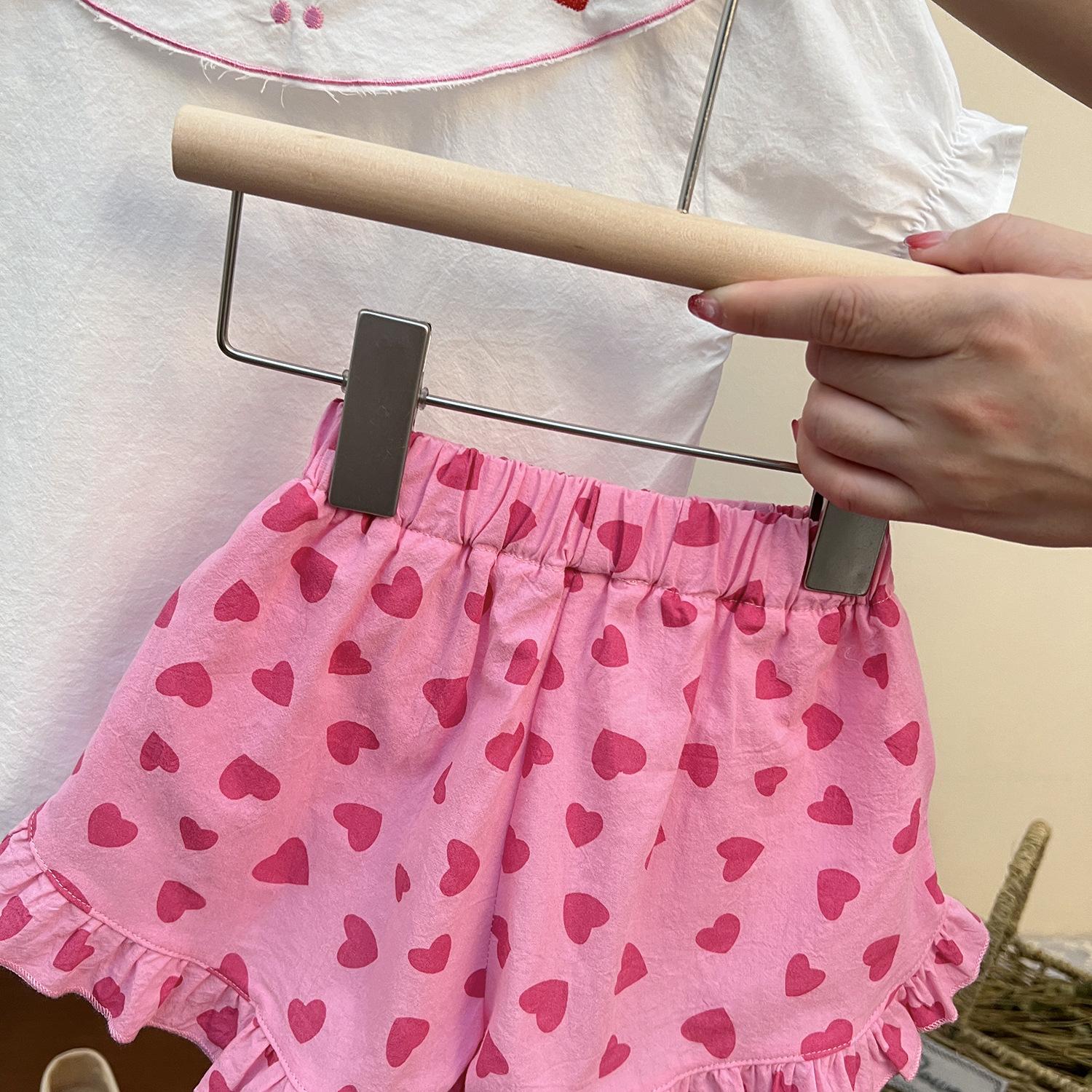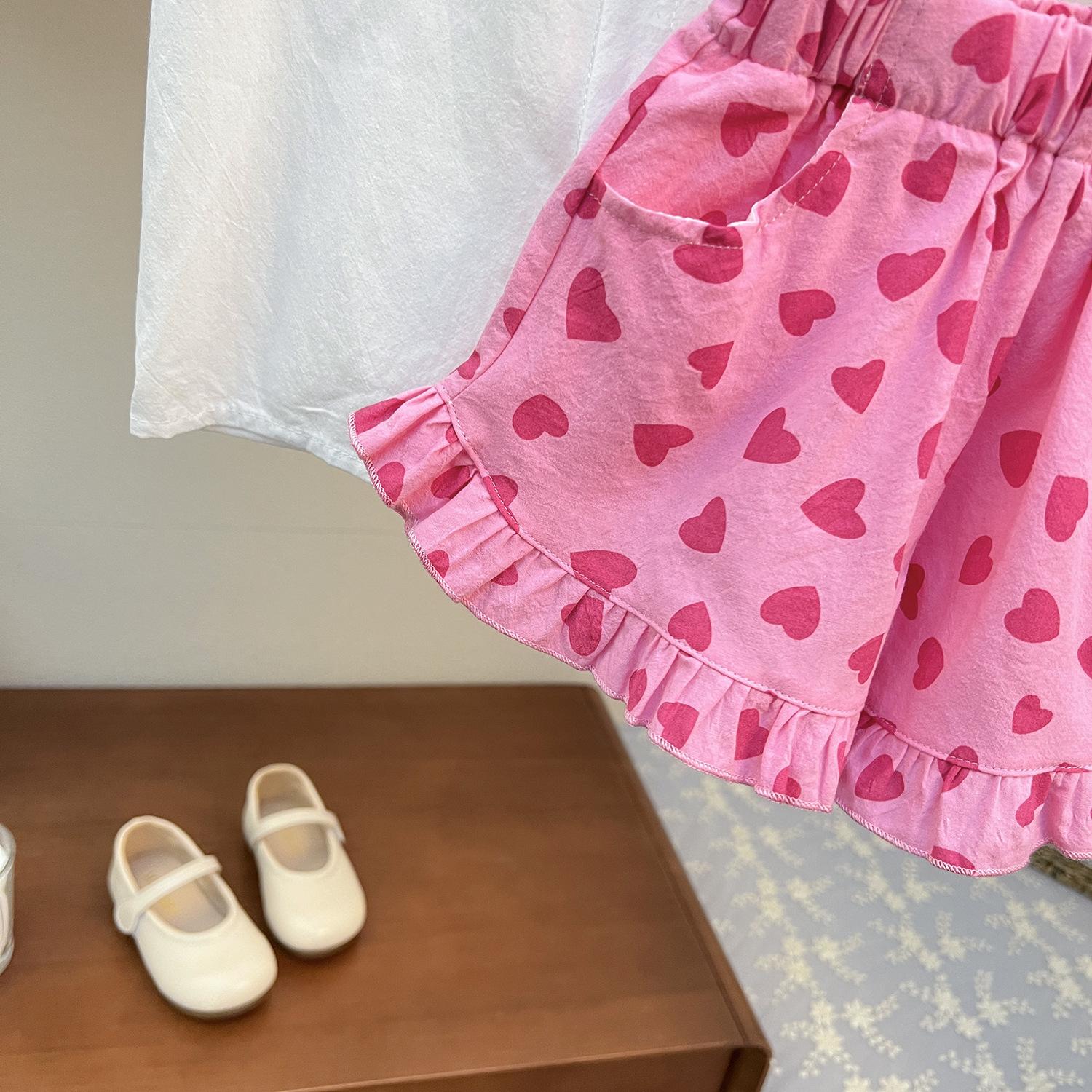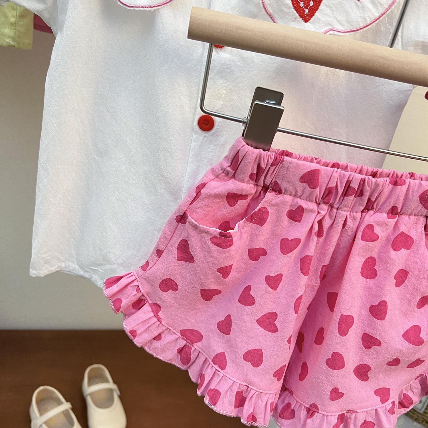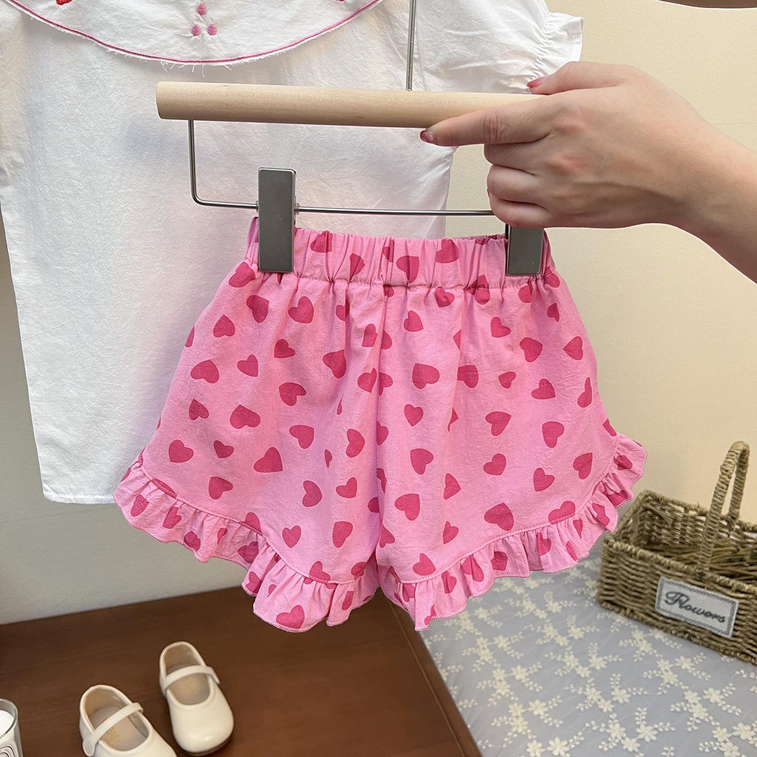 (Liquidación) Shorts para Niñas 2025 Nuevo Verano Amor Estampado Moda para Bebé Niña Más Fácil de Combinar Pantalones de Encaje Pequeño