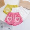 Niñas 2023 nuevos shorts de verano con estampado de amor, pantalones de encaje elegantes para bebé, para niños suaves y delgados