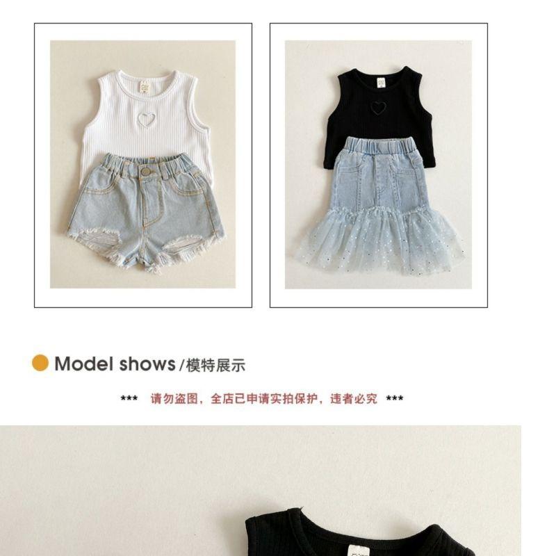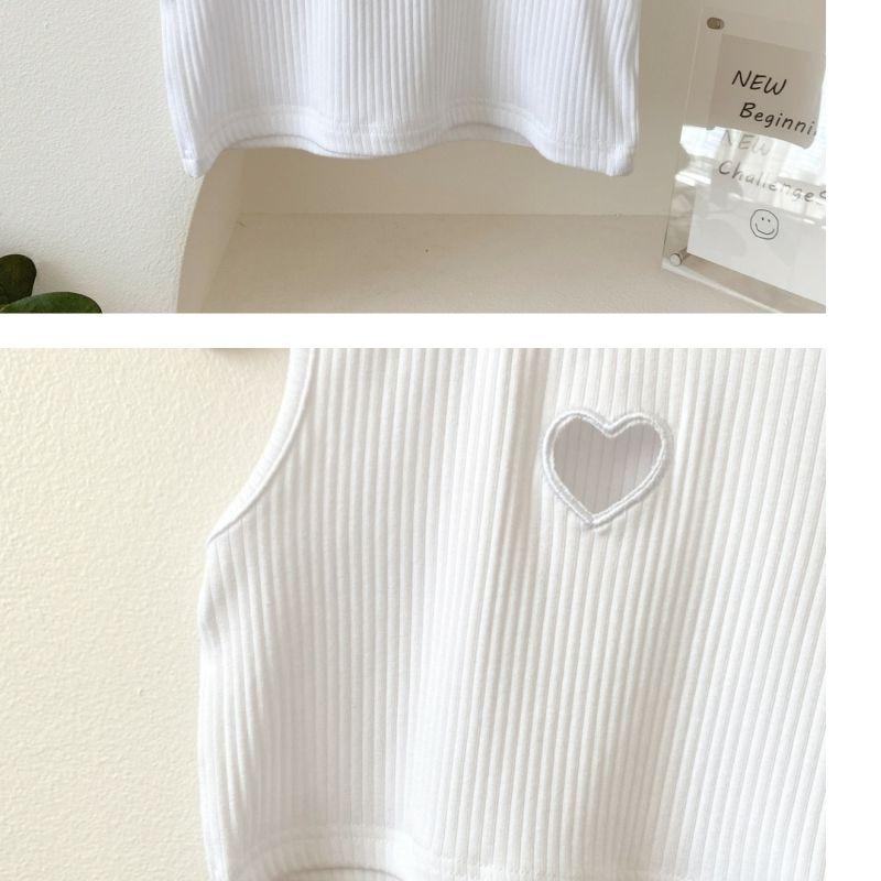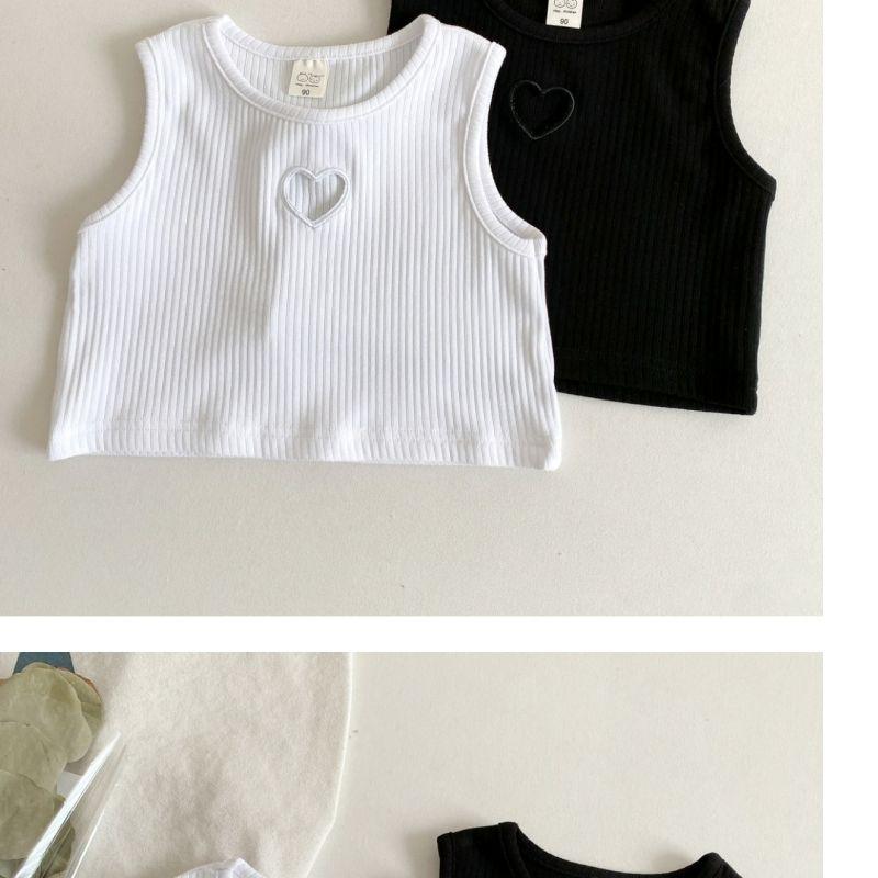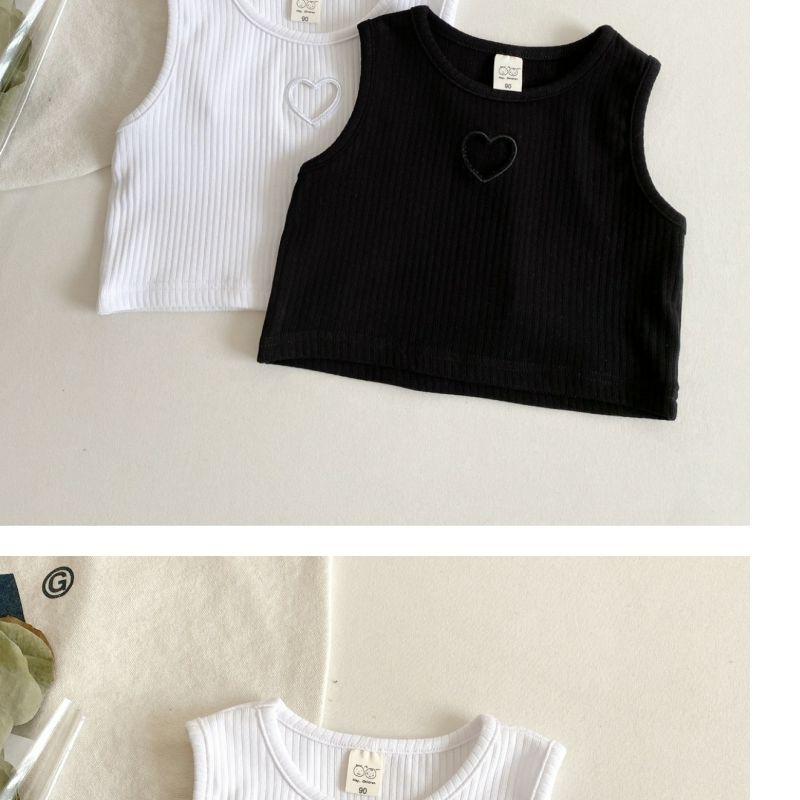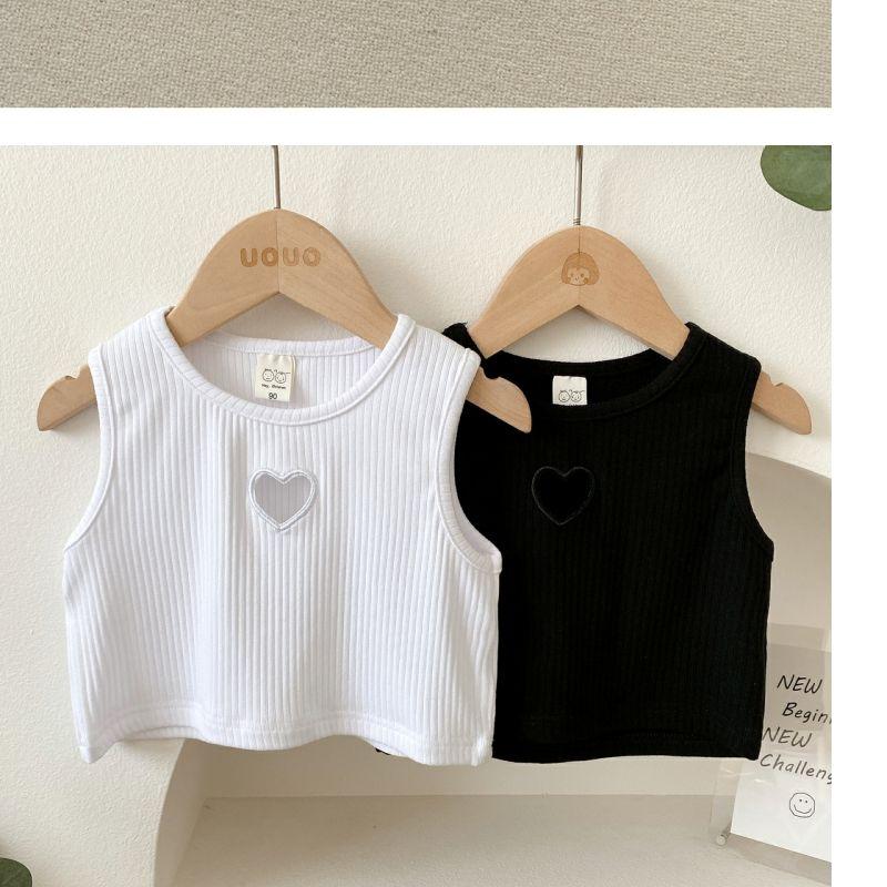 Camiseta sin mangas de verano para niña, estilo occidental para bebé, personalidad infantil, marca de moda, estilo coreano, moderna, corta, con corazón calado