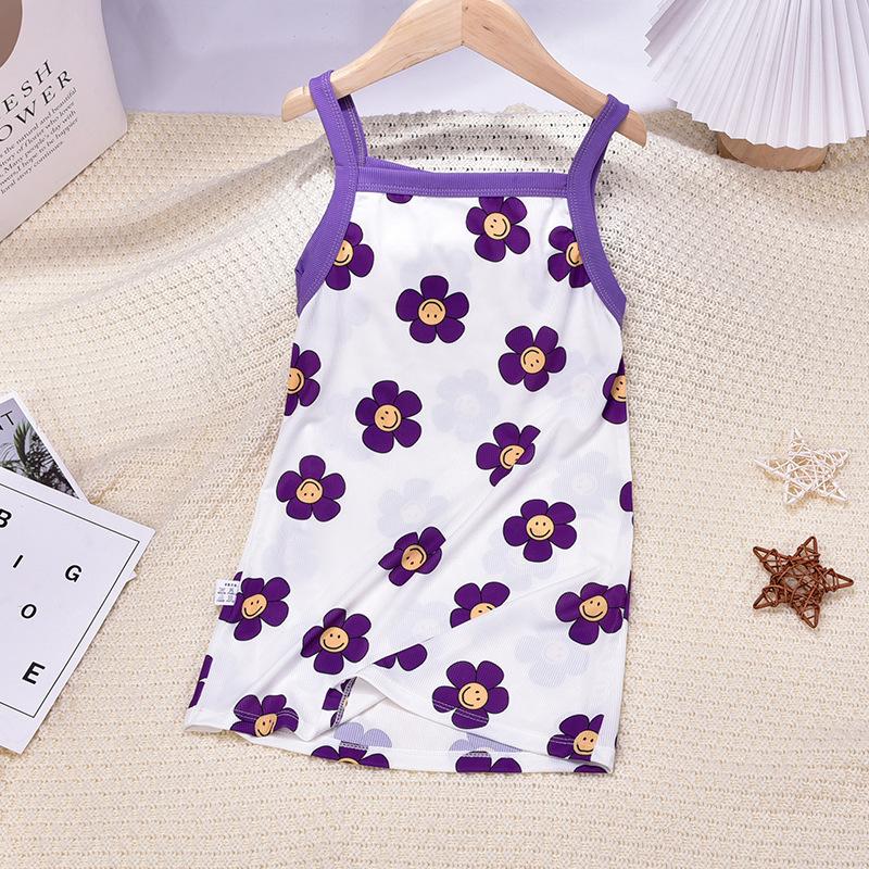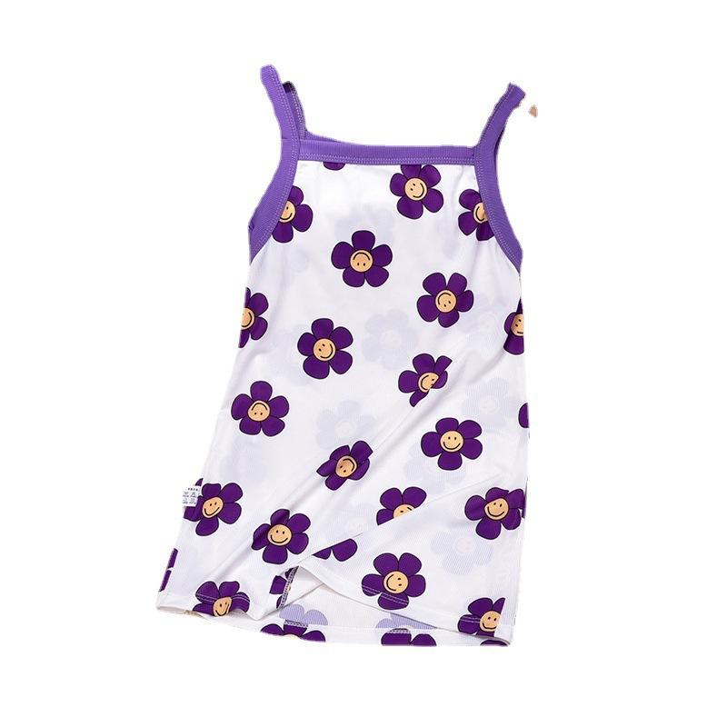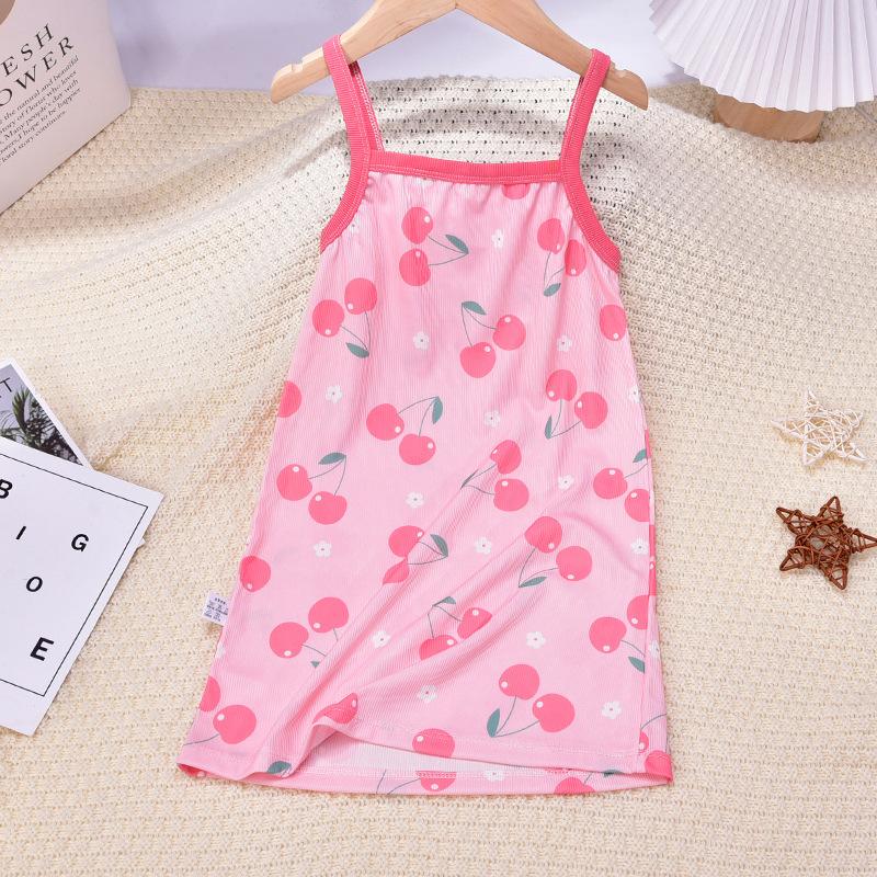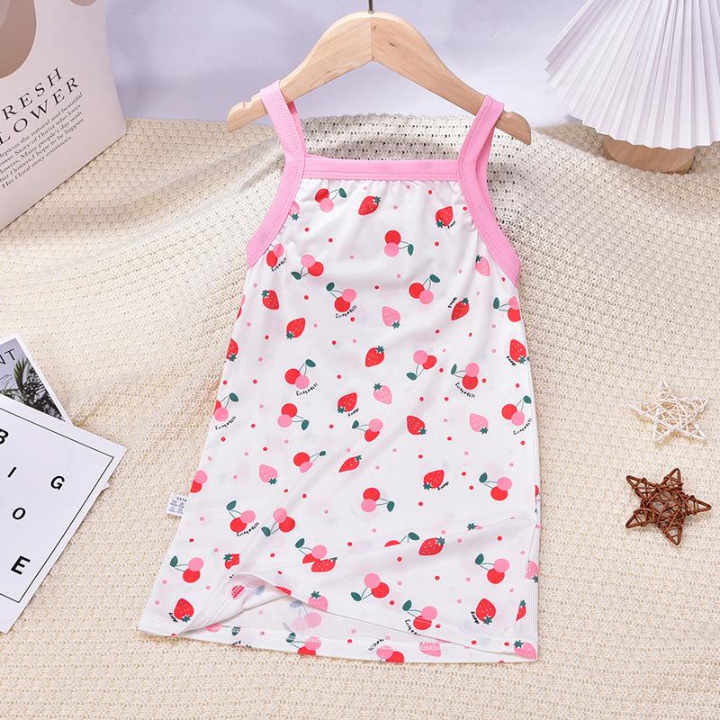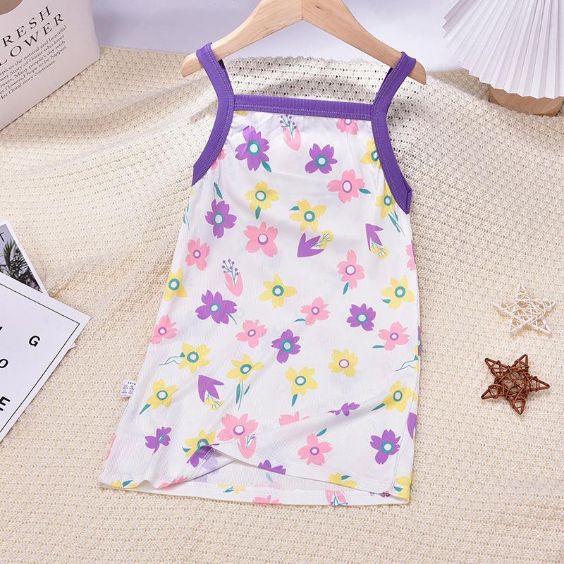 2025 Verano Nuevo Vestido de Tirantes para Niñas Vestido de Princesa Floral para Niñas Seda de Hielo Bebé Nuevo