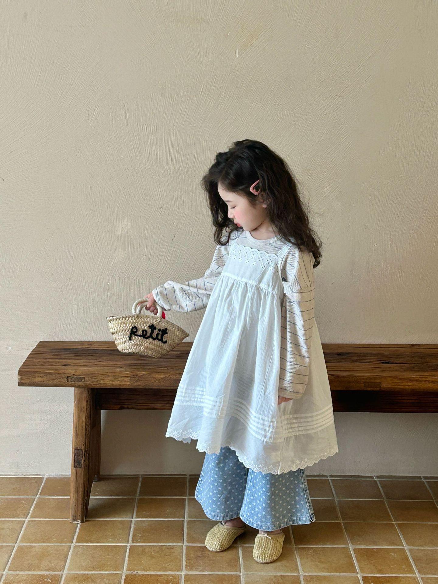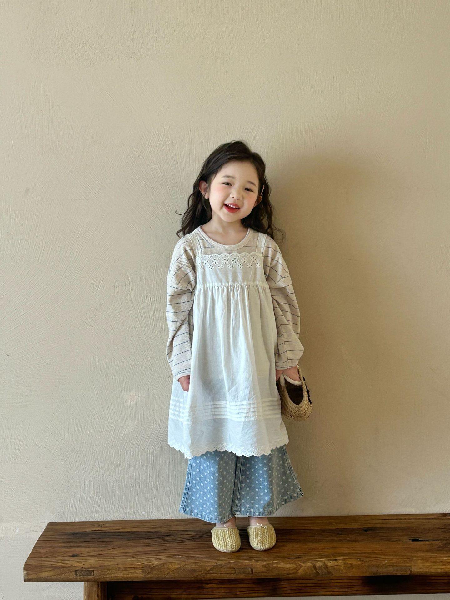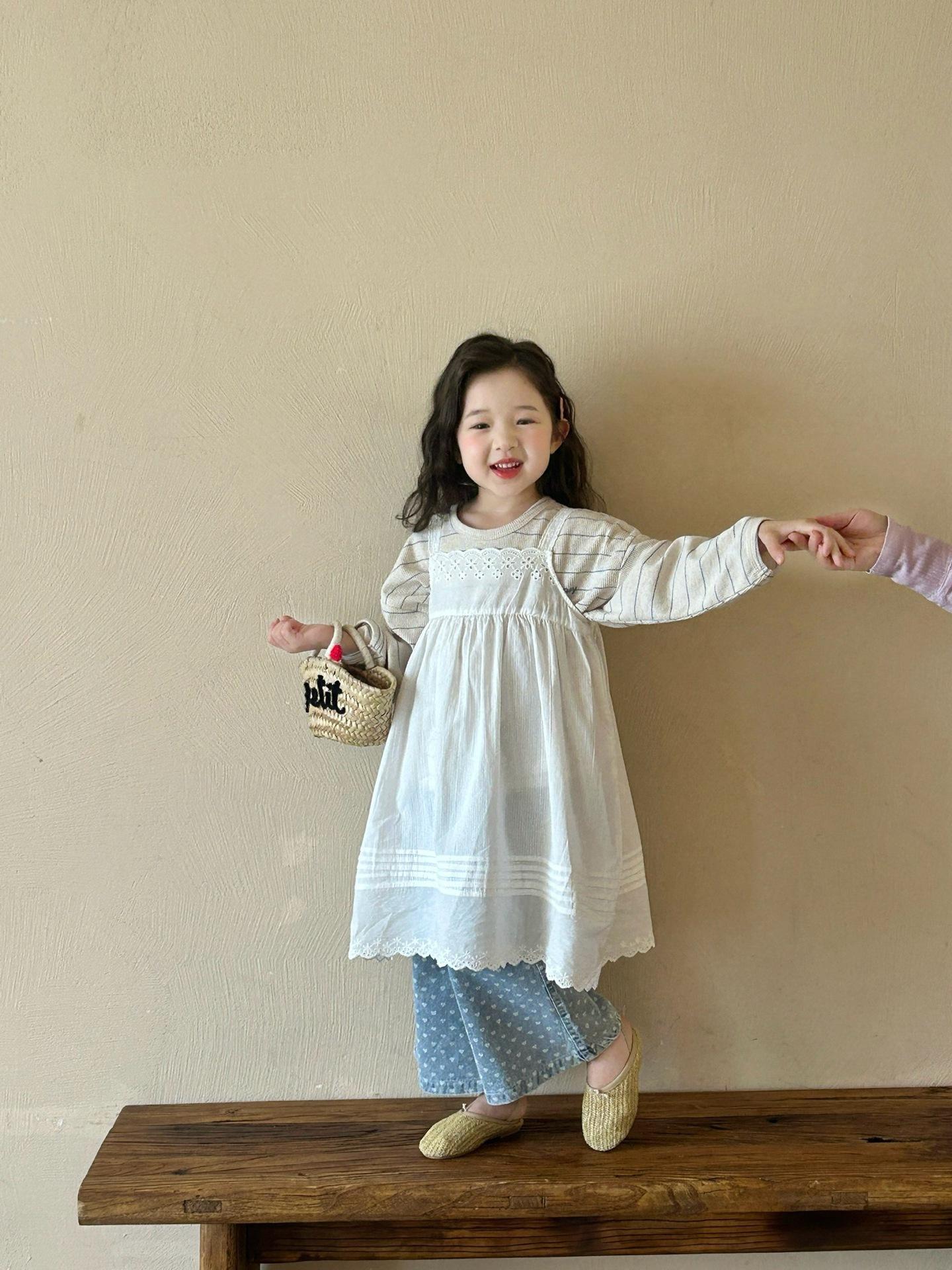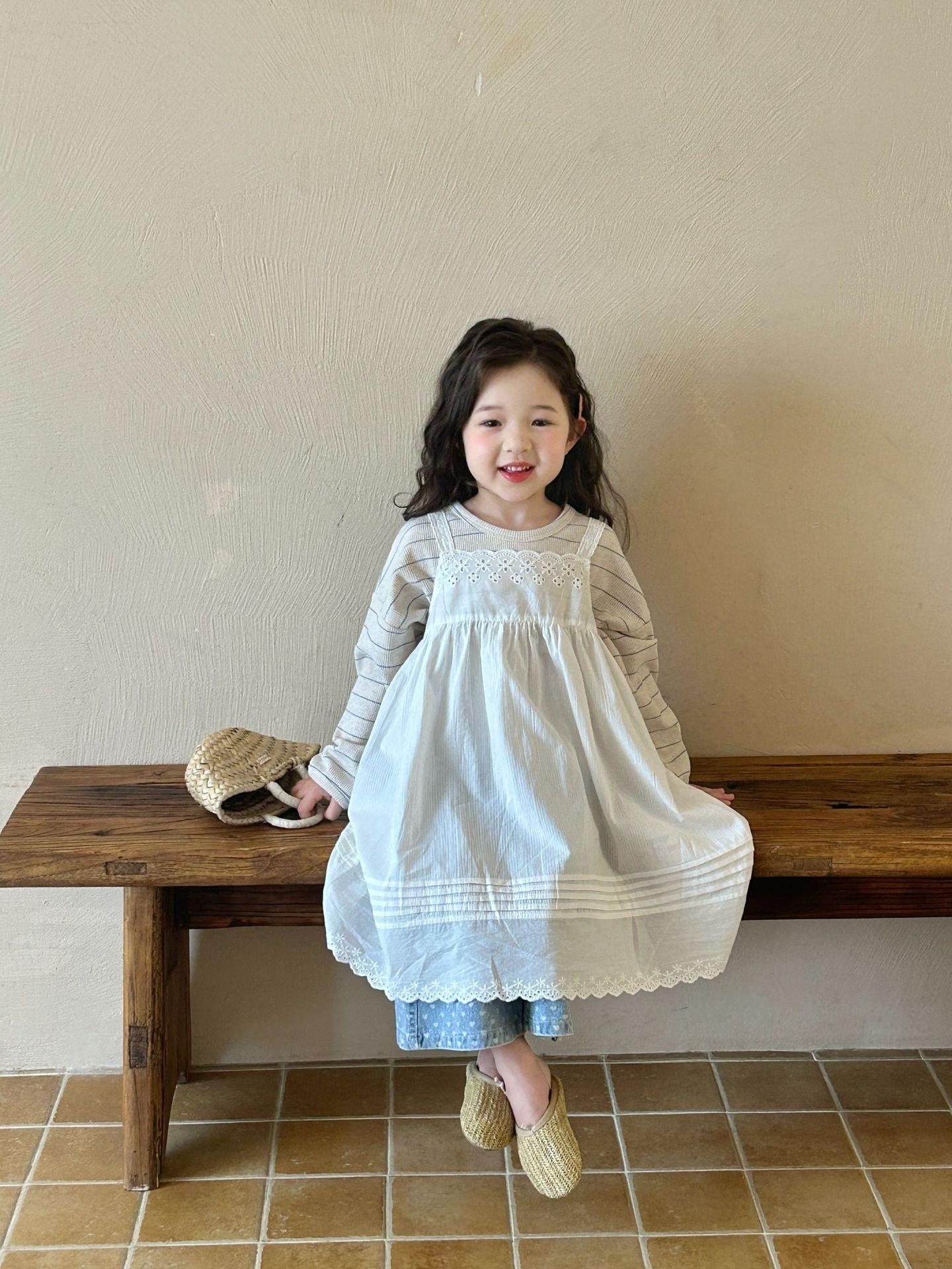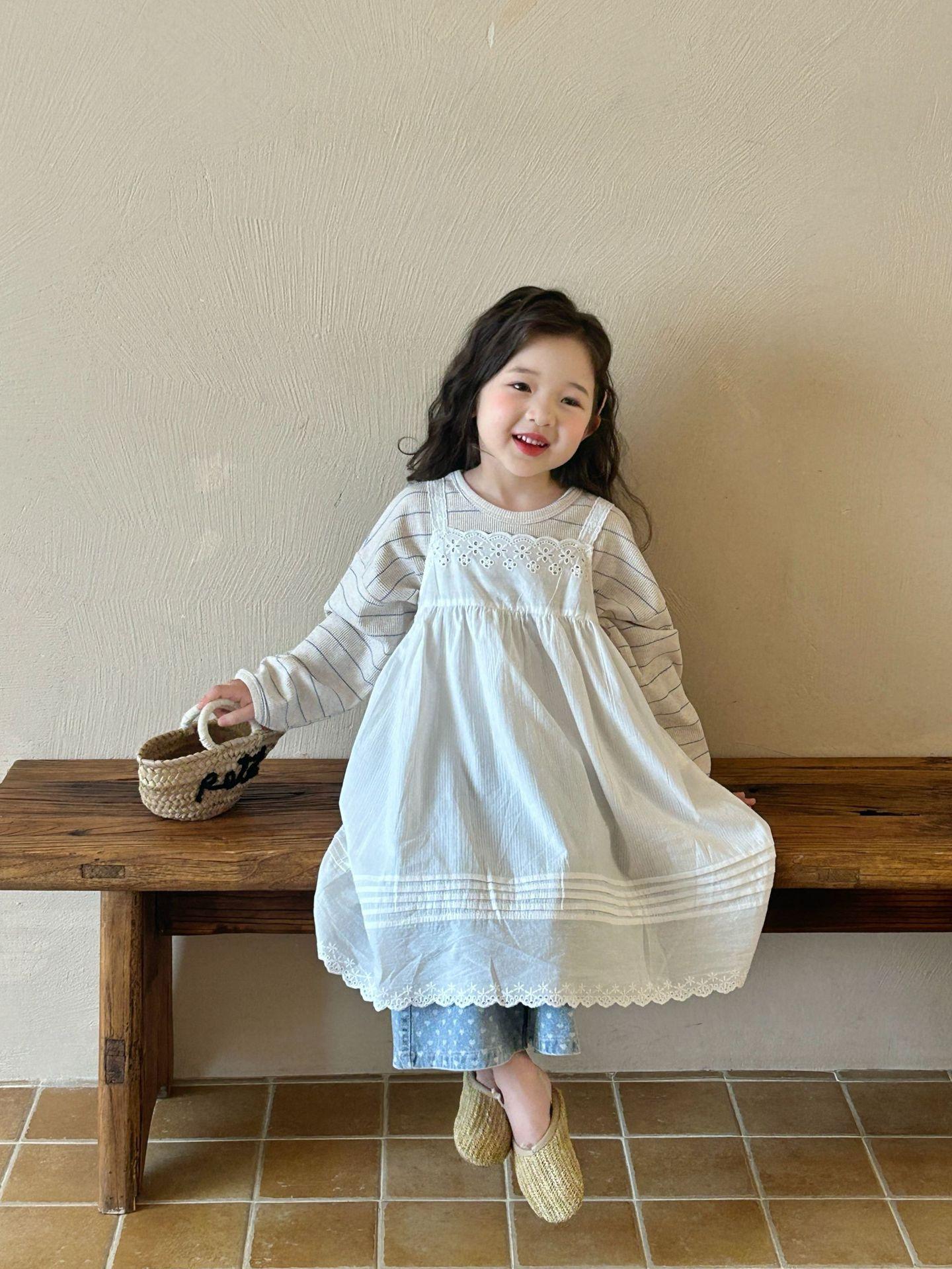 Ropa coreana para niñas, primavera 2025, falda con tirantes de encaje, vestido de encaje para bebés