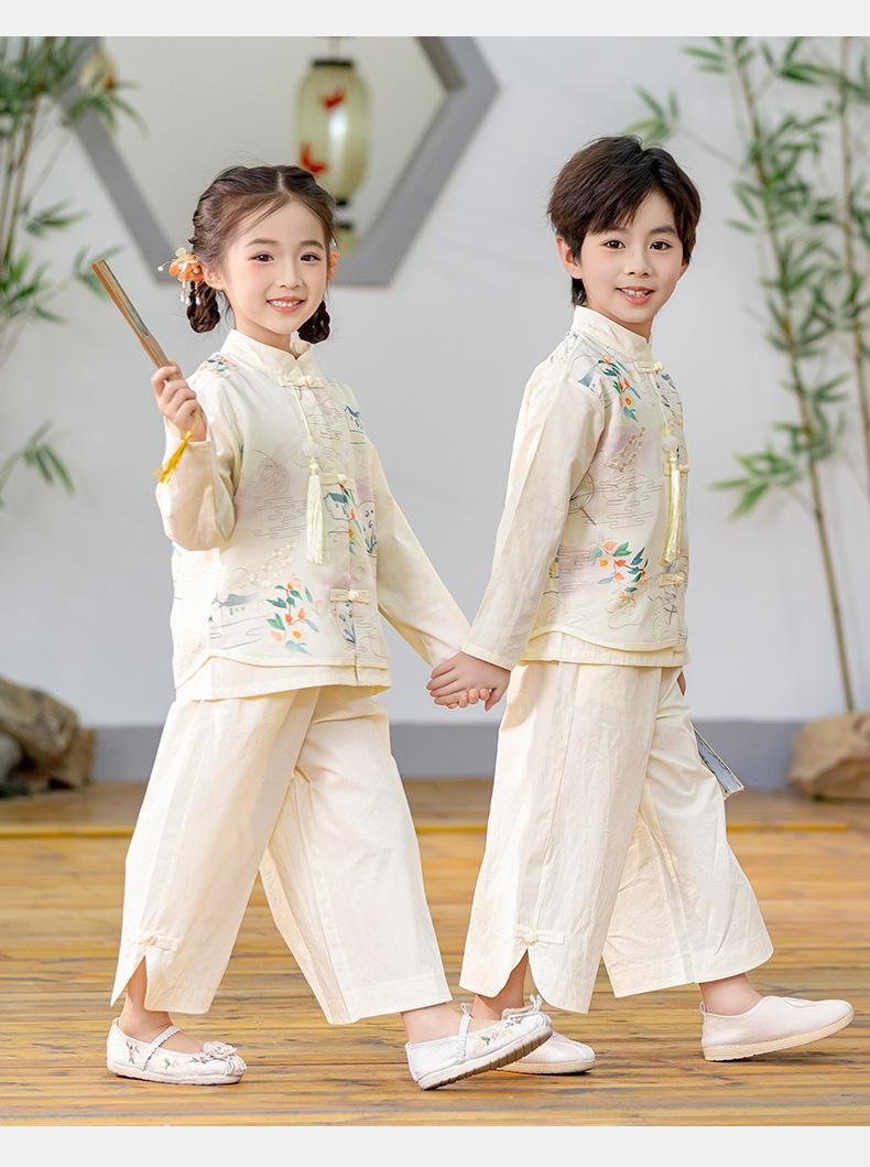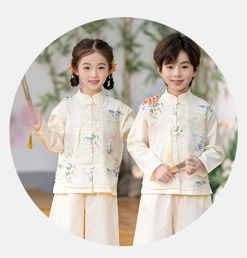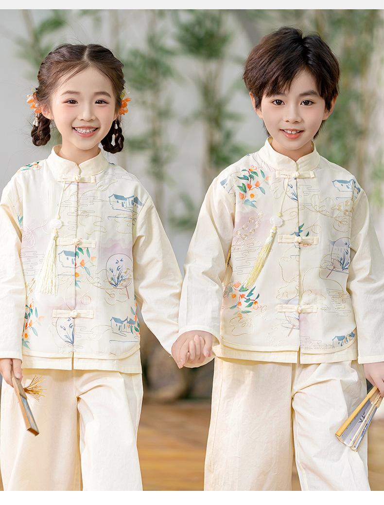 Nuevo traje chino Tang Hanfu 2025, nuevo traje de actuación de estilo chino para niños y niñas, vestido de temporada escolar para bebés, traje antiguo.