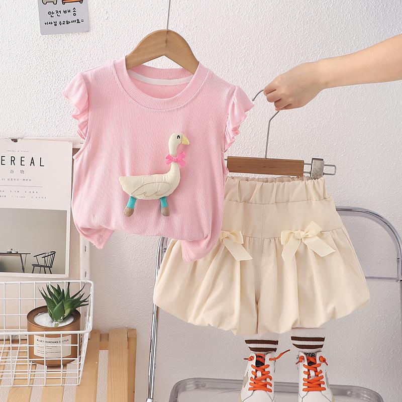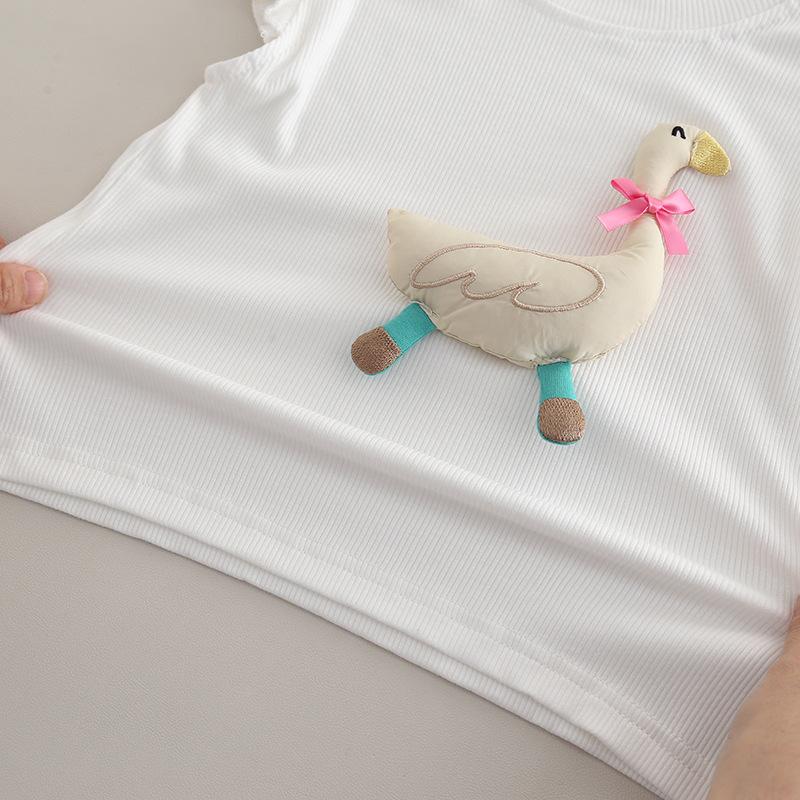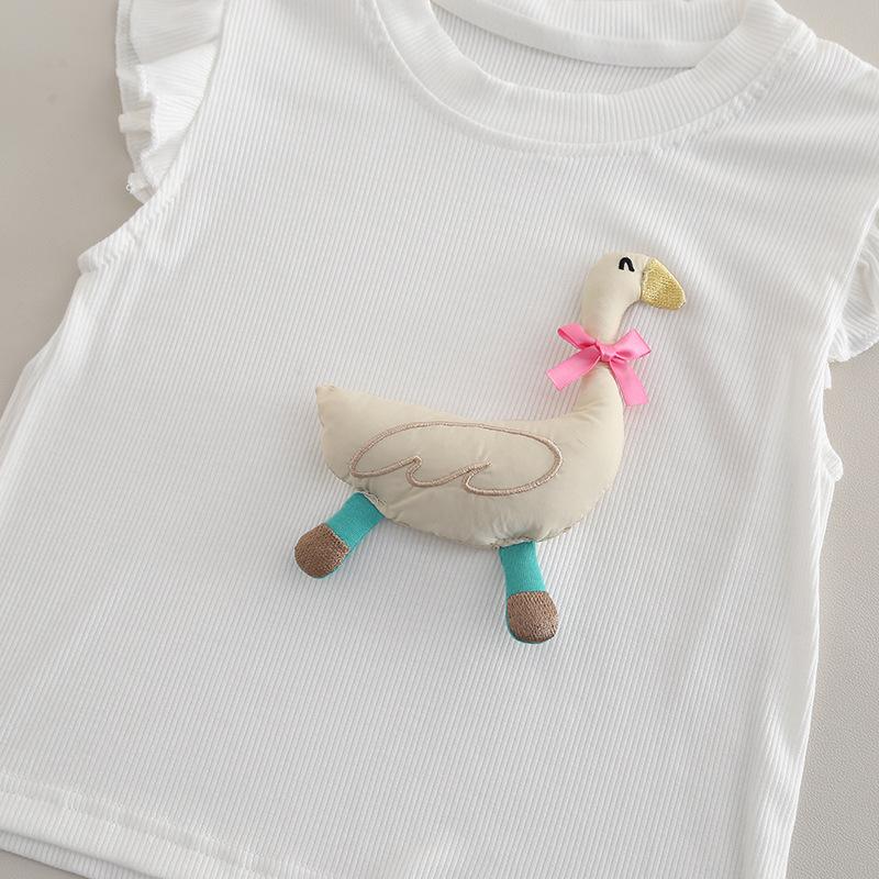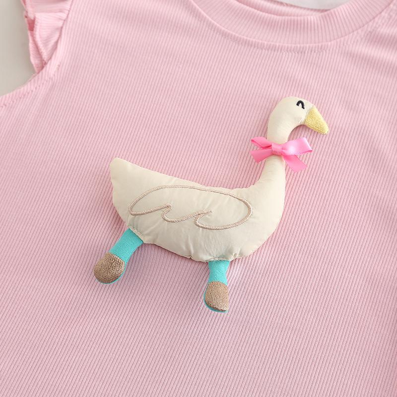 2025 nuevos pantalones de lazo de encaje sin mangas con dibujos animados tridimensionales lindos para niños bebé verano una generación de cabello