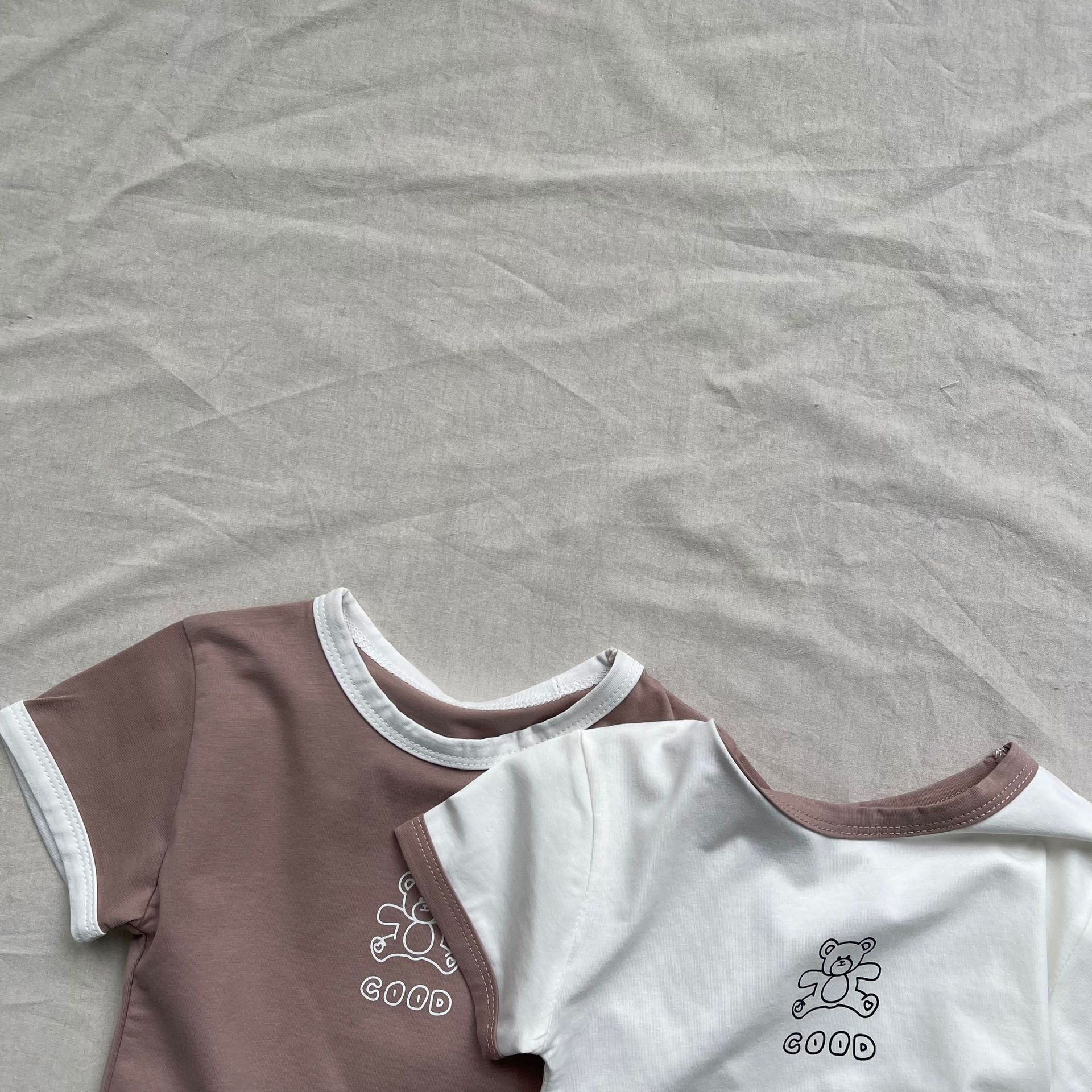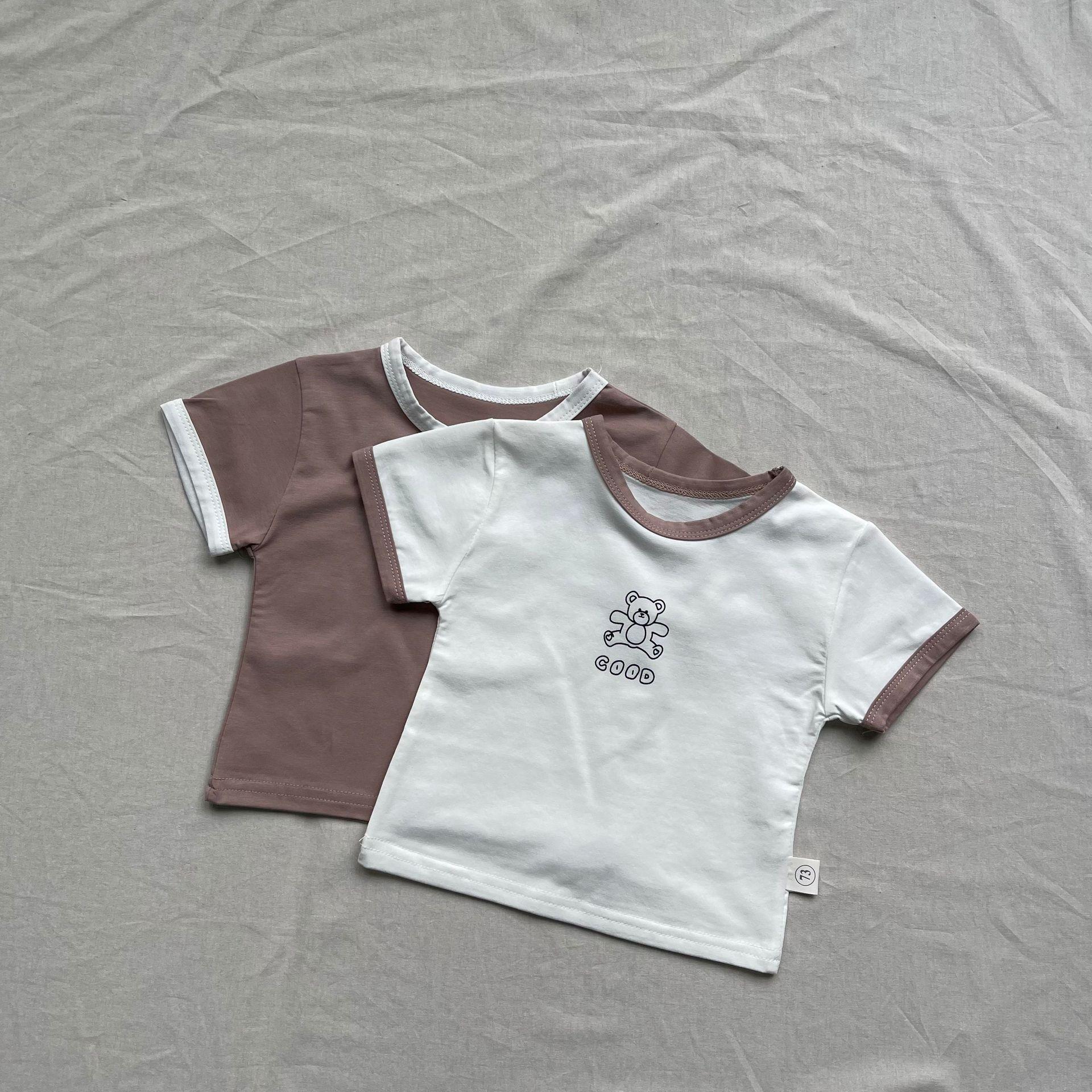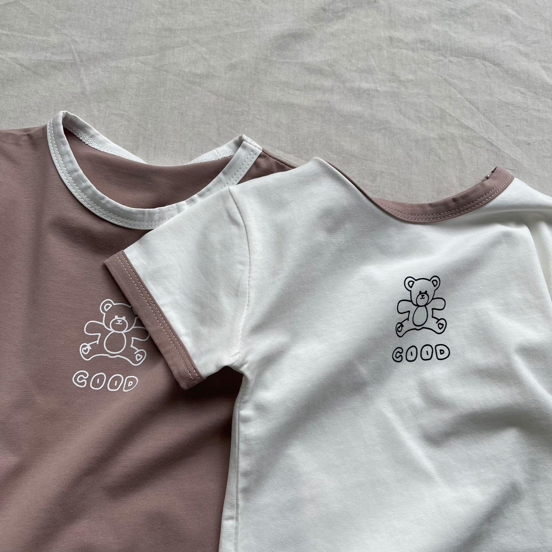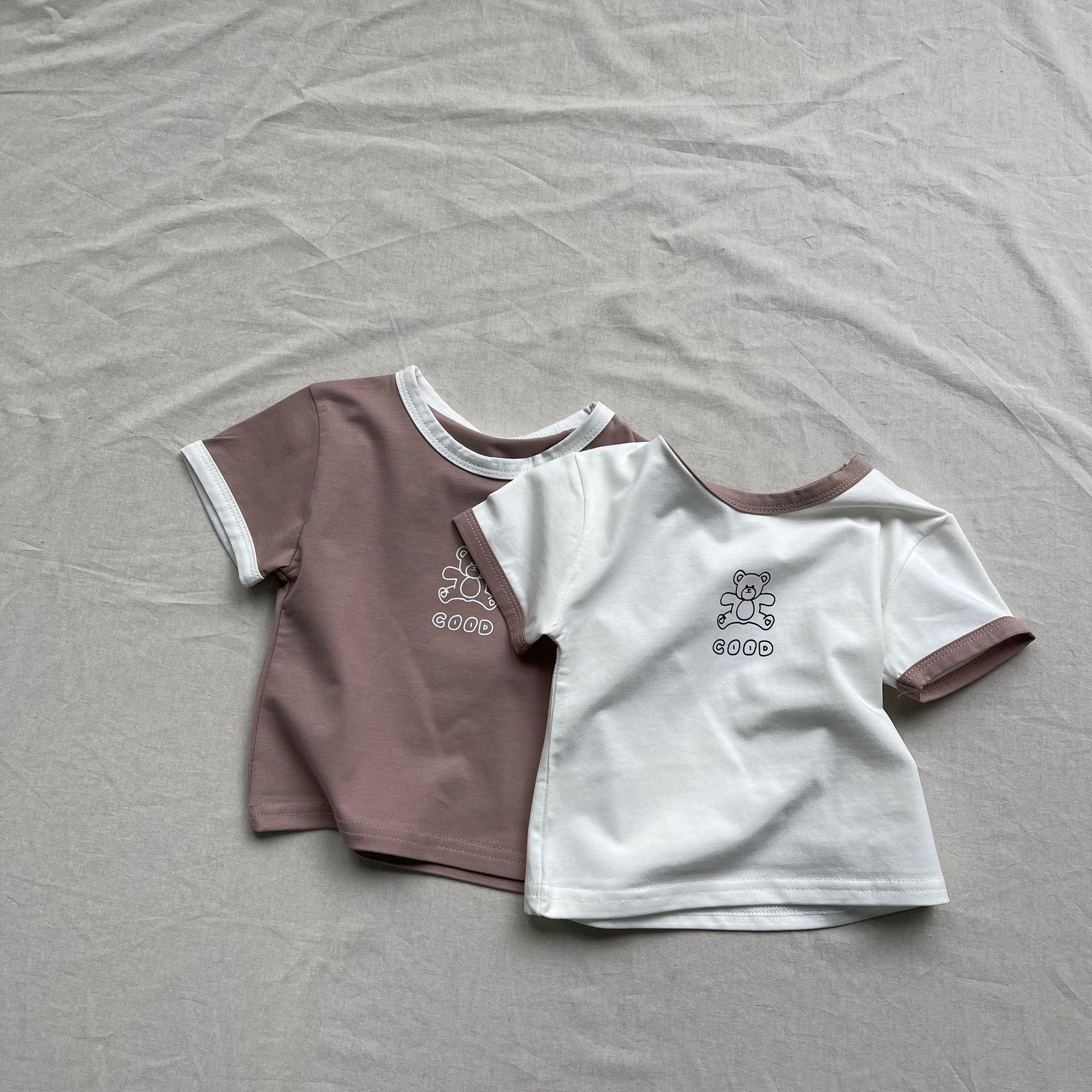 Camiseta de Verano de Manga Corta y Cuello Redondo Estilo Coreano Ins con Estampado de Animales de Dibujos Animados, Patrón de Oso Bailarín, Top Transpirable Combinable para Bebés Niños y Niñas