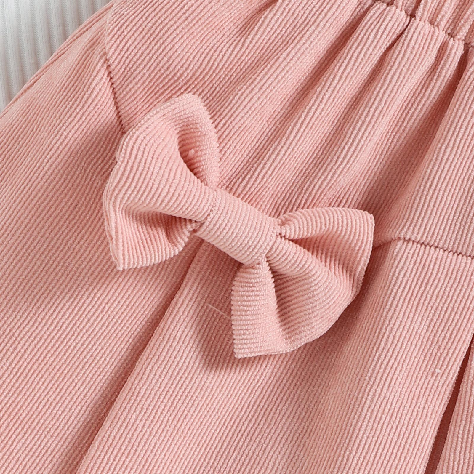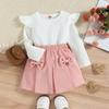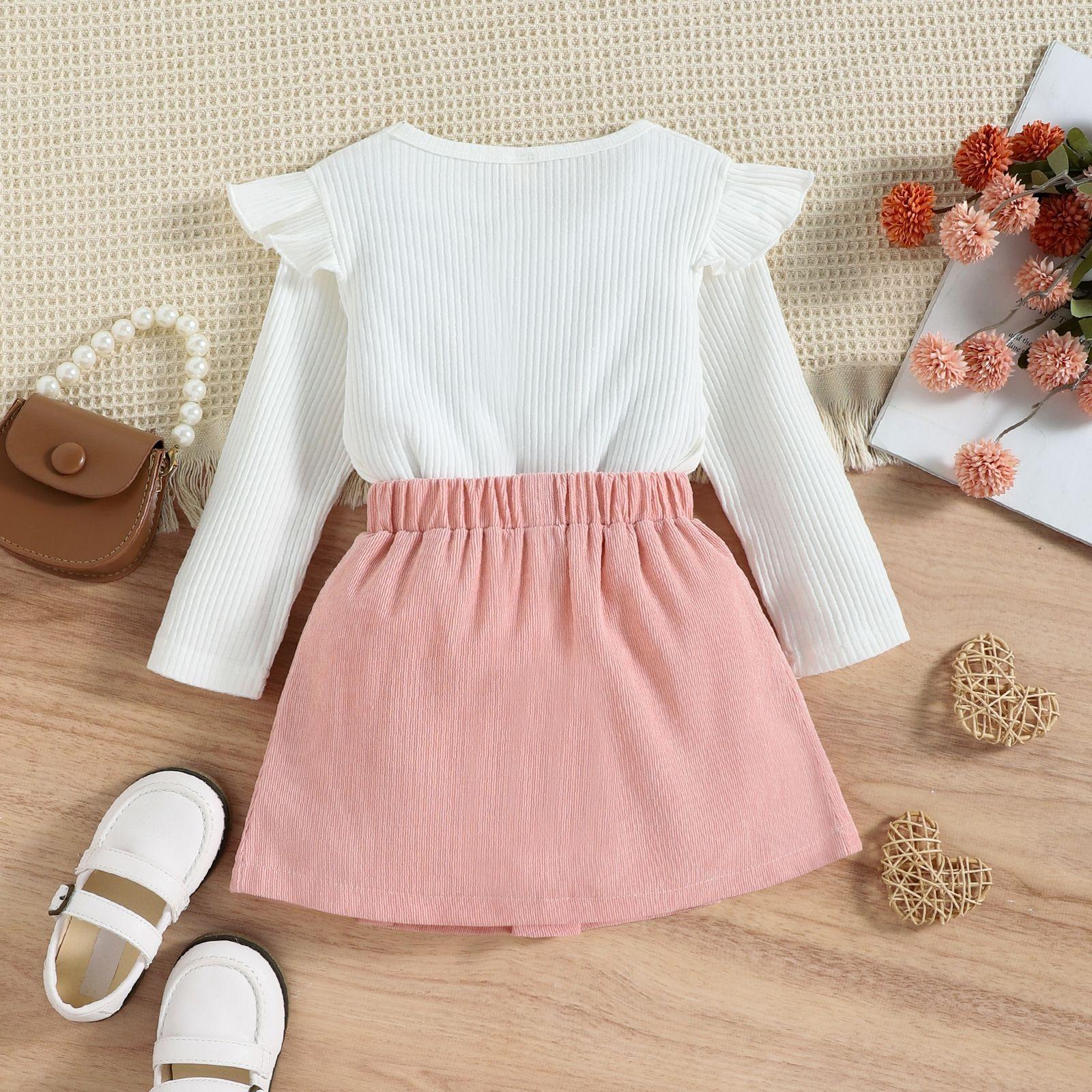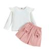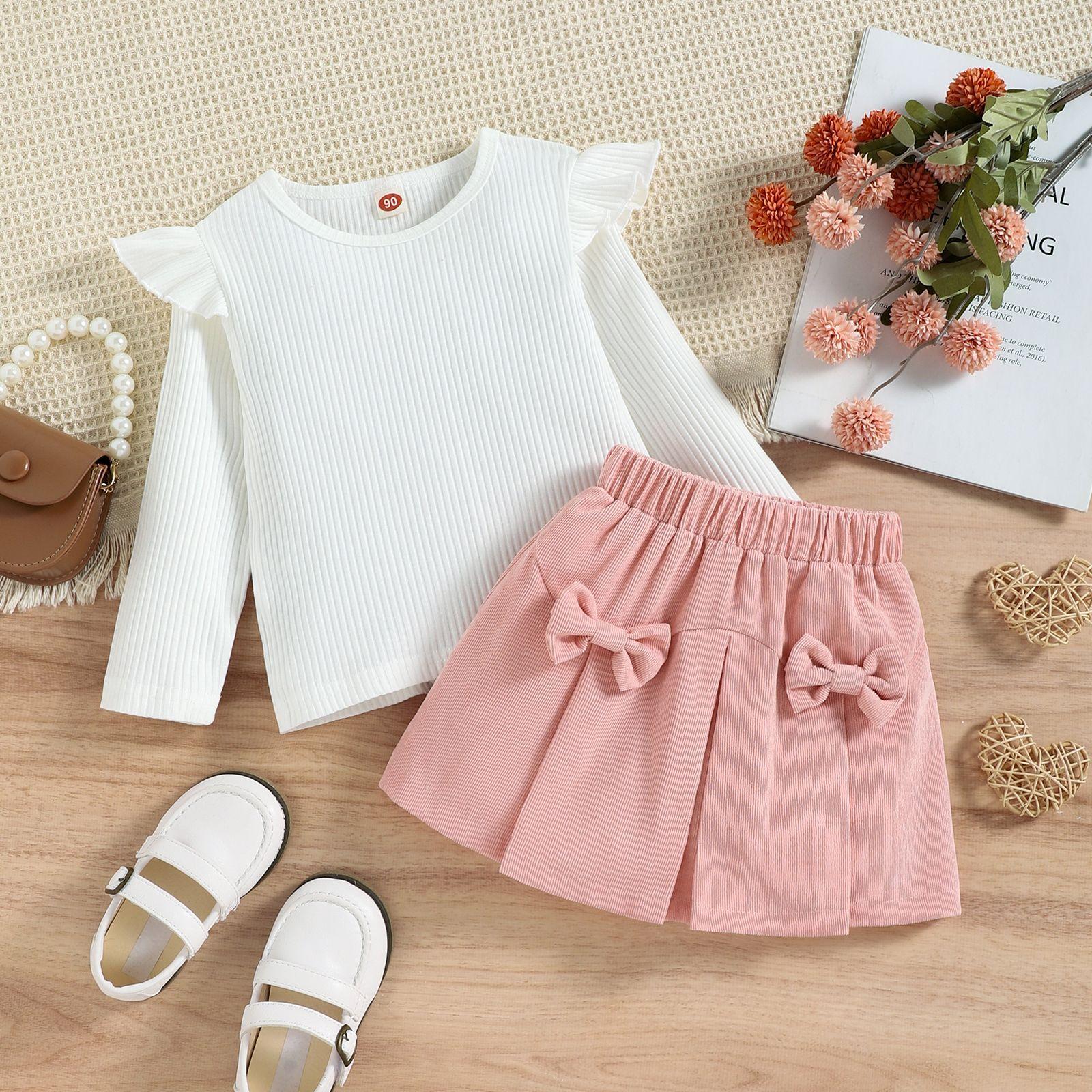 Traje nuevo de moda para niñas de comercio exterior transfronterizo, top de manga larga de color sólido con falda con lazo, dos piezas al por mayor